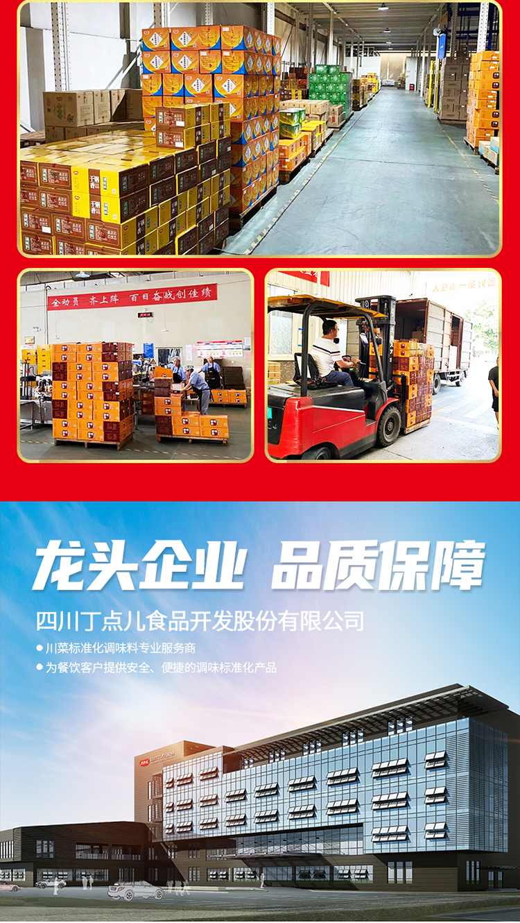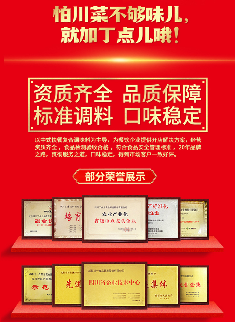 四川丁点儿食品开发股份有限公司,是集川菜调味料研发、生产、销售、服务为一体的现代化企业,专注为餐饮客户提供川菜调味解决方案。公司成立至今,服务了超百万家的餐饮门店以及连锁品牌。
