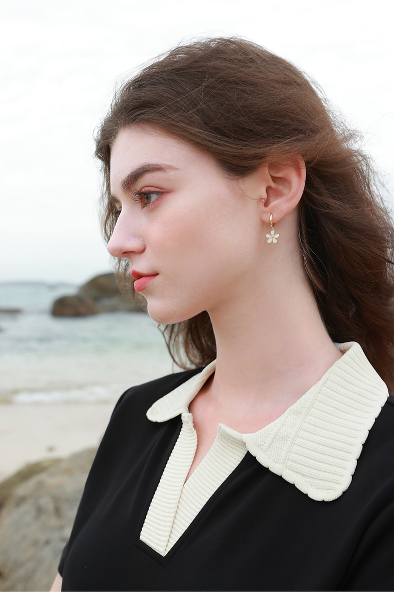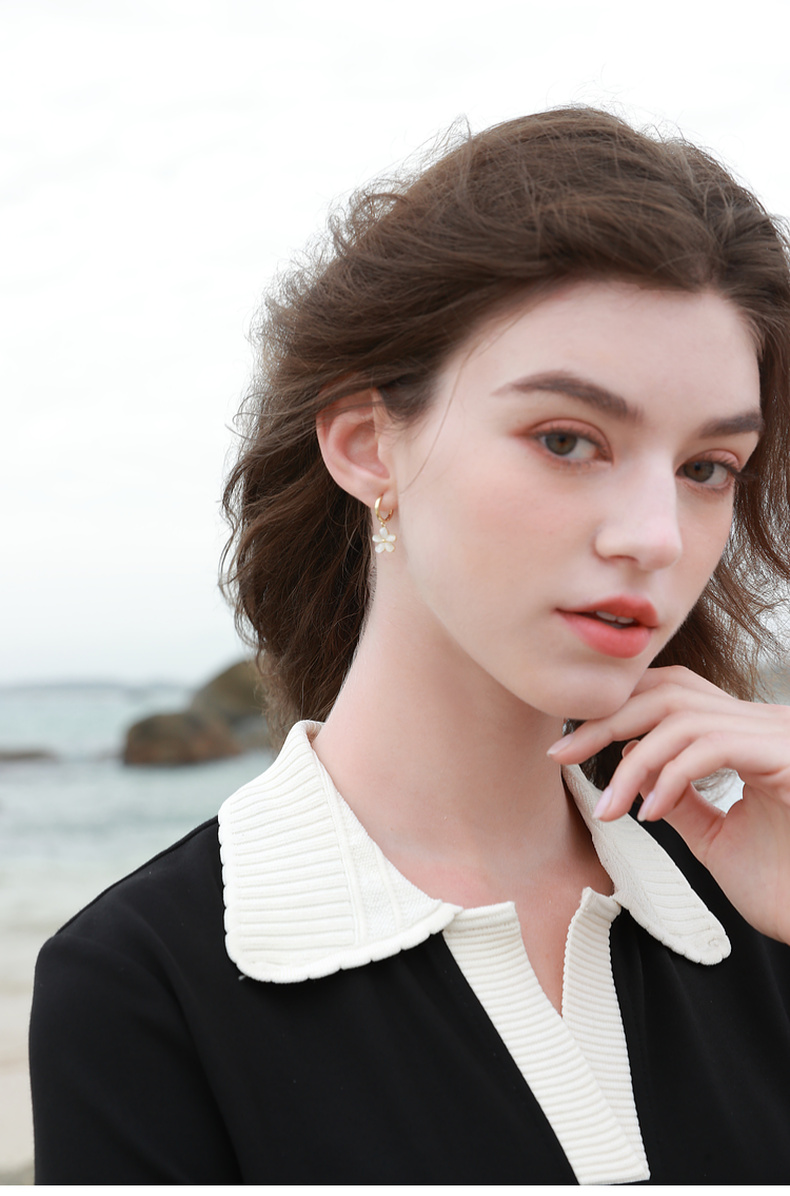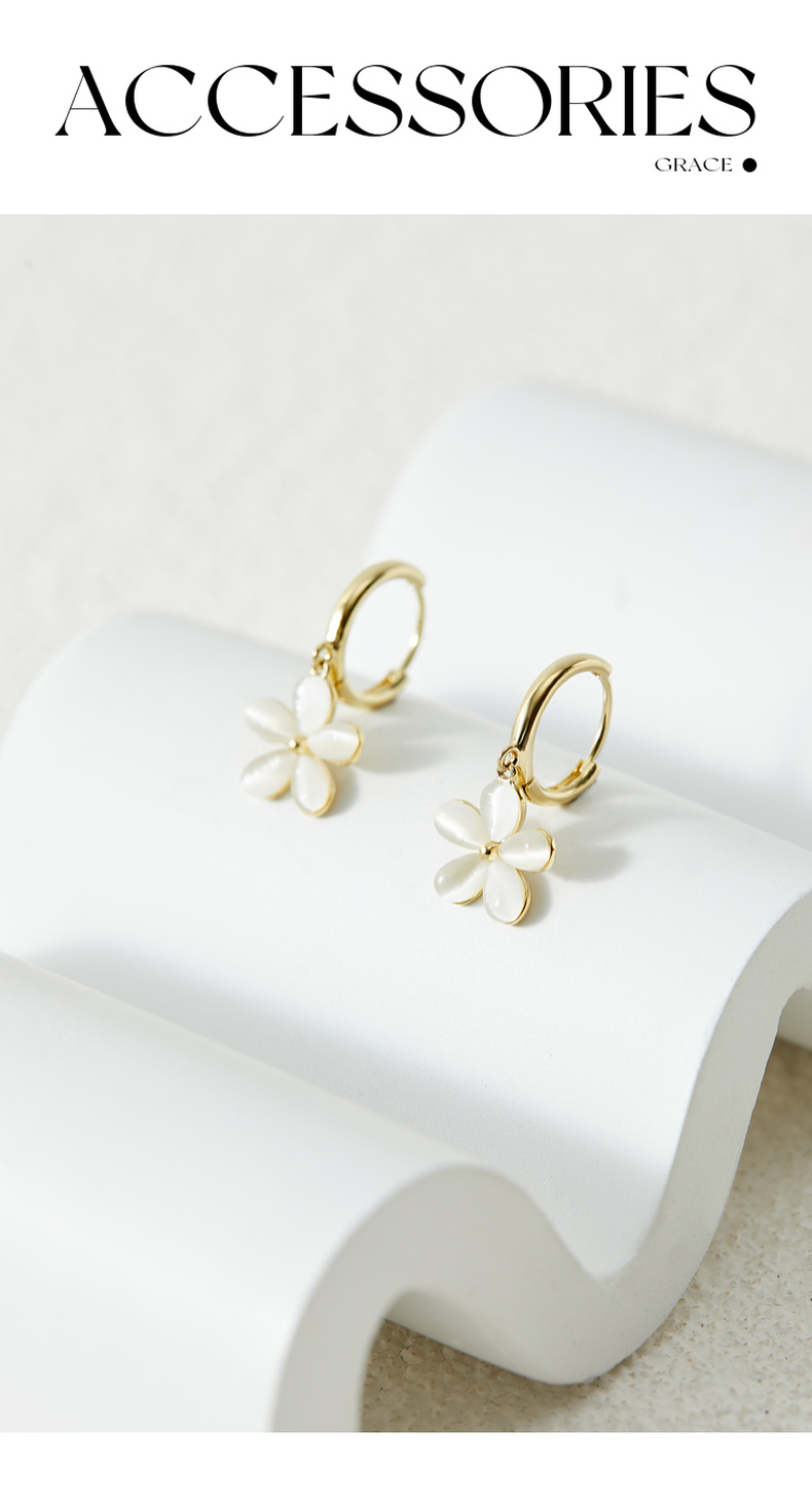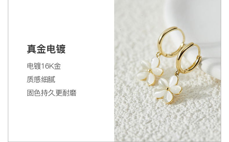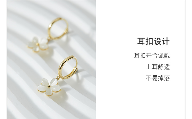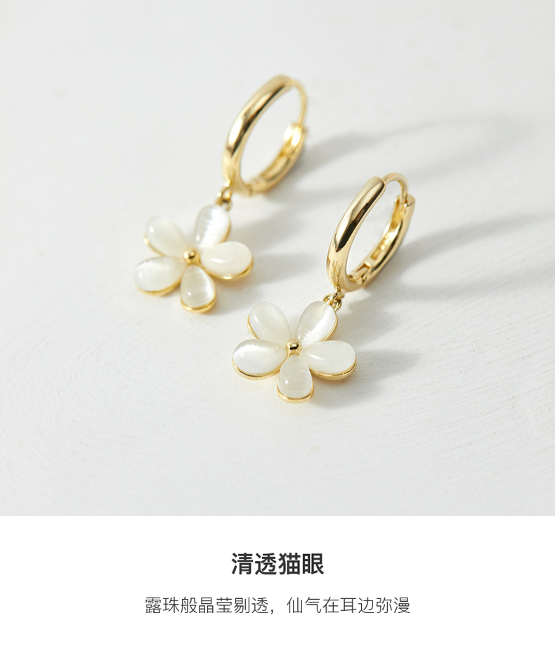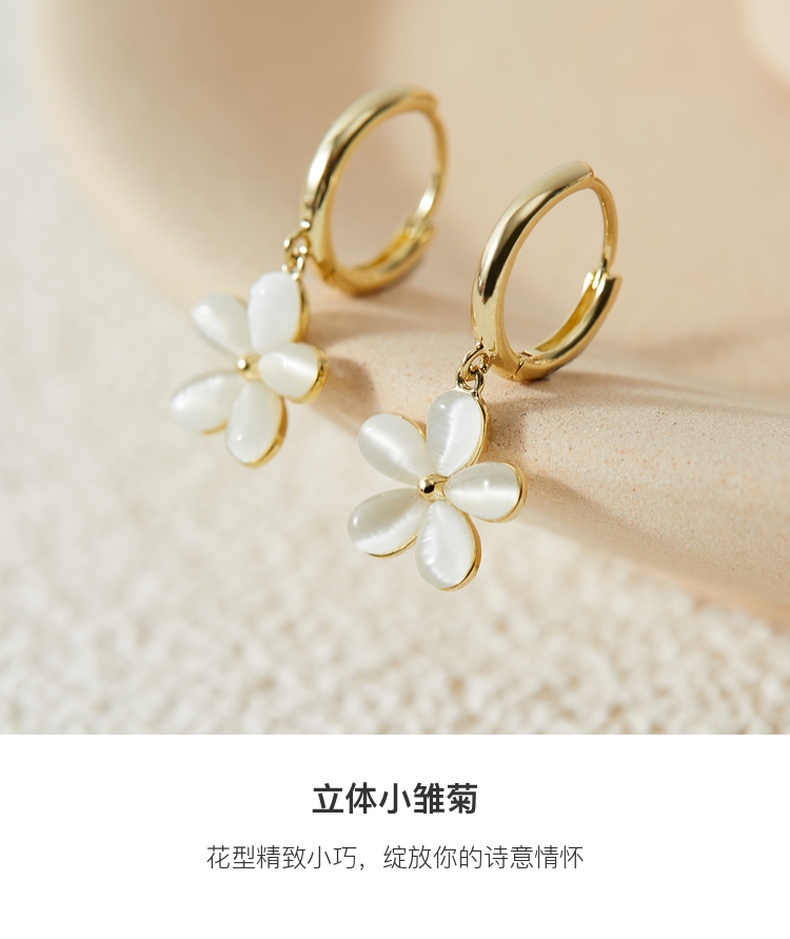 三彩2026新款小雏菊耳环立体花朵猫眼耳扣镀金耳饰小清新甜美