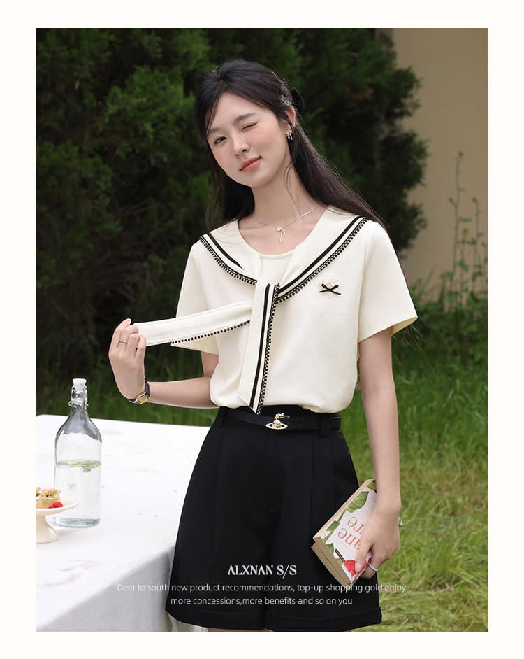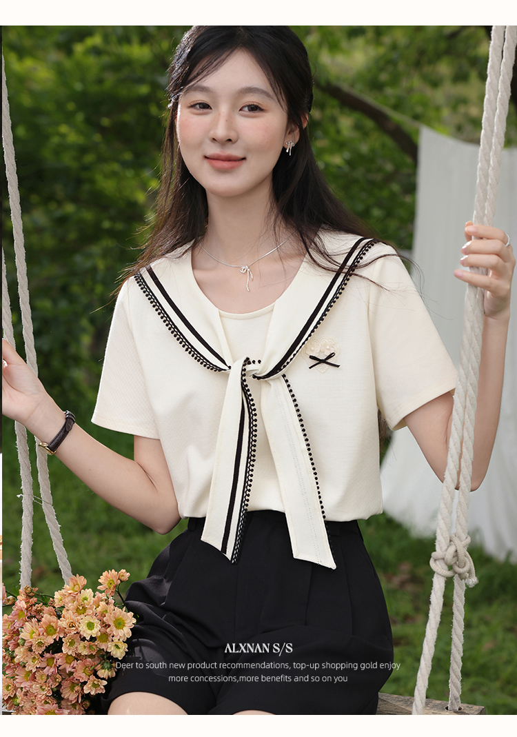 【6折秒杀】鹿向南「格调书室」燕麦色复古长袖毛衣女早秋高级感小众短款上衣L58055