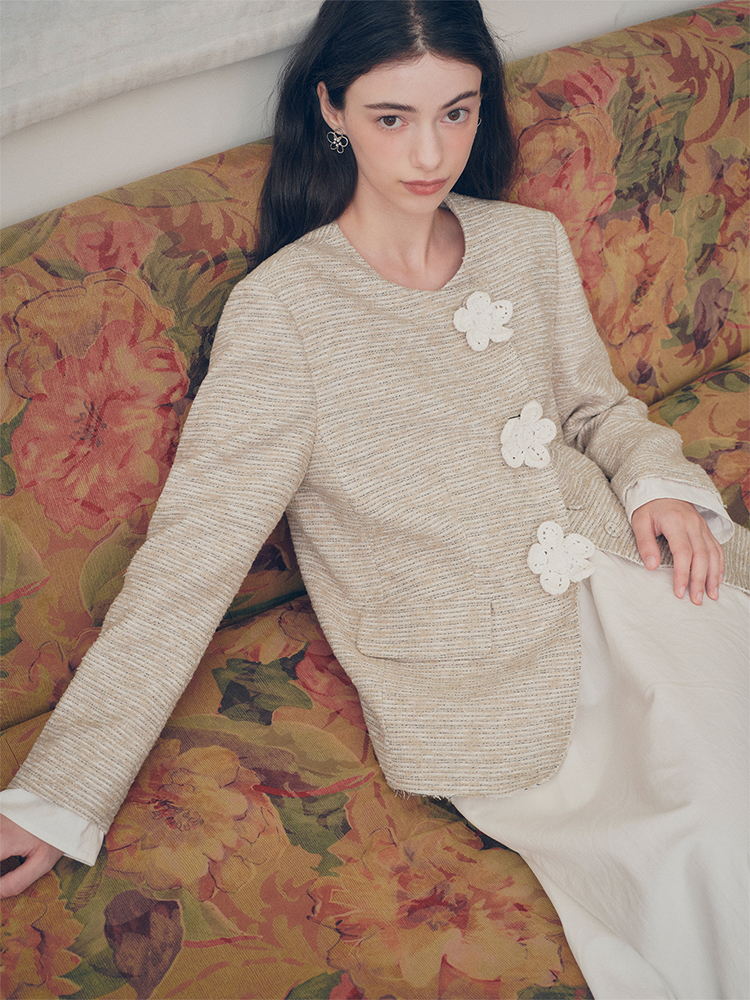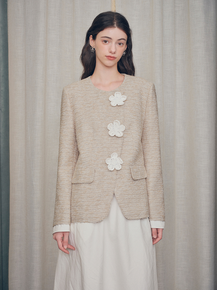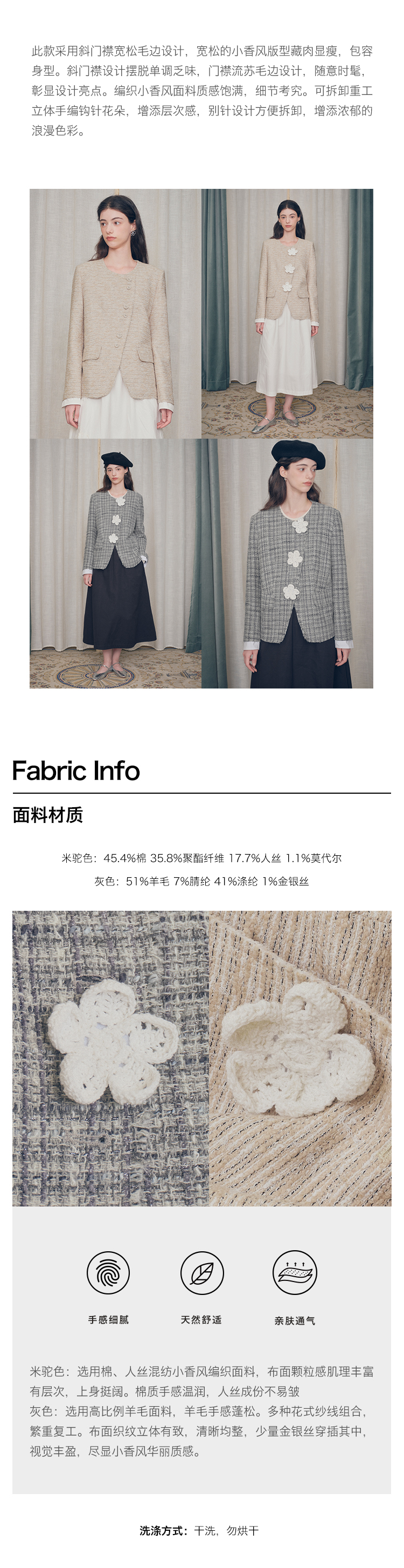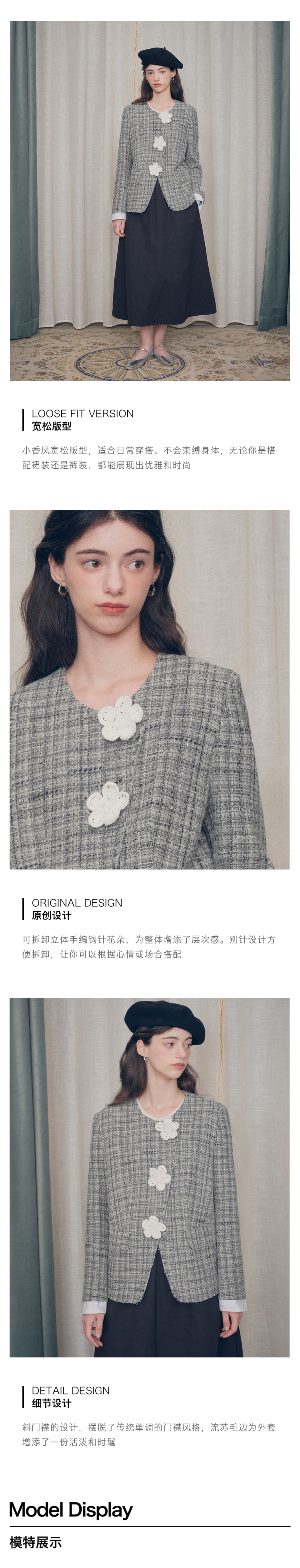 ForPoem 现货 24/FW原创设计小香风钩针花朵毛边西装外套