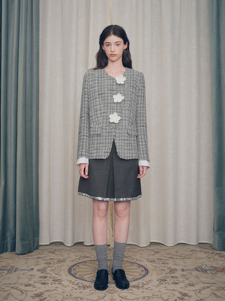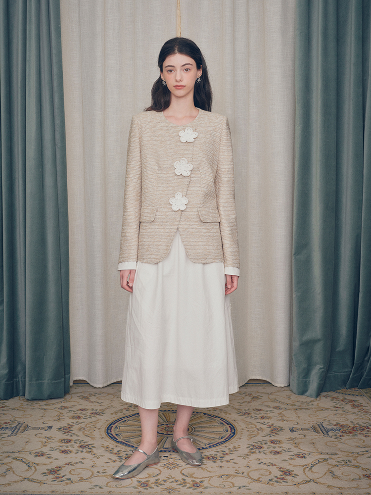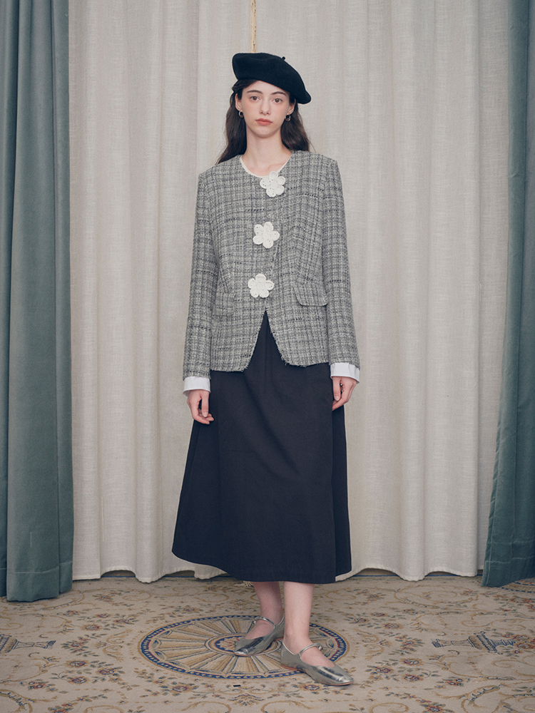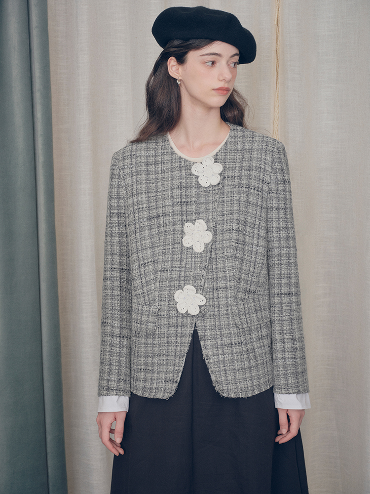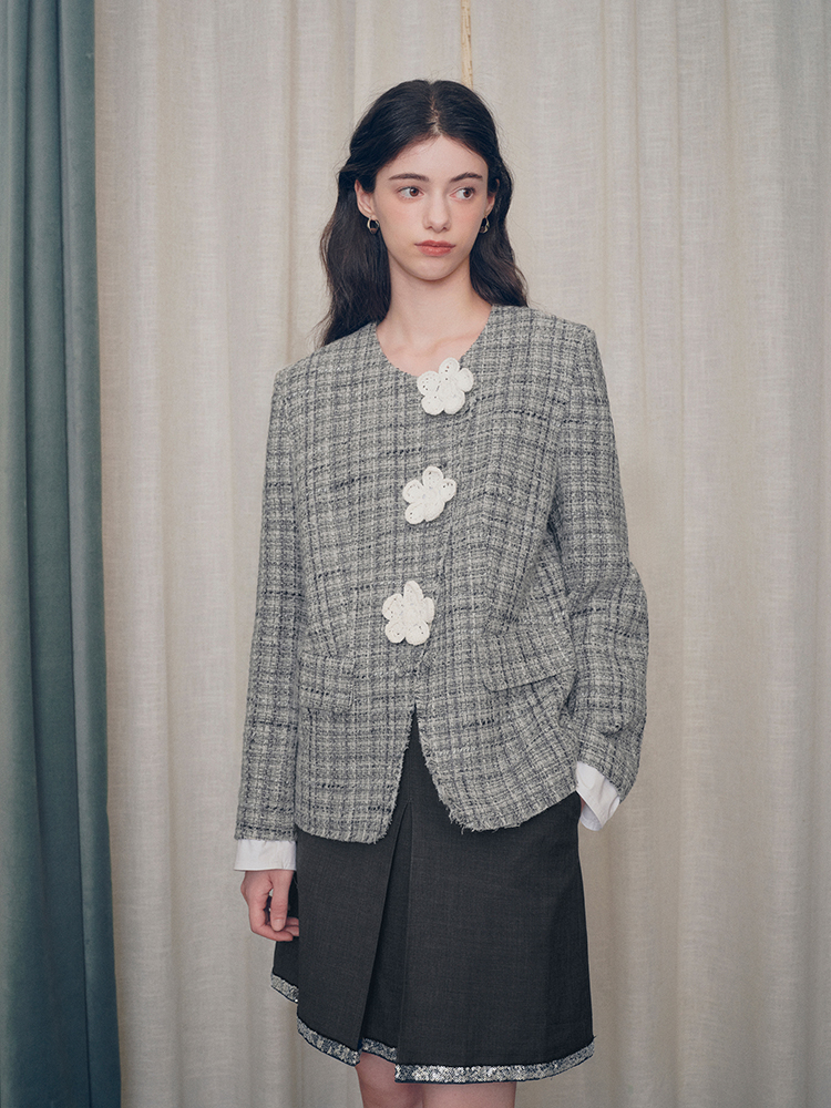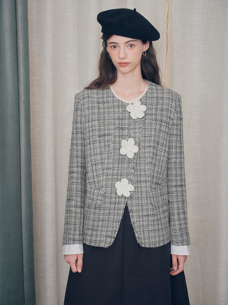 ForPoem 现货 24/FW原创设计小香风钩针花朵毛边西装外套