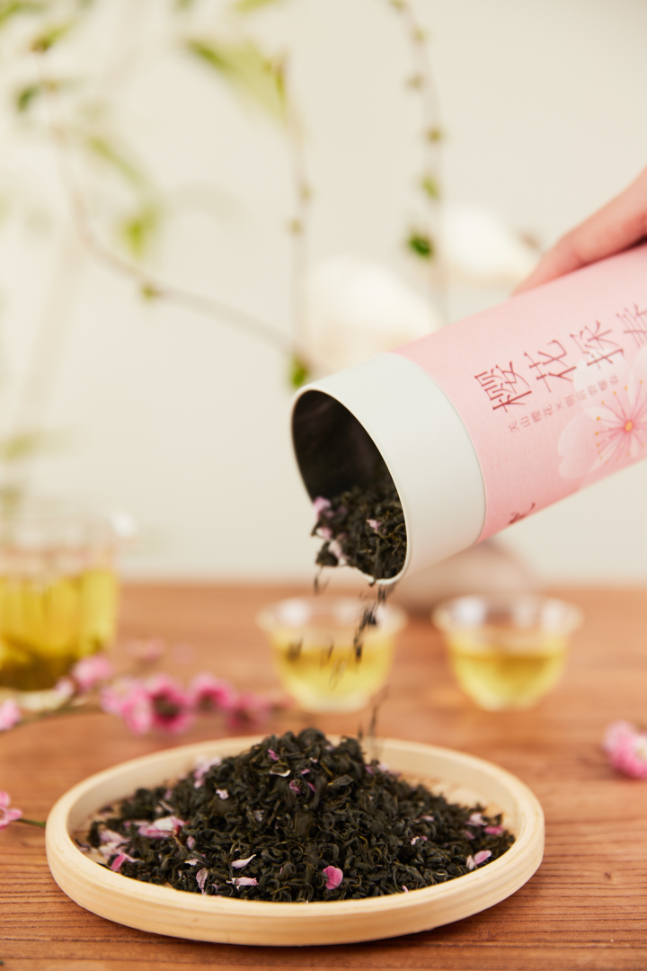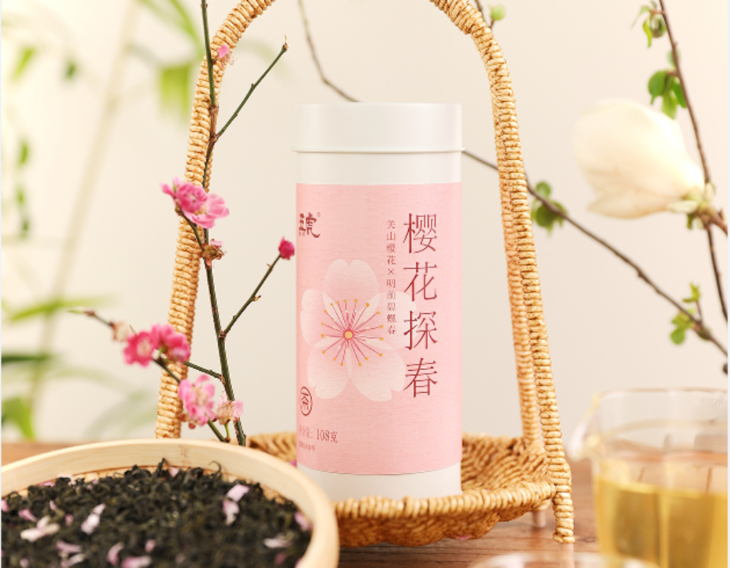 能将这满城飘香的三月限定,做成一口人间至鲜,大概只有五虎茶业做到了——它便是眼前这罐「樱花探春」樱花碧螺春茶。