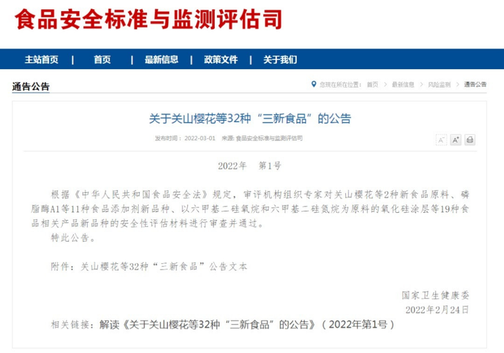 2022年列入国家卫健委公告的一批新食品原料名单,日式樱饼、和果子用的腌渍樱花就是它。