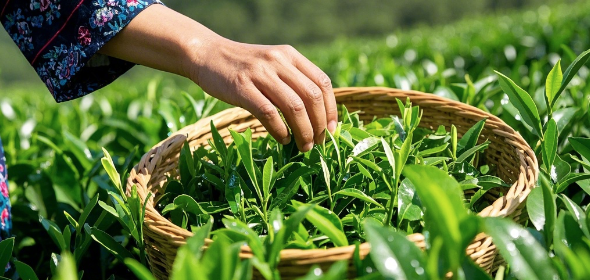△鲜叶拣剔讲究“摘得早、采得嫩、拣得净”。