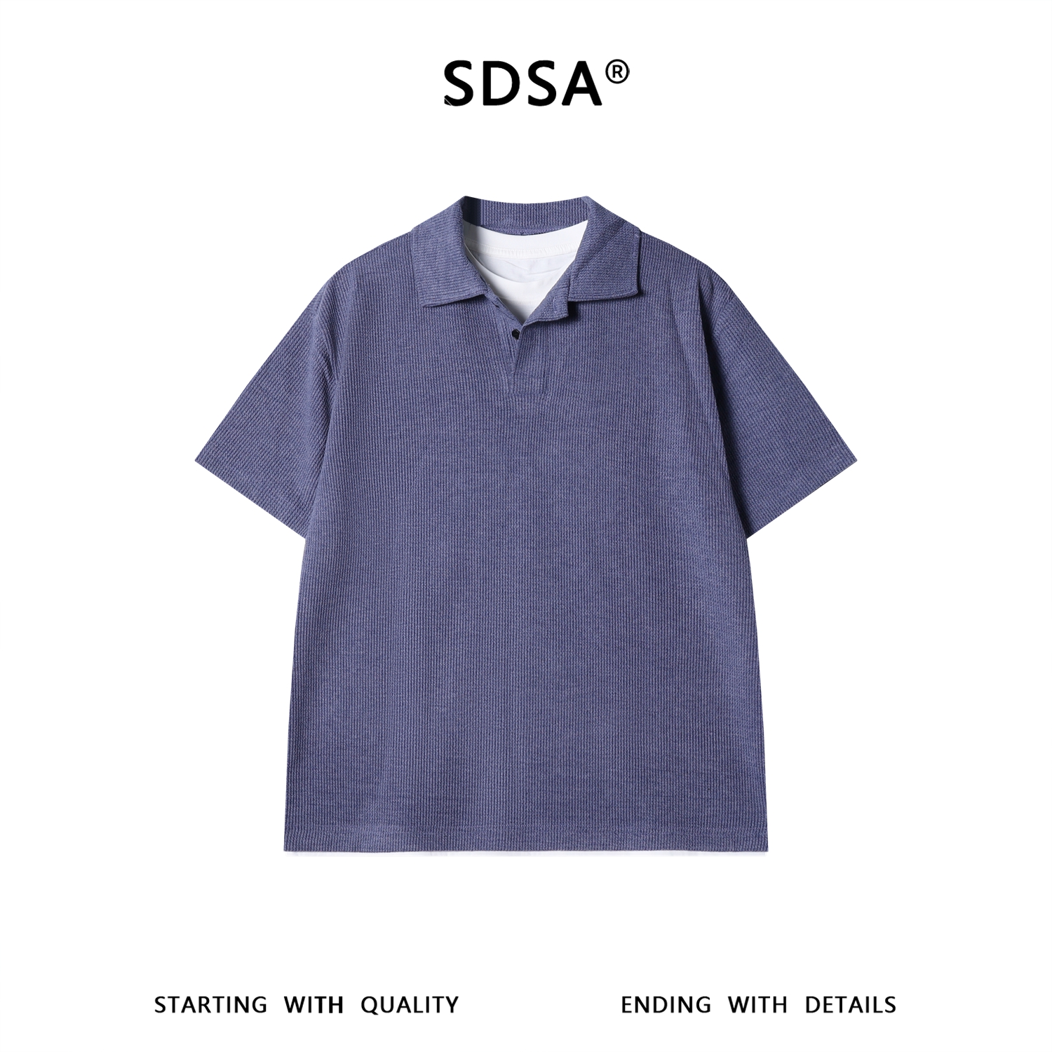 SDSA男装2026新款高贵轻奢美式撞色拼接假两件翻领短袖T恤百搭潮