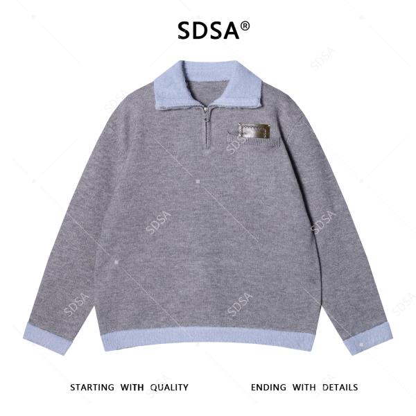 72392SDSA秋冬新款痞帅男装韩版口袋撞色半拉链翻领针织衫毛衣百搭