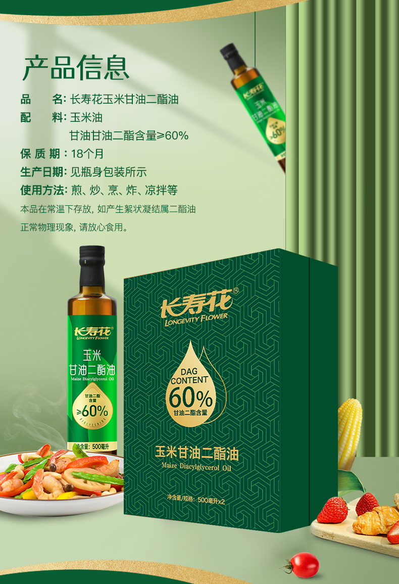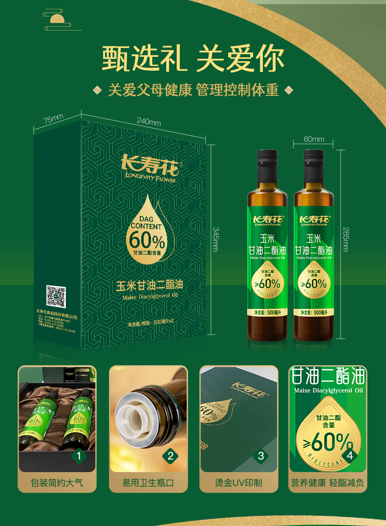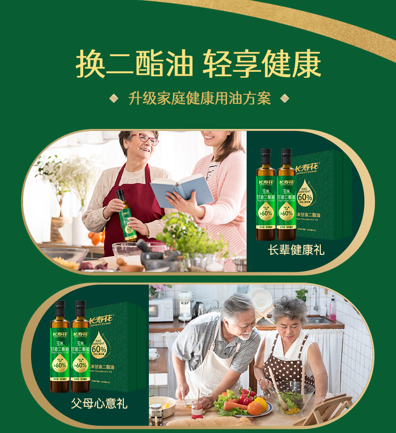 长寿花浓香玉米二酯油500ml*2礼盒装甘油二酯含量60%