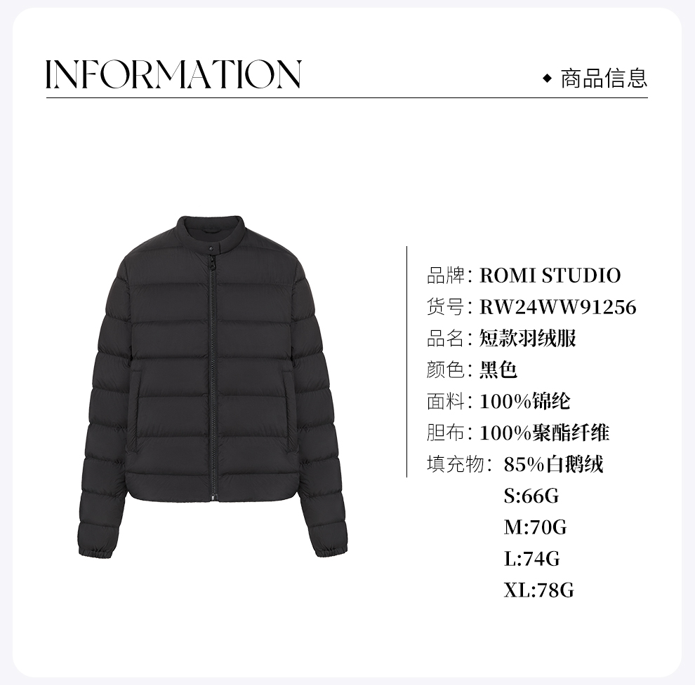 ROMI STUDIO“轻盈锁温”白鹅绒柔软肤感立领短款羽绒服RW24WW91256