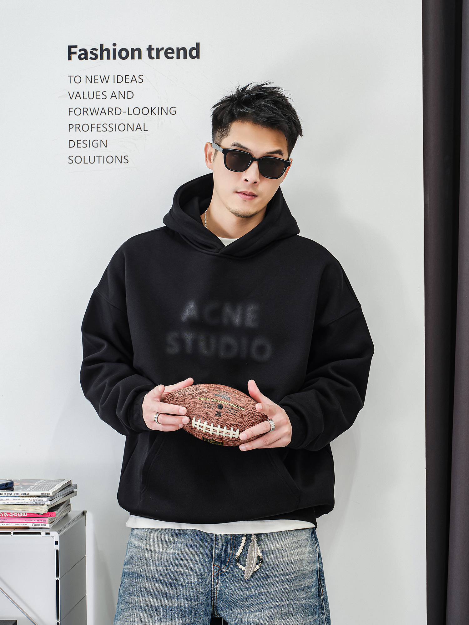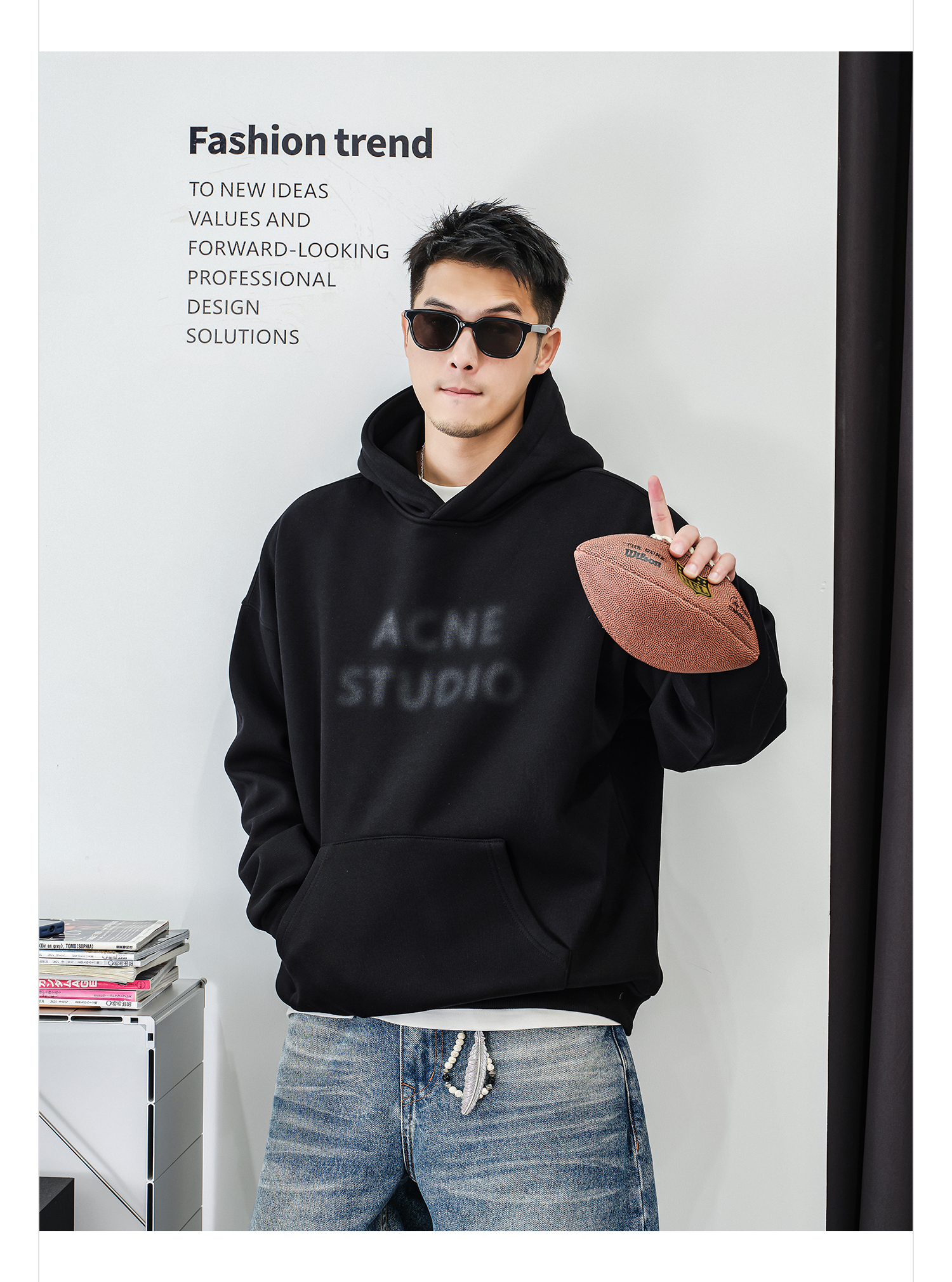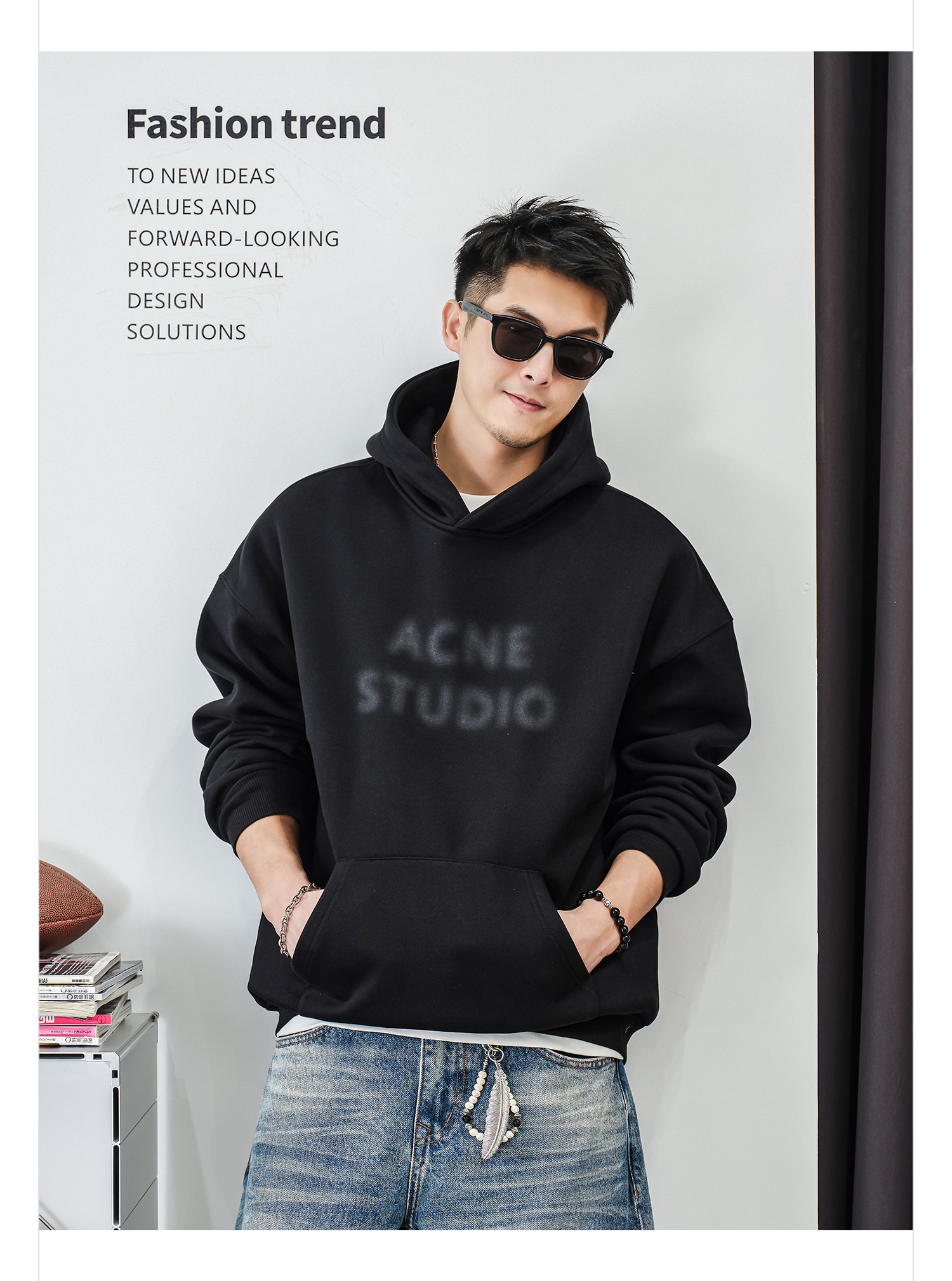 徐太浪【街头风 帅气印花】加绒连帽卫衣男秋冬款休闲风帽衫外套