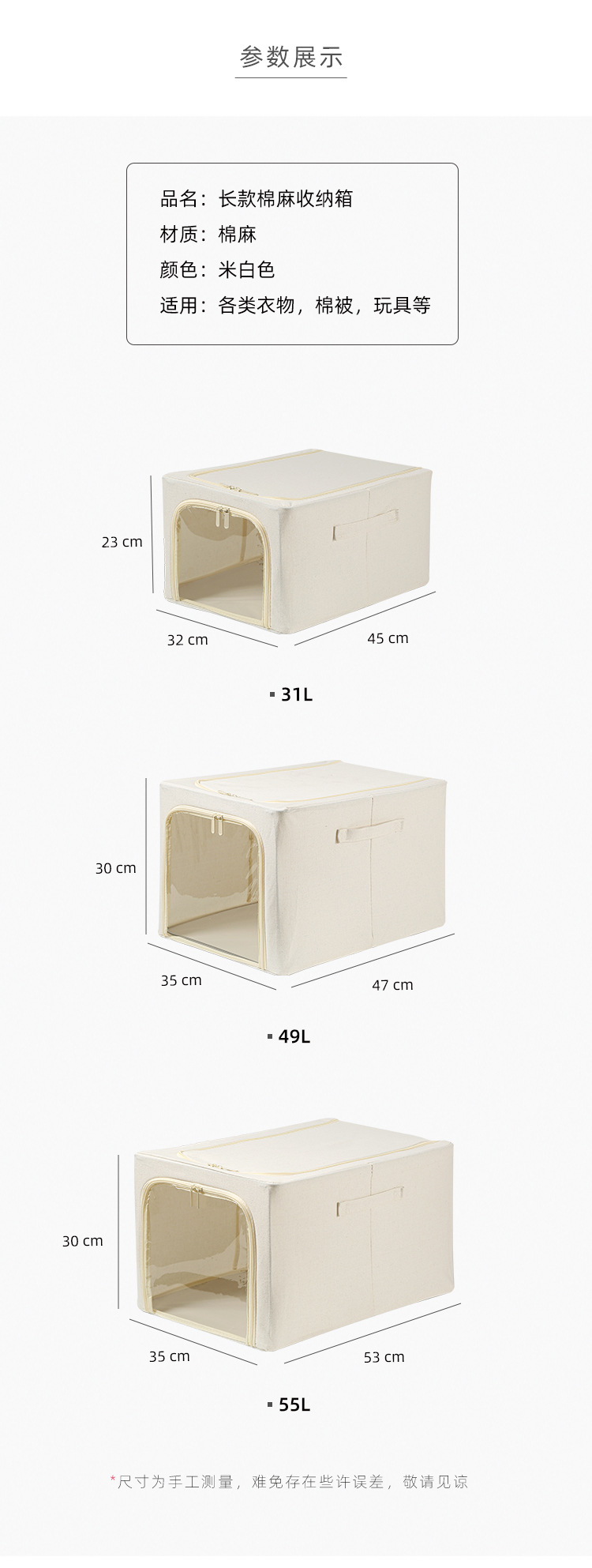 【31L/49L/55L】娜家优质舒雅棉麻窄长百纳箱升级可水洗pp板