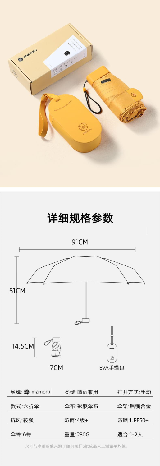 mamoru葵六折EVA太阳伞 晴雨两用迷你小巧六折便携伞小雨伞