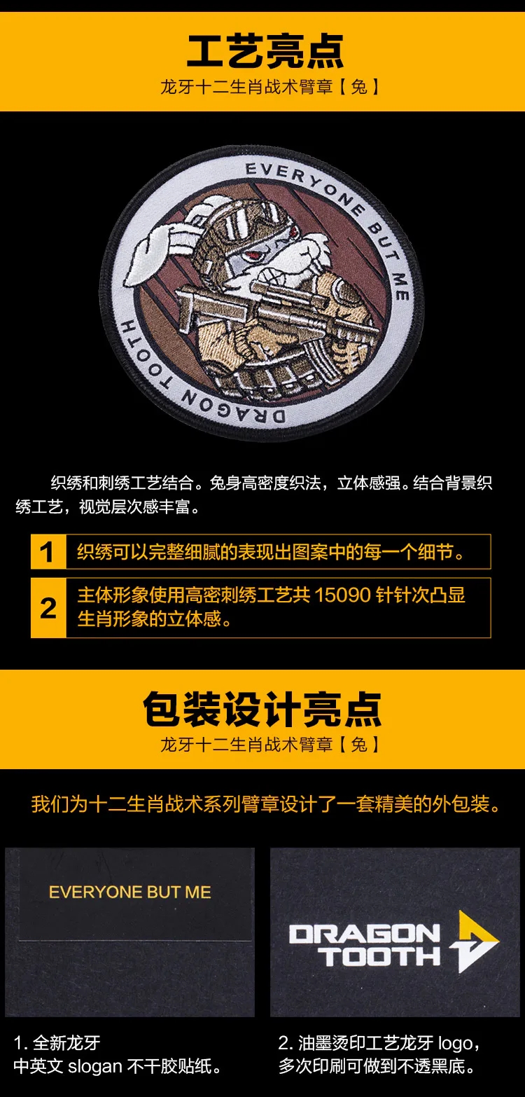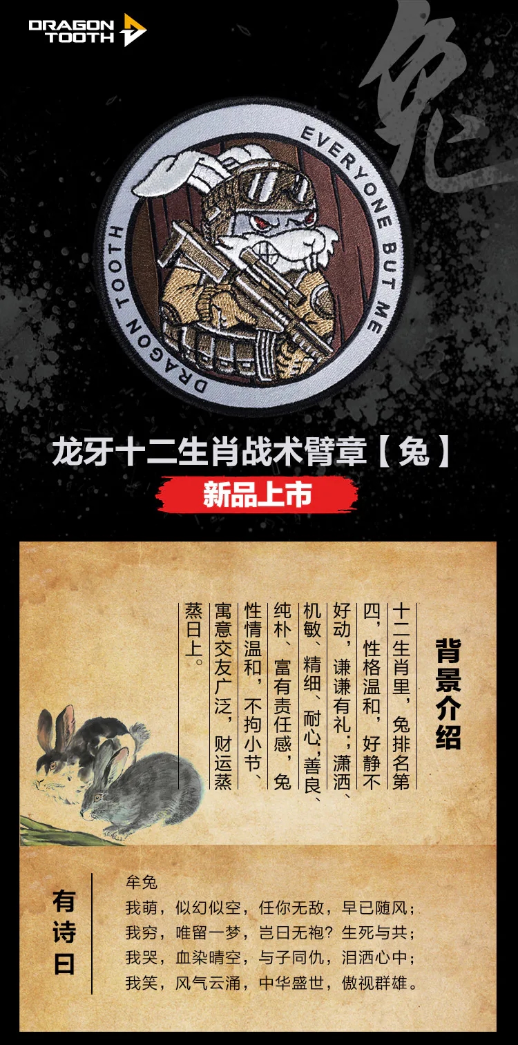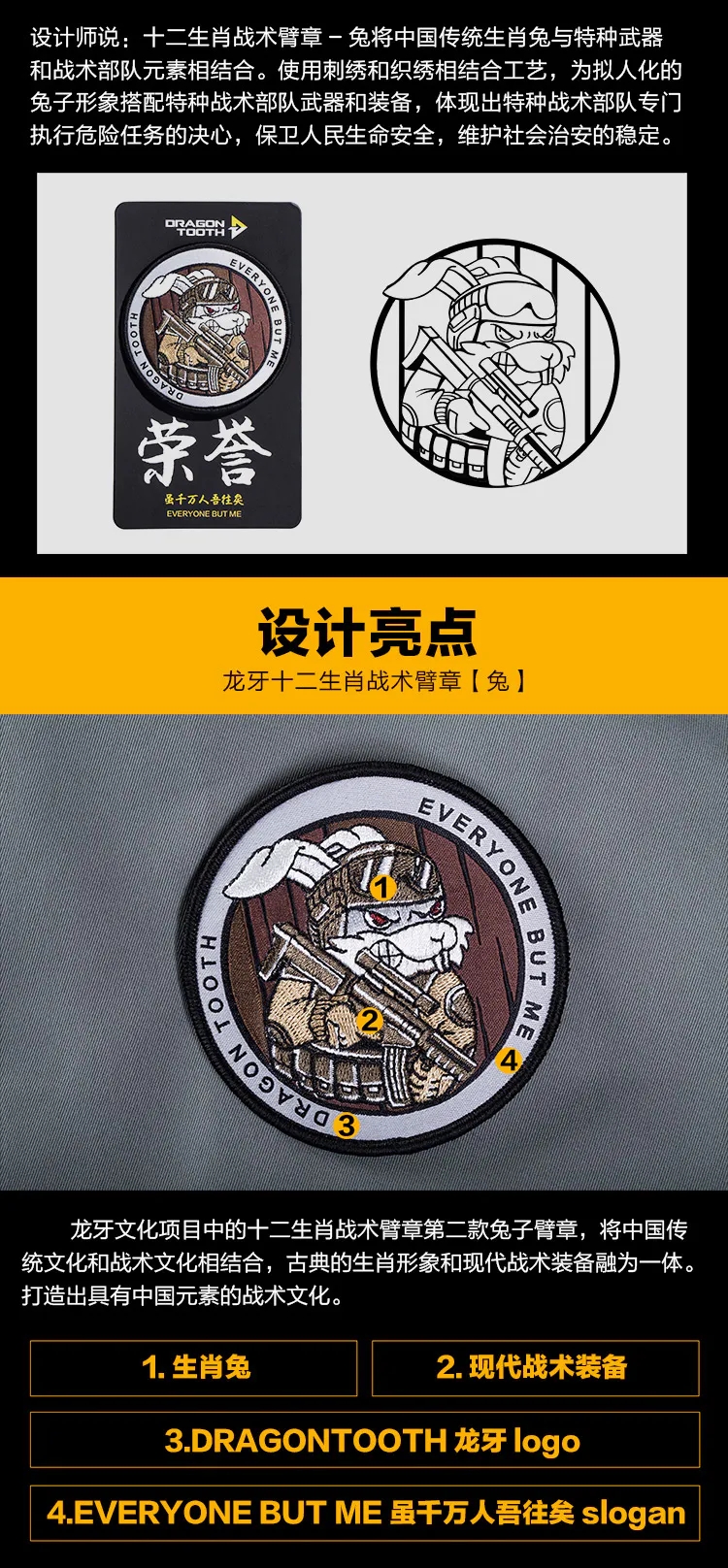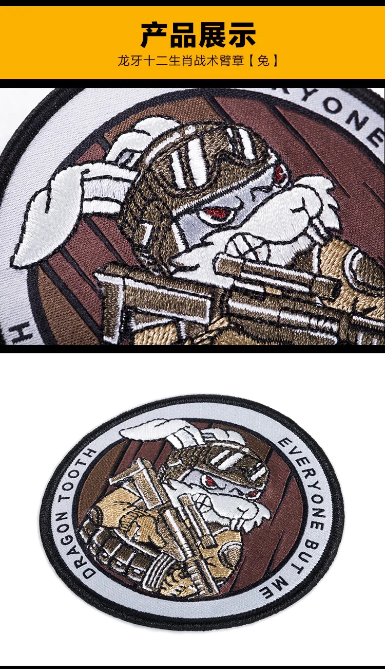 十二生肖战术臂章(兔)魔术贴章中国元素刺绣圆形战术装备男