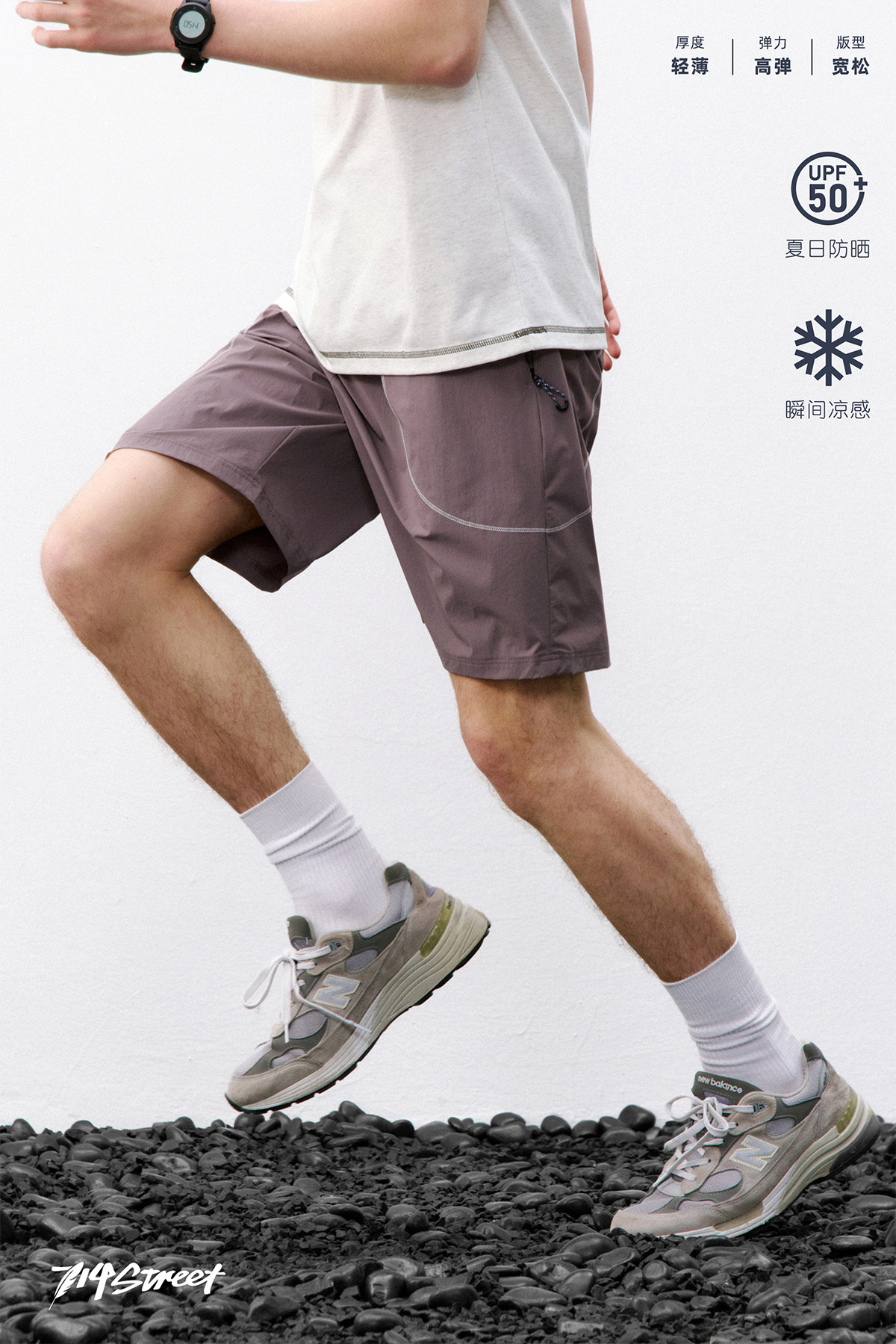 714street凉感防晒不规则明线速干运动短裤2026夏季轻薄五分裤男