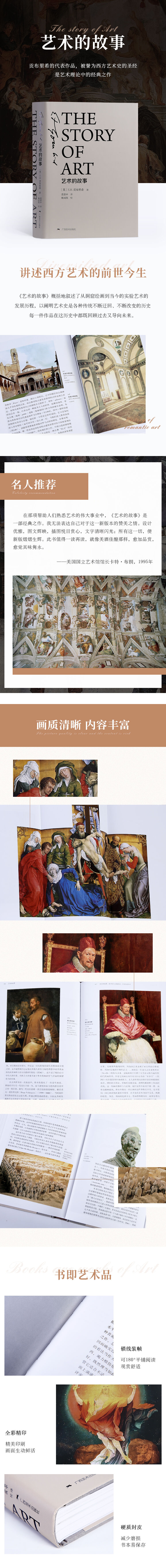 《艺术的故事》是有关艺术的书籍中的著作。它概括地叙述了从早期的洞窟绘画到当今的实验艺术的发展历程,出版后0多年来,一直是这一领域无可匹敌的入门书。全世界不同年龄不同背景的读者通过贡布里希的讲述认识到了这位真正的大师,他把知识与智慧结合起来,以其独特的天赋,直接传播了他本人对艺术作品深切的热爱。 《艺术的故事》因其平实简单的笔法、叙事清晰的技巧而受到持久的好评。贡布里希讲述他的写作目的是:“在大量炫赫的作品中,为丰富的人名、时期和风格找到浅显易懂的秩序来。”他为视觉艺术注入心理学的洞察力,他让我们知晓艺术史就是“各种传统不断迂回、不断改变的历史,每一件作品在这历史中都既回顾过去又导向未来”;是“一条生动的链条,将我们身处的时代与古埃及时期联系起来”。这部经典的著作以新的版本焕往辉来,仍是艺术领域新来者的选择。
