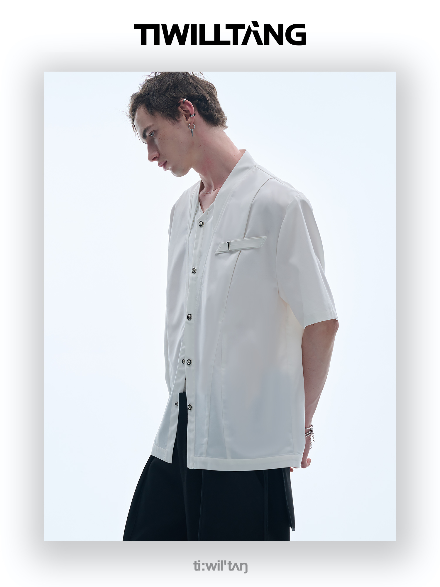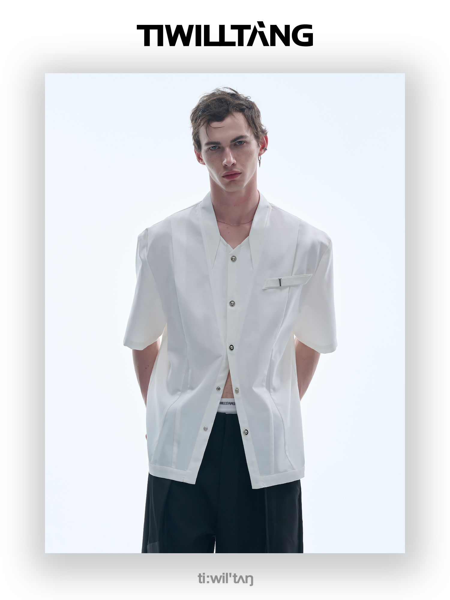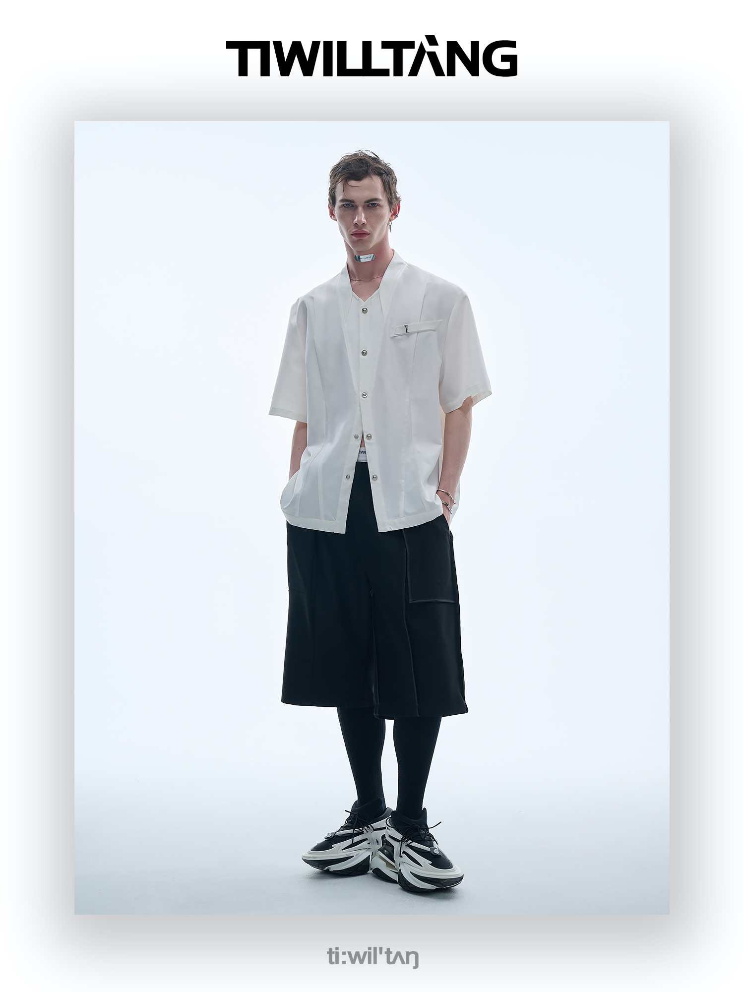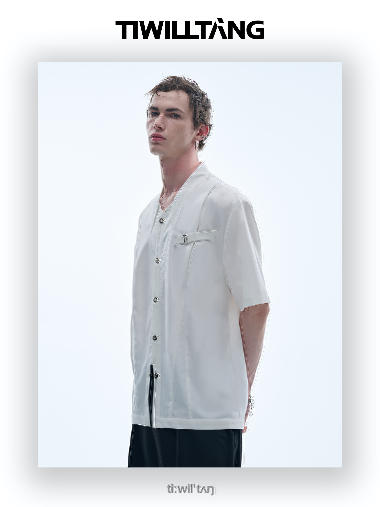 启世录TIWILLTANG“衍绅对世”X型门襟黑白新中式衬衫