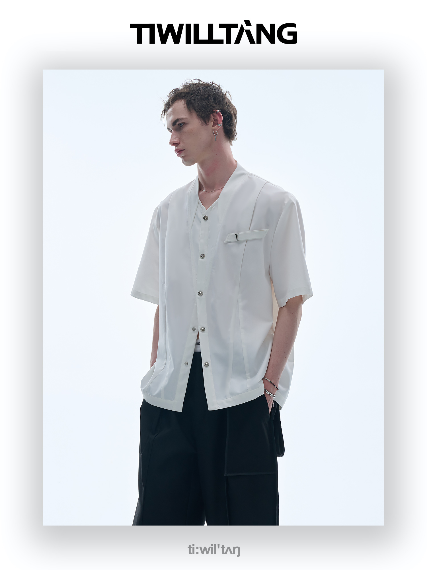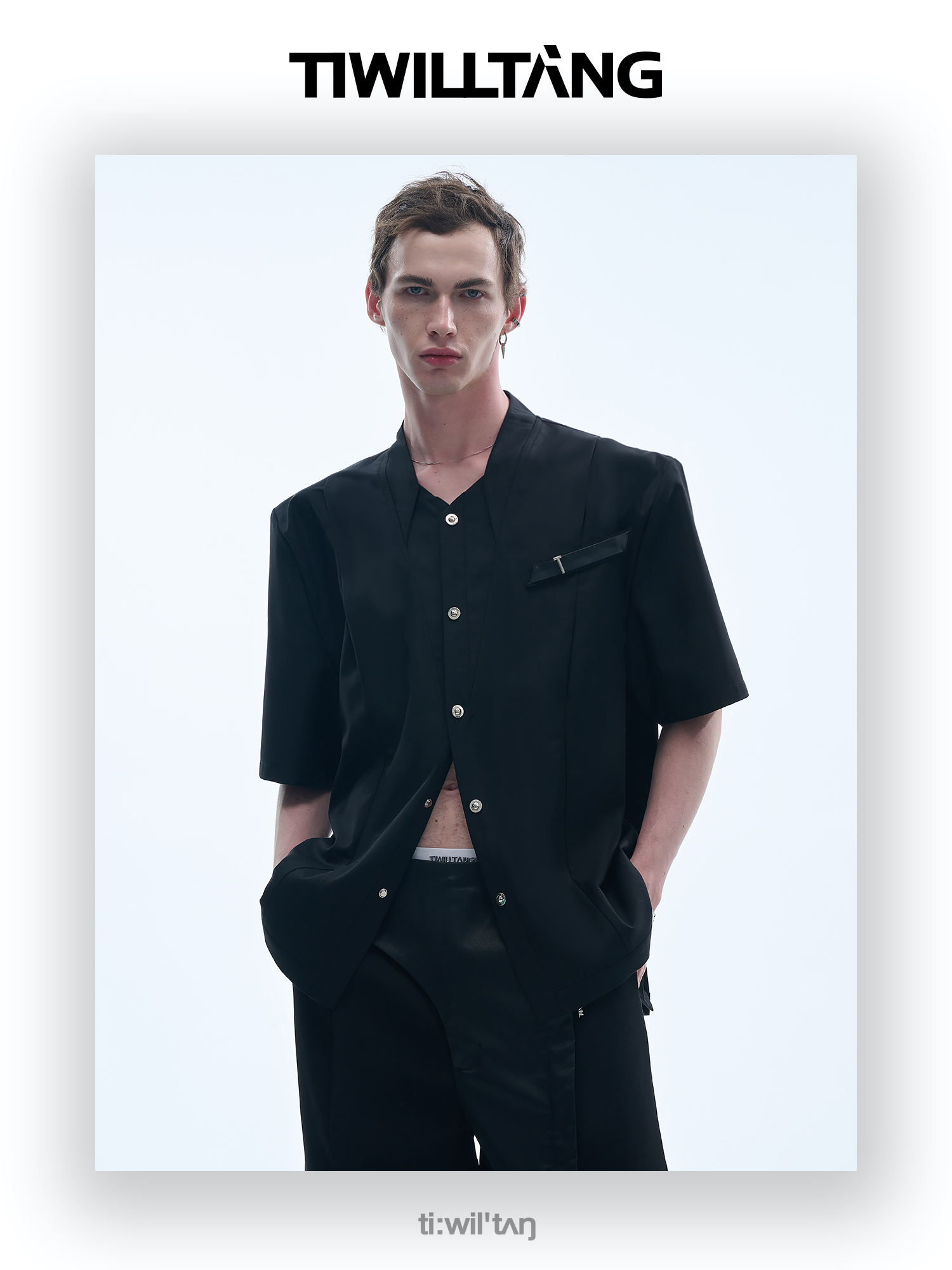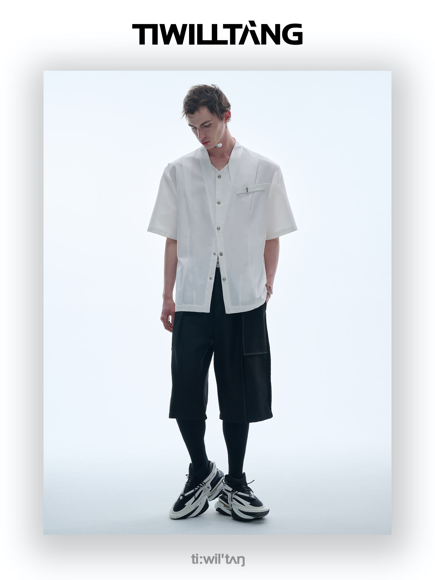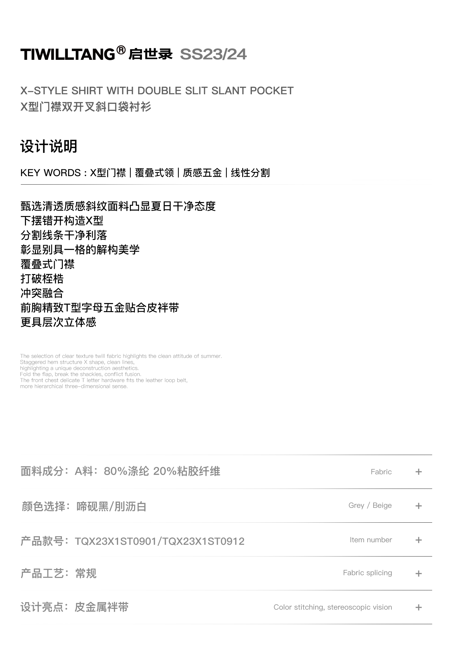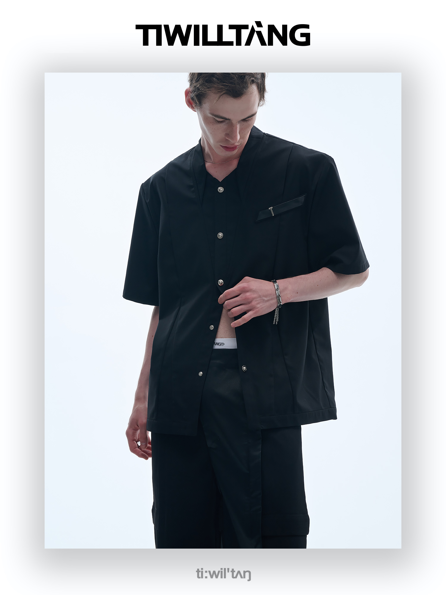 启世录TIWILLTANG“衍绅对世”X型门襟黑白新中式衬衫