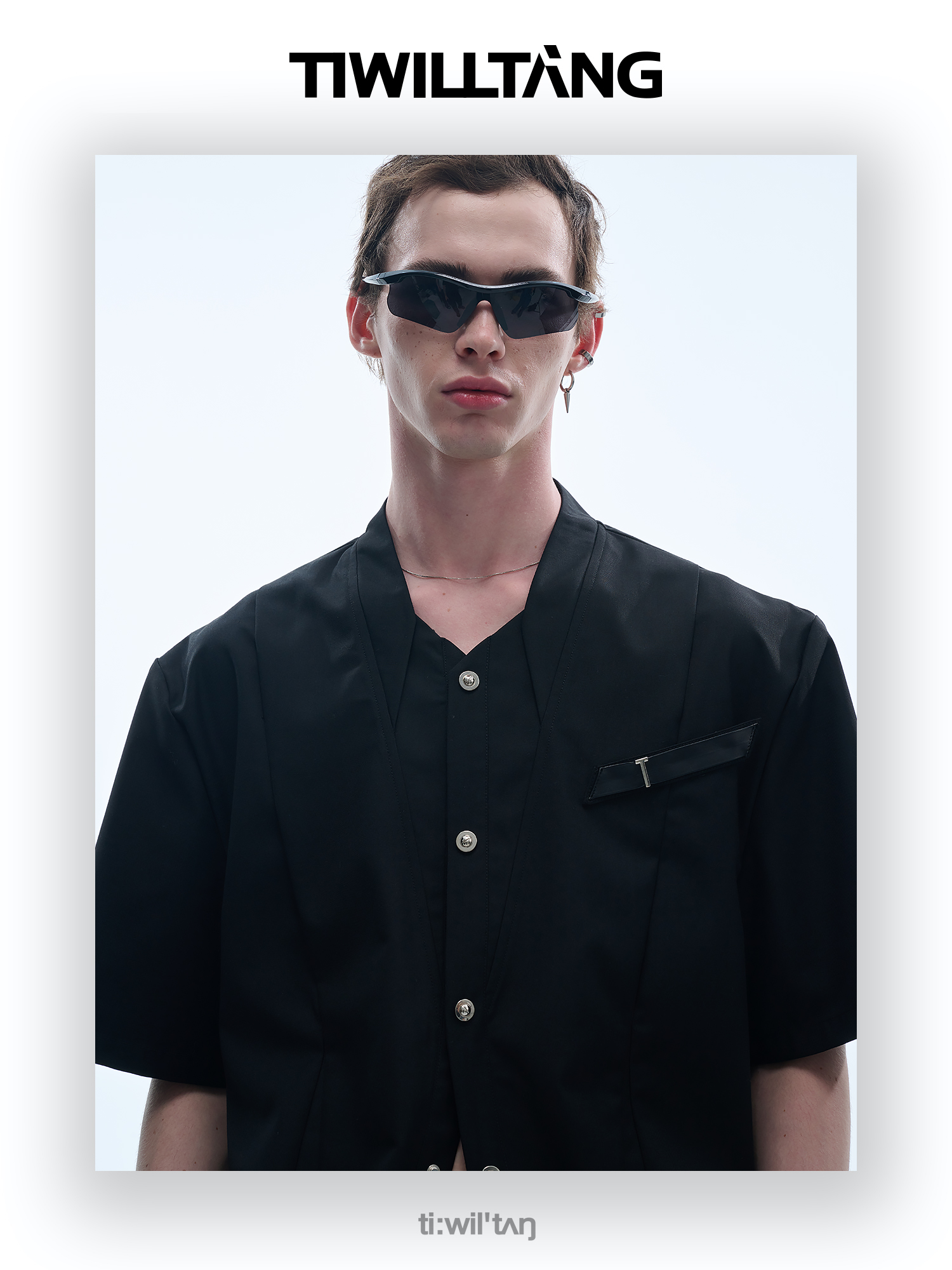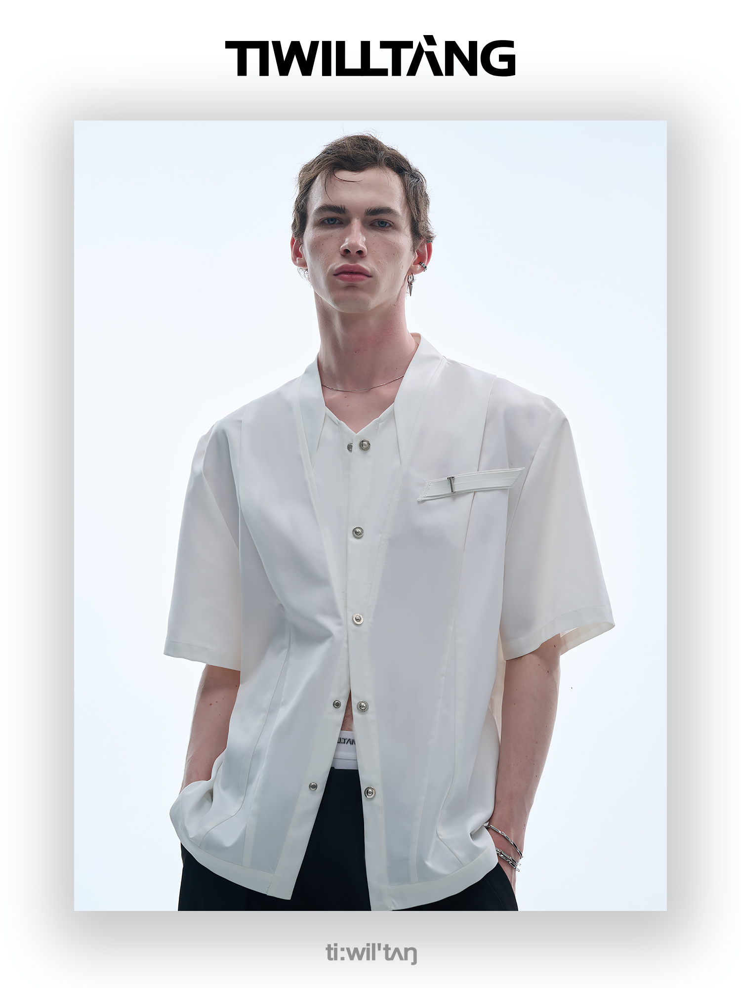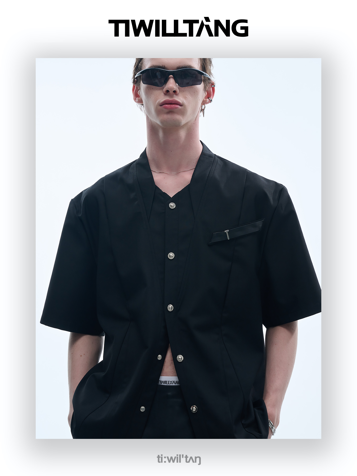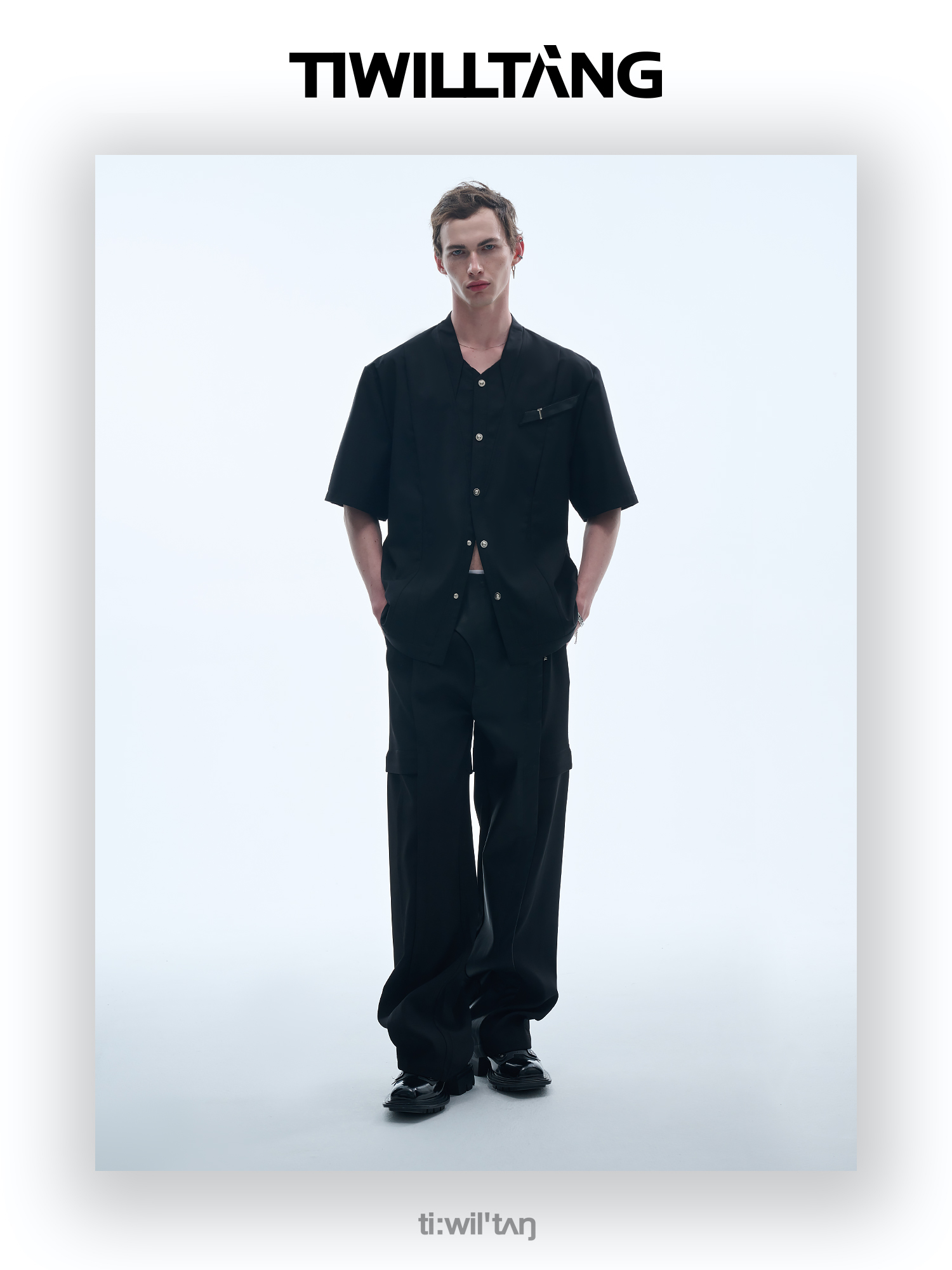 启世录TIWILLTANG“衍绅对世”X型门襟黑白新中式衬衫