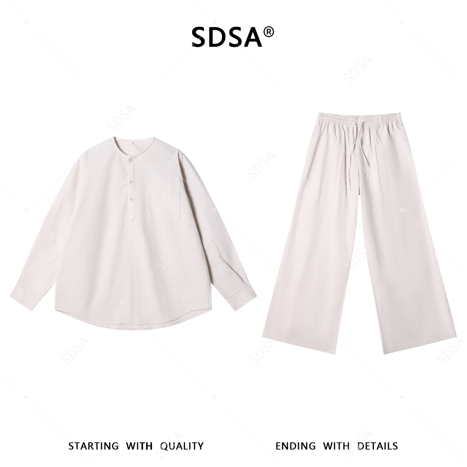 SDSA男装2026新款高贵轻奢松弛感透气通勤休闲两件套衬衣+阔腿裤