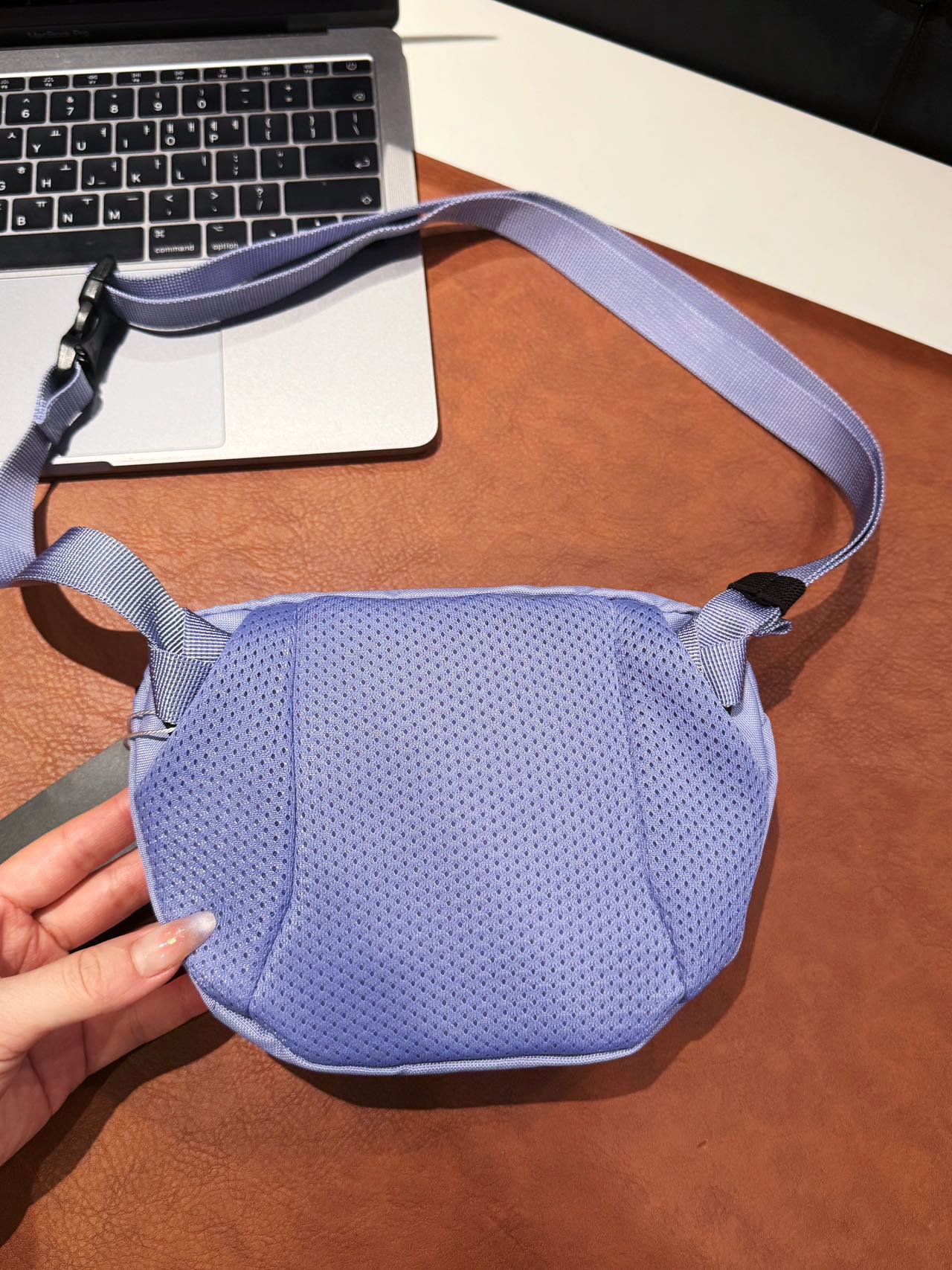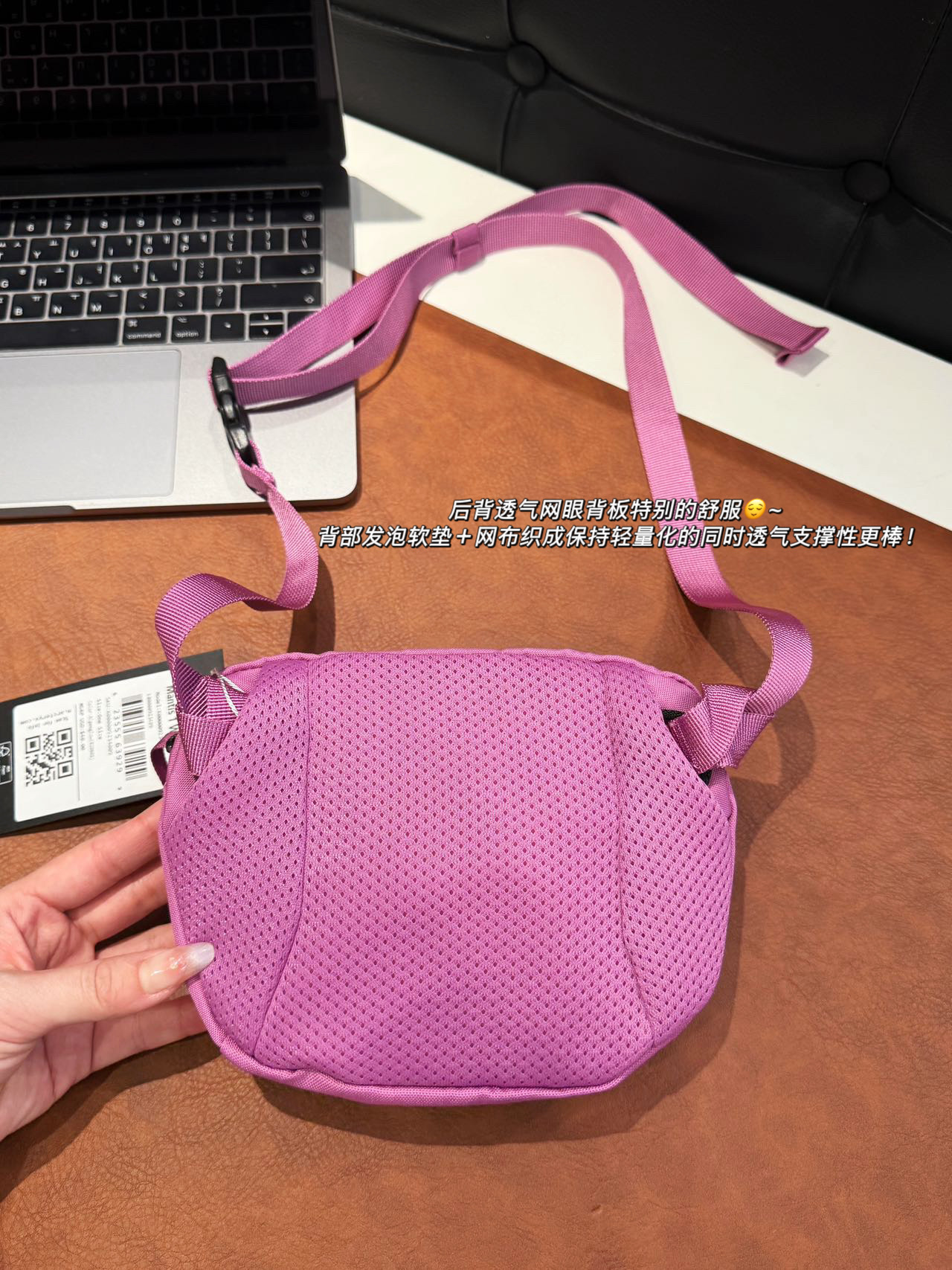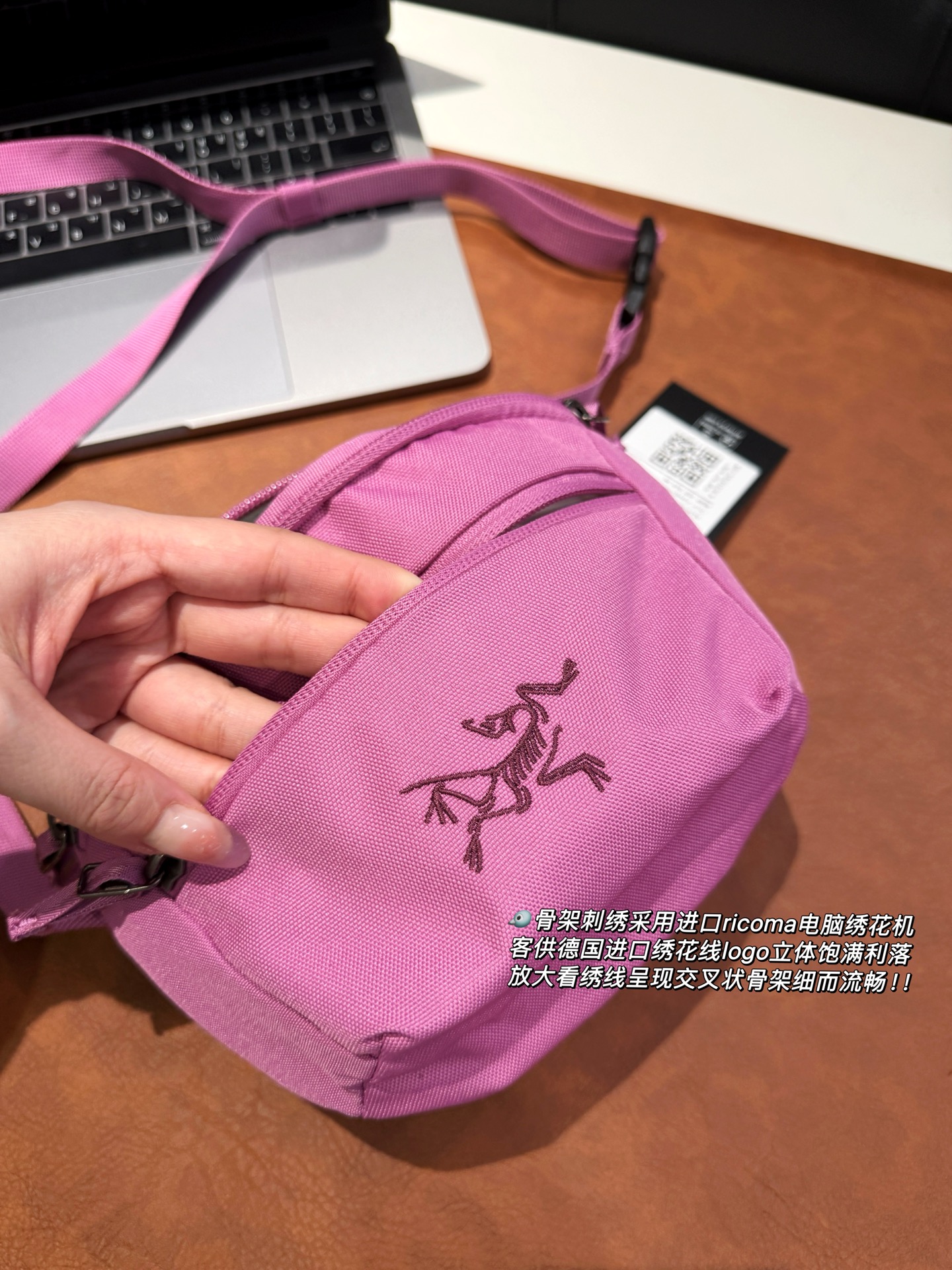 细节:内部空间设计合理,Mantis1是可以装下手机的 装一个大点的 iPhone pro Max也是木有问题日常装个手机-充电宝钥匙-卡包-纸巾-口红-小零碎都是完全可以滴~ 背幅暗袋设计 超方便拿取手机📱会是喜欢精致小巧包包的女生们的心头爱颜色也是一秒戳中心巴~ 搭配一根卡扣可调节肩带可以做腰包可以斜挎可以单肩 适配度非常高美产ITW卡扣 全球最大五金件生产商之一!!!! 背部暗仓口袋设计放手机真是太方便了 后背透气网眼背板特别的舒服😌~ 背部发泡软垫+网布织成保持轻量化的同时透气支撑性更棒! 🐦骨架刺绣采用进口ricoma电脑绣花机客供德国进口绣花线logo立体饱满利落放大看绣线呈现交叉状骨架细而流畅!! 所有的用料 细节 都是一样的东西 你们放心来 面料、版型全部对版 支持任意对比 🆚原单!!