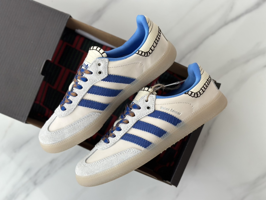 Wales Bonner x Adidas Originals Samba Classic"White/Royal Blue/Gum"桑巴舞系列绅士德训足球百搭皮革板鞋