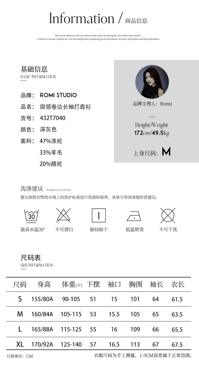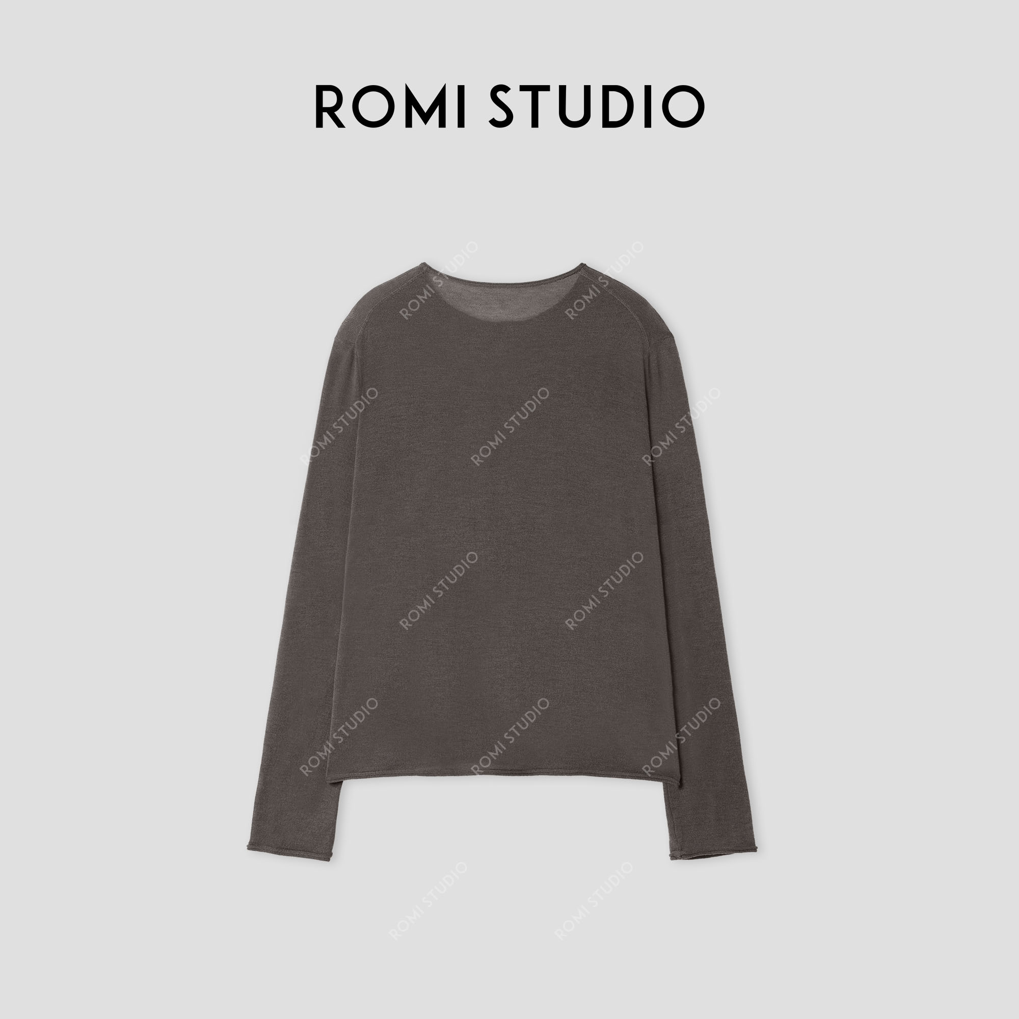 ROMI STUDIO “法式优雅” 16S羊毛混纺圆领卷边长袖针织衫432T7040