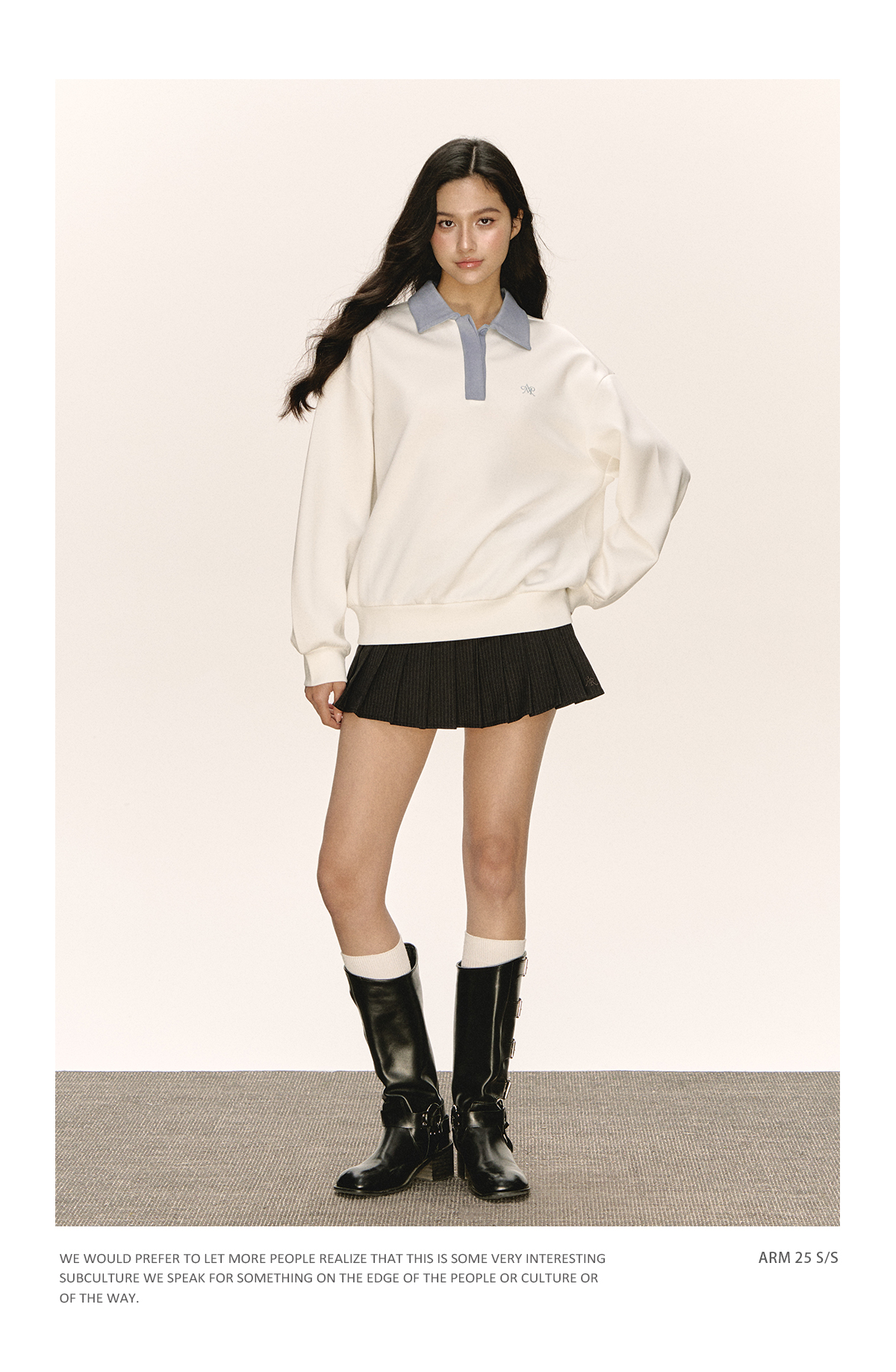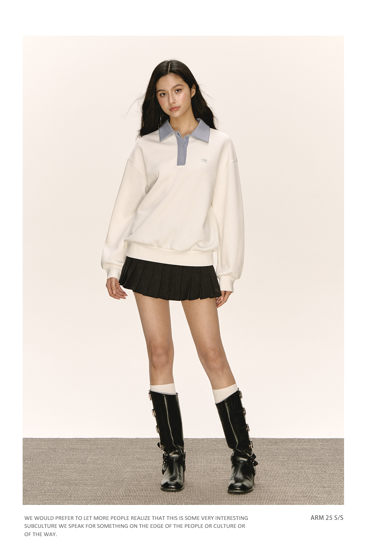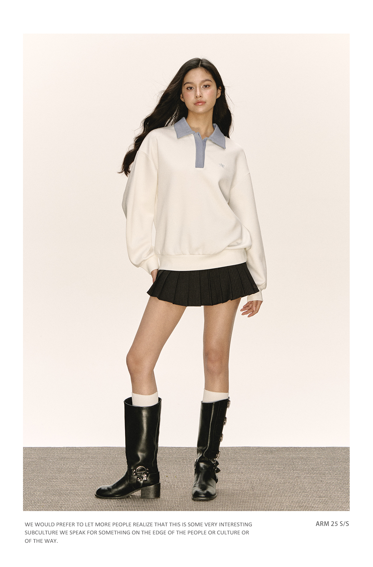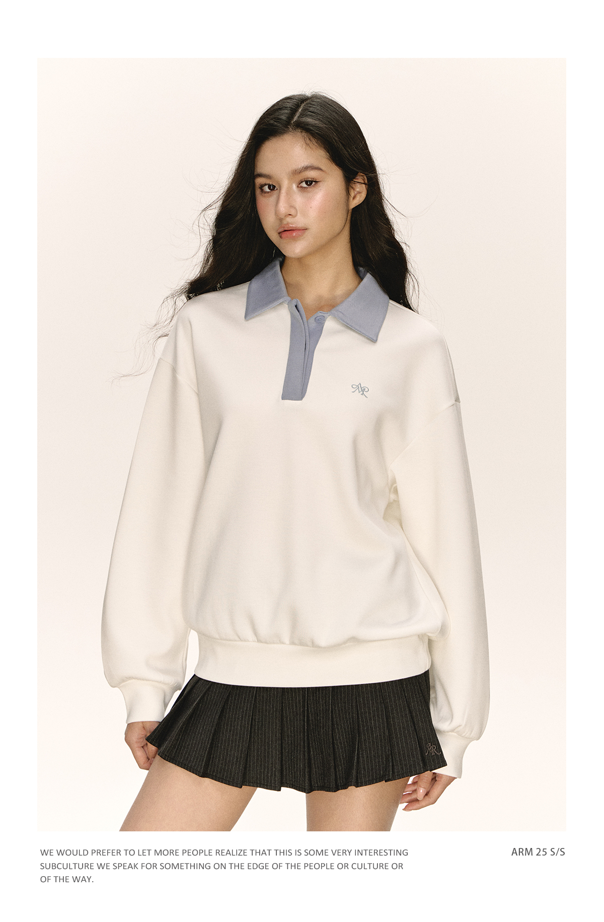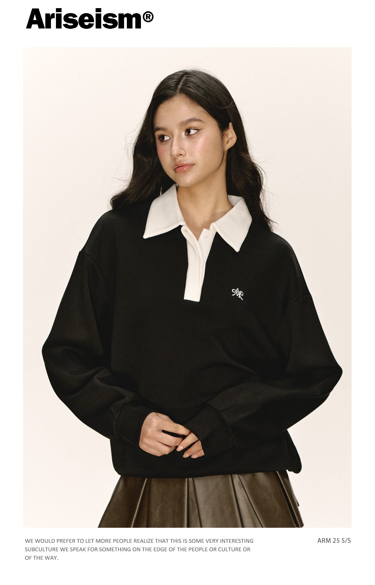 Ariseism 美式复古双色拼接POLO领卫衣外套女秋季新款宽松上衣