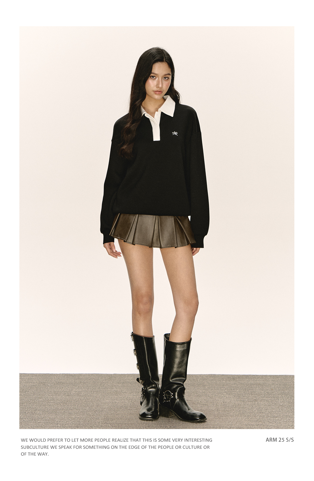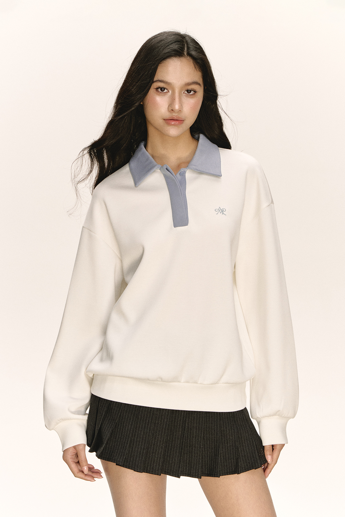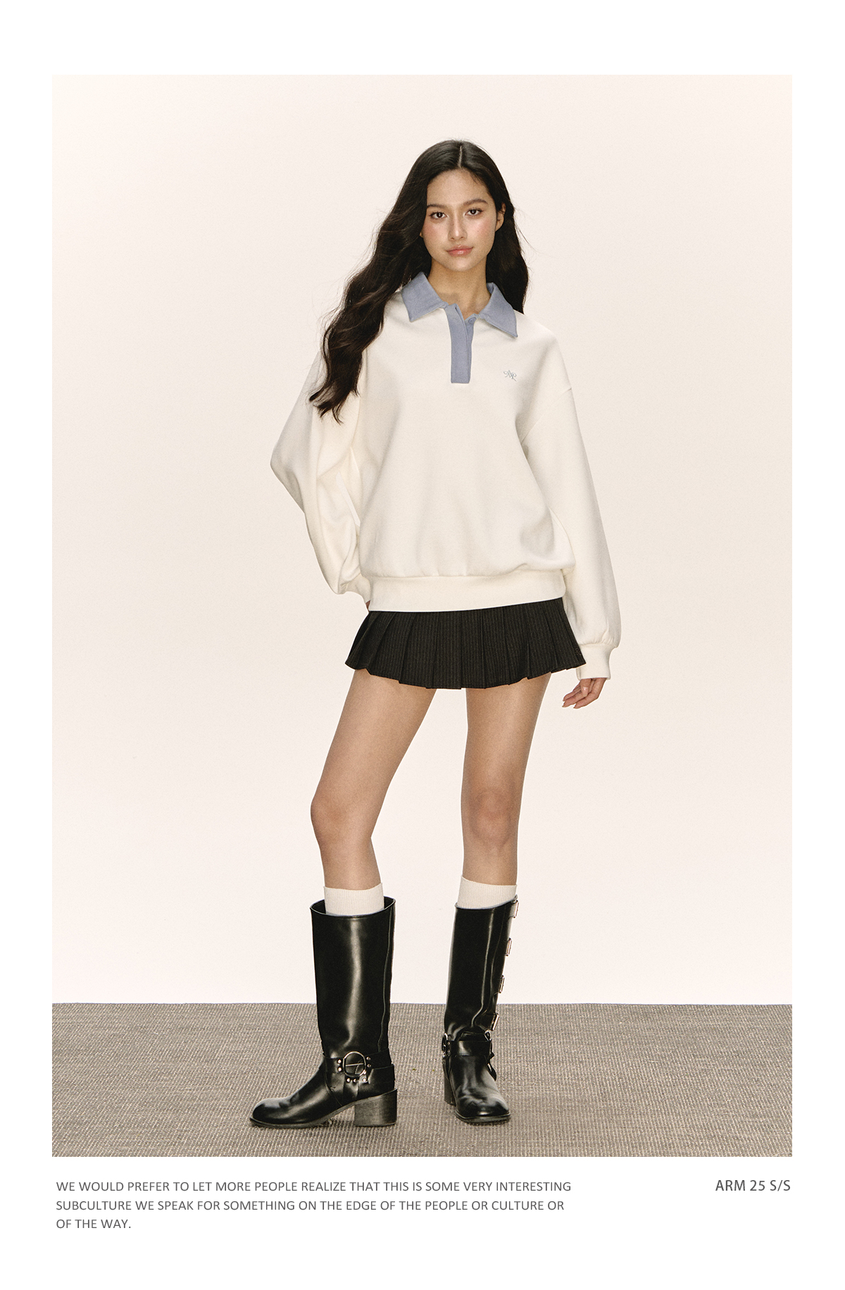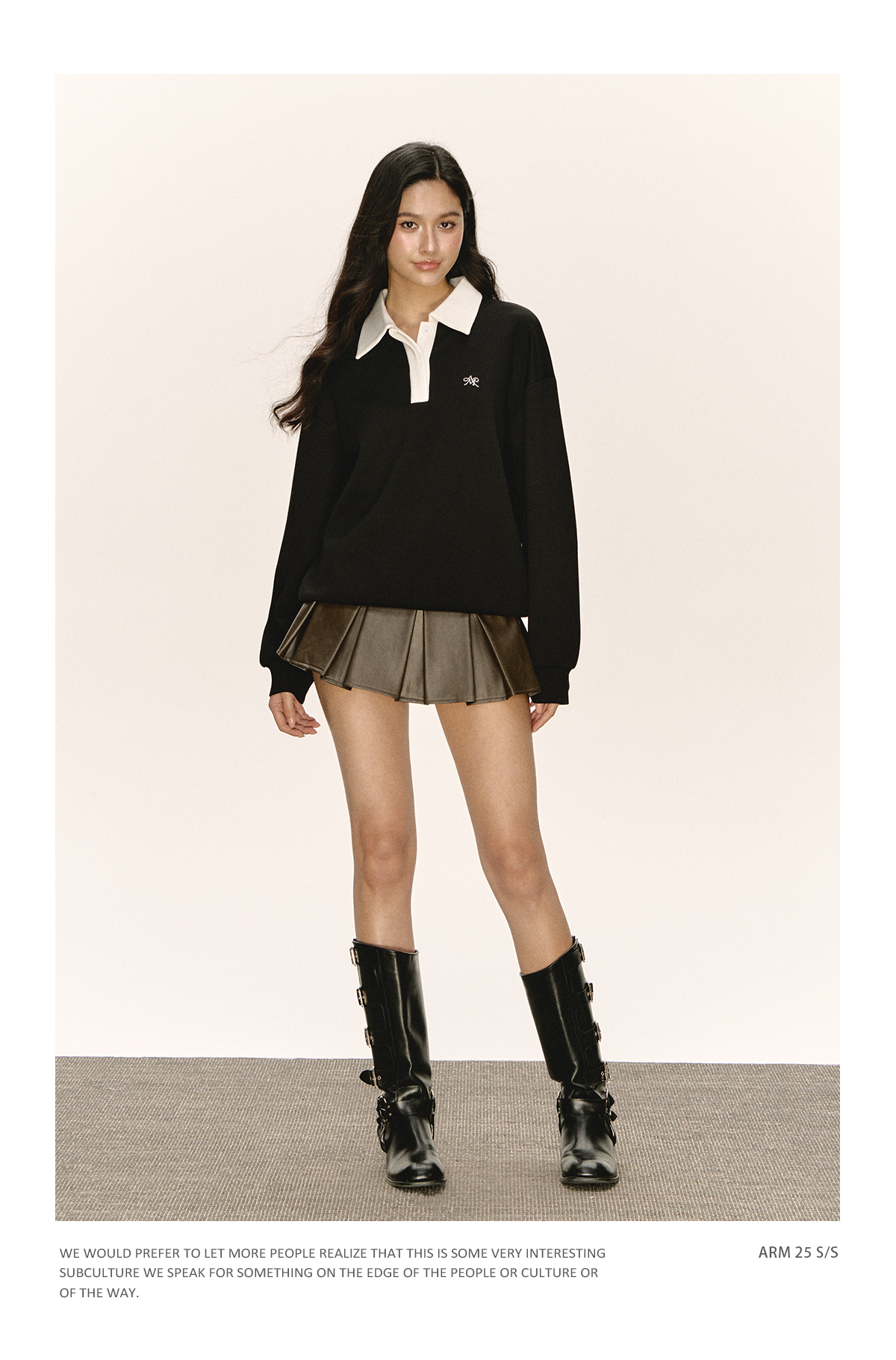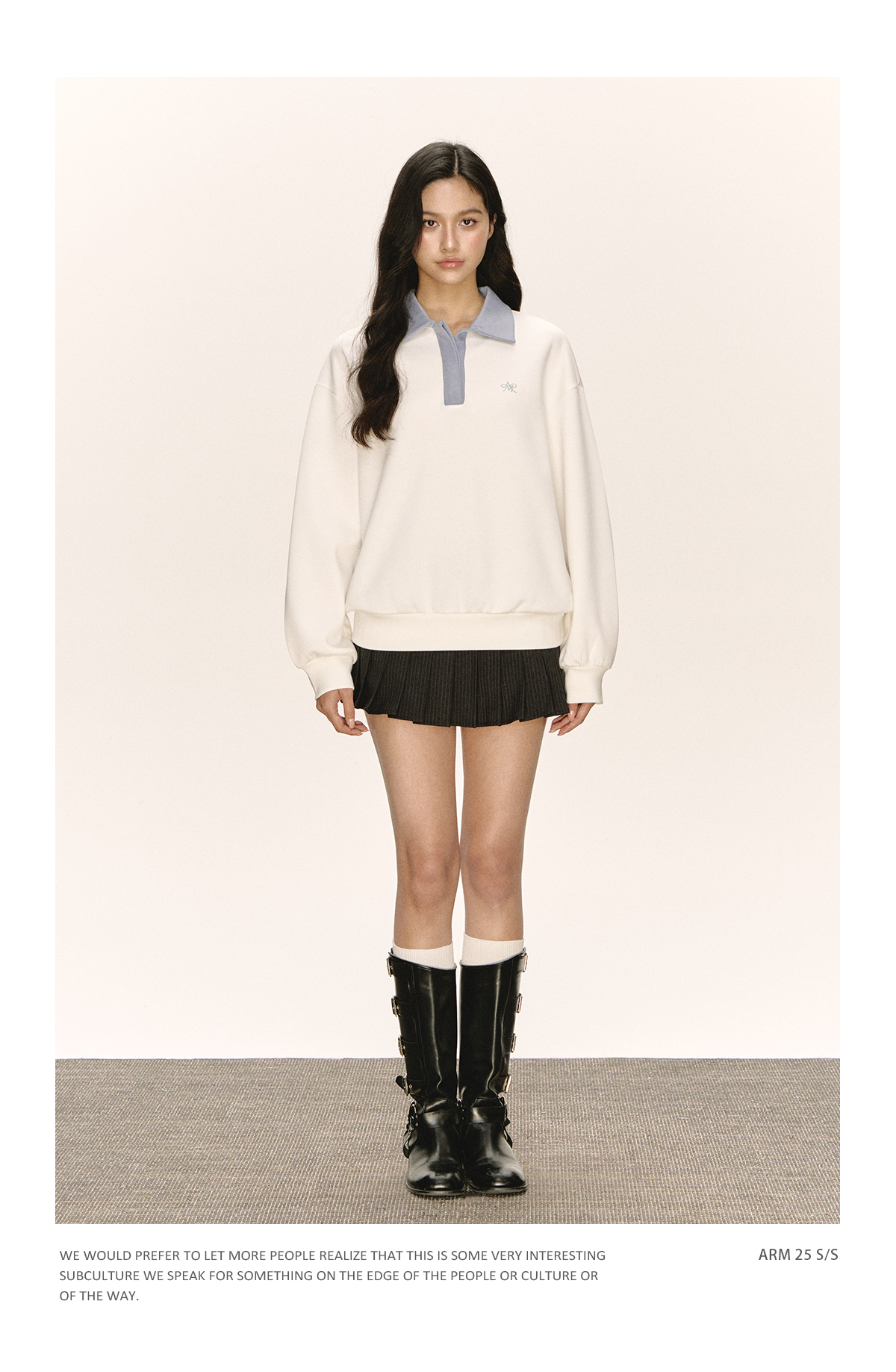 Ariseism 美式复古双色拼接POLO领卫衣外套女秋季新款宽松上衣
