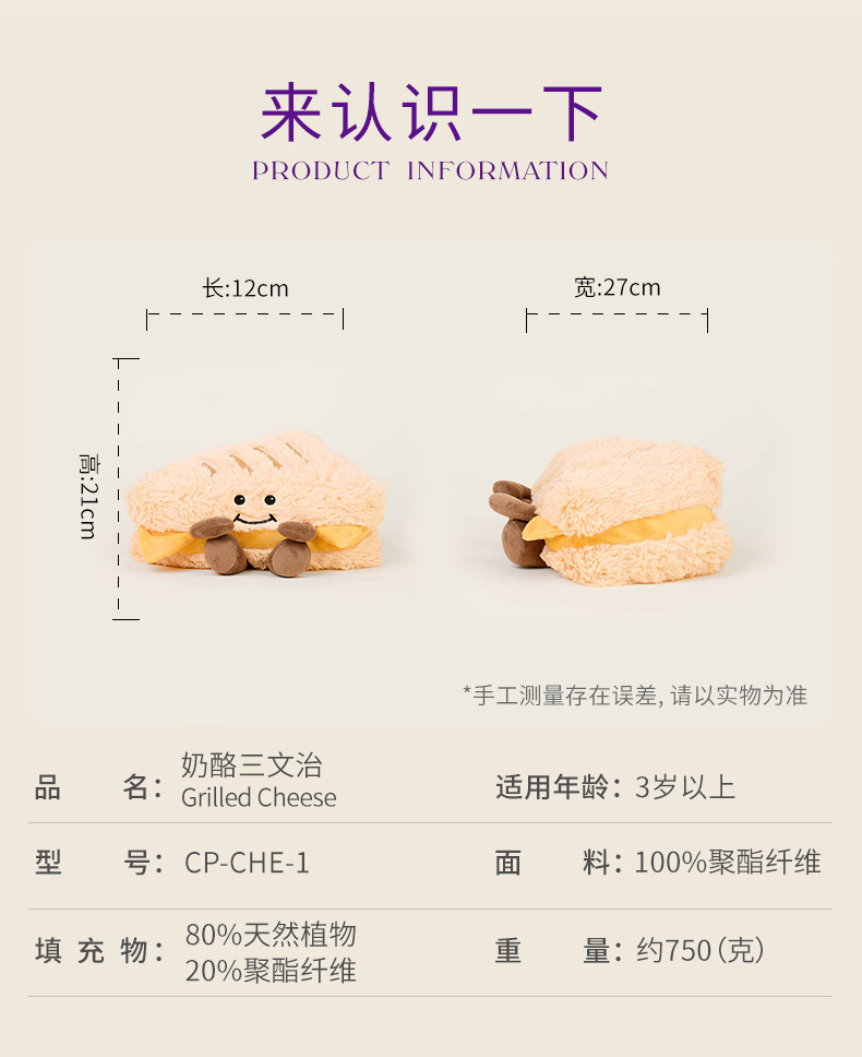 英国warmies 奶酪三文治安抚玩偶公仔送礼毛绒可加热抱枕