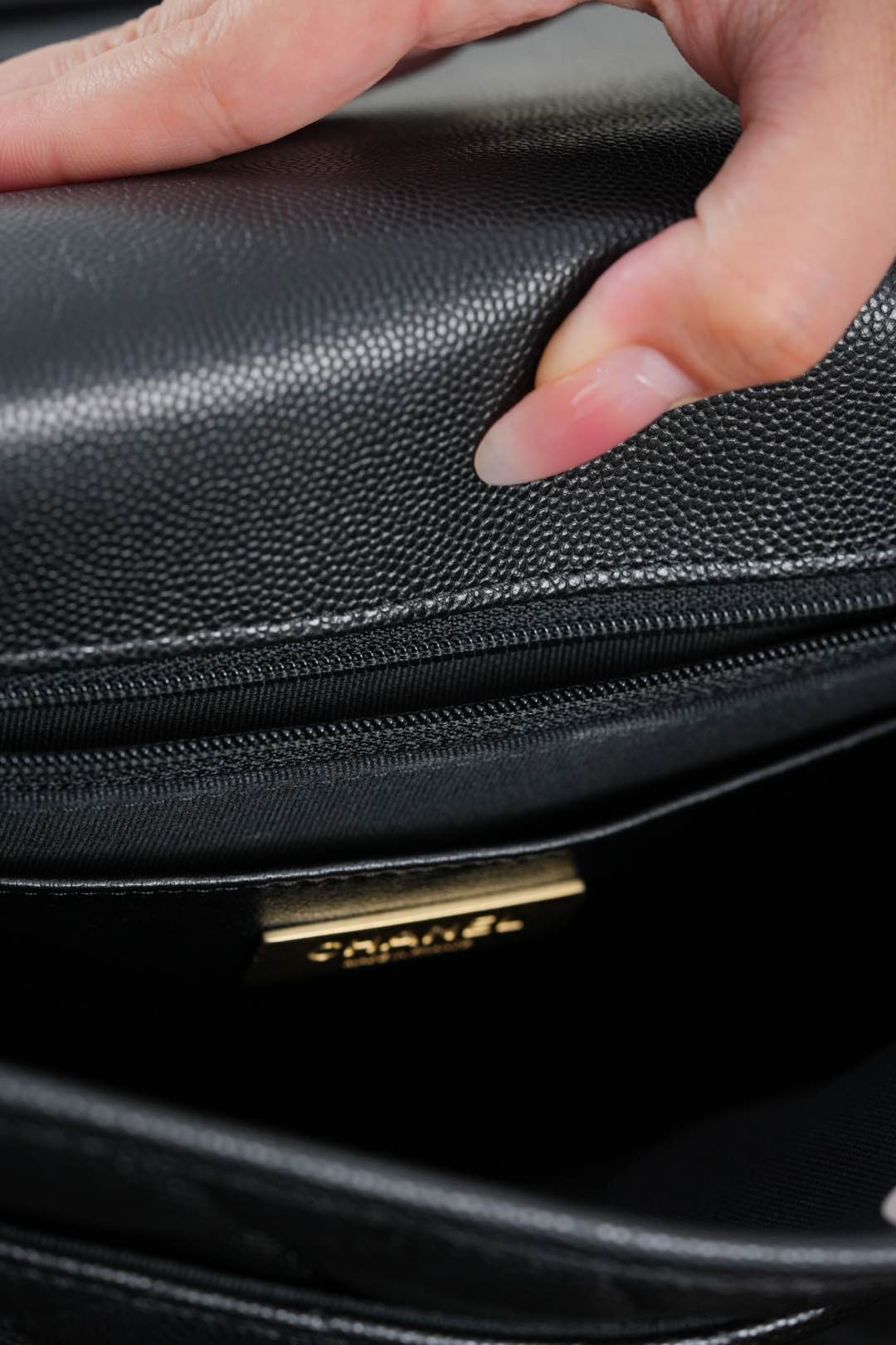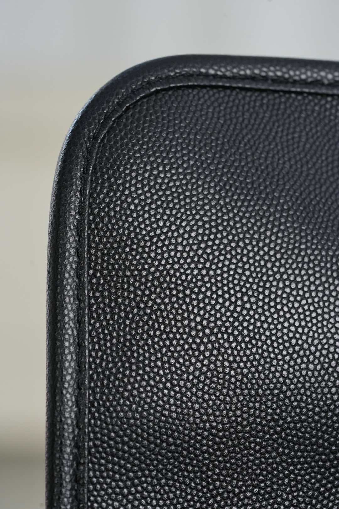 原版HAAS鱼子酱牛皮🐂;整体硬度较高区别于休闲型包包;包型方正立体;每一个菱格弧度均匀一致🔍。包边圆润流畅~内盖上做双C立体浮雕 !
