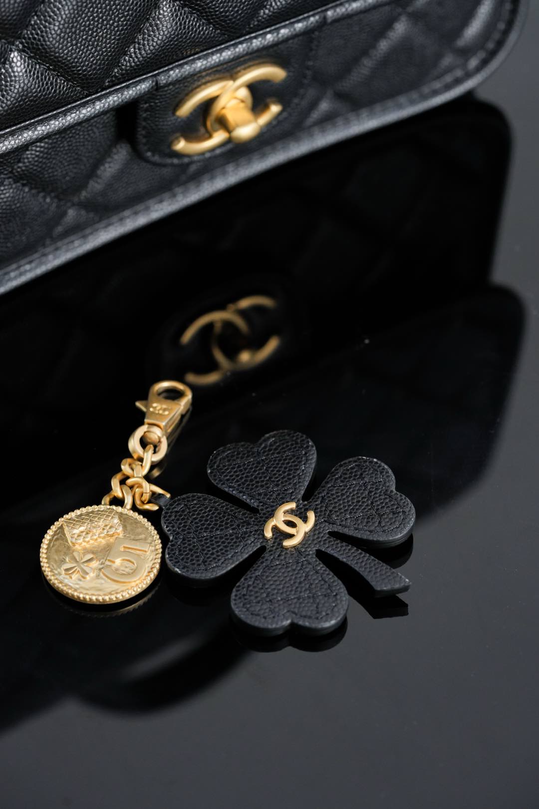 原版砂金配件鉴赏🔥 四叶草勋章上集齐菱格包、5️⃣号香水符号、双C经典元素✔️ 自带高奢感👏🏻 浓郁的砂金让整体增添不少中古感!