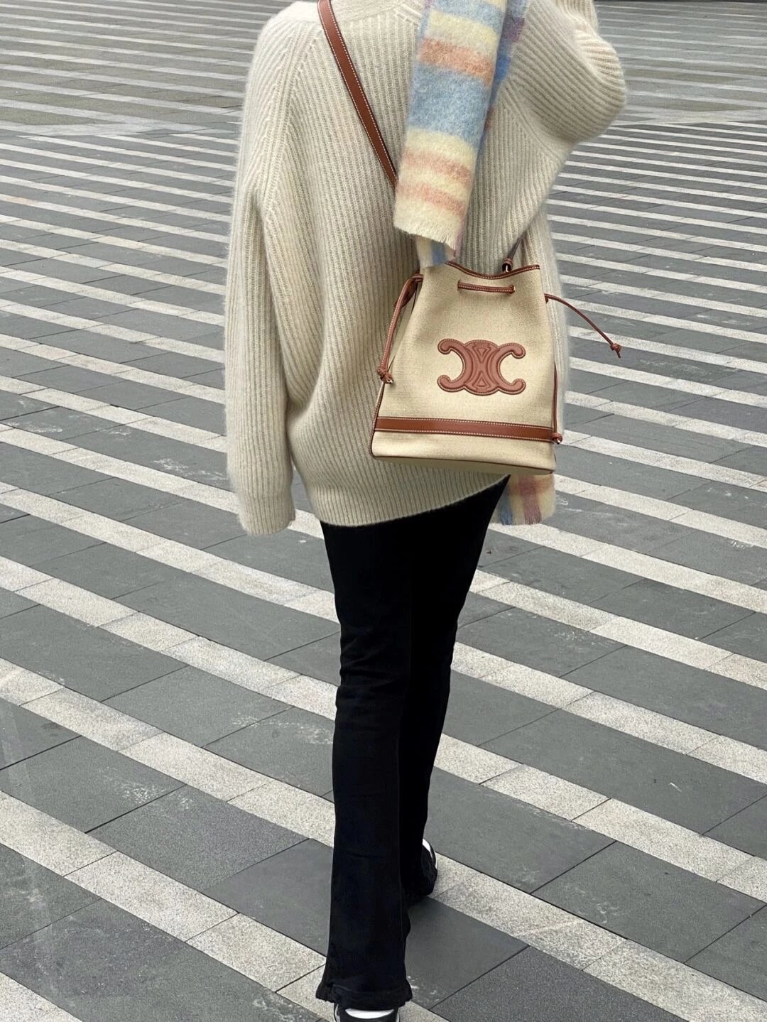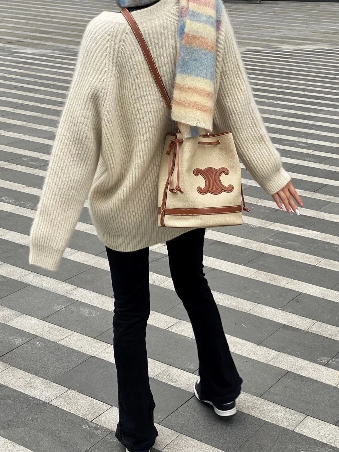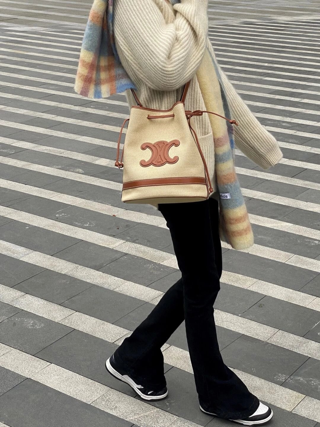 能装又时髦!容量很大很能装,平时穿什么风格都能hold住!也可以把水桶包封口处的带子用来提着,是两种背法的包