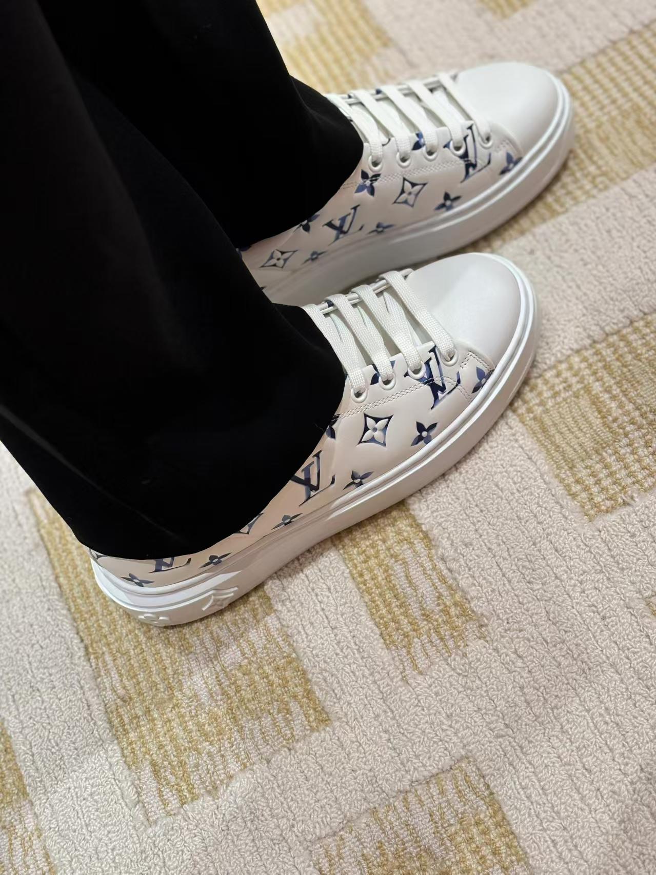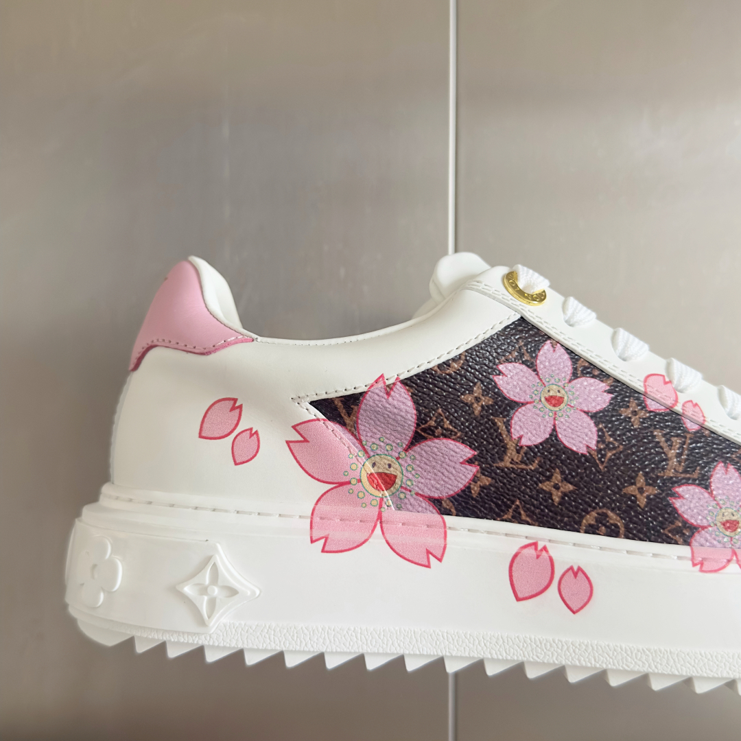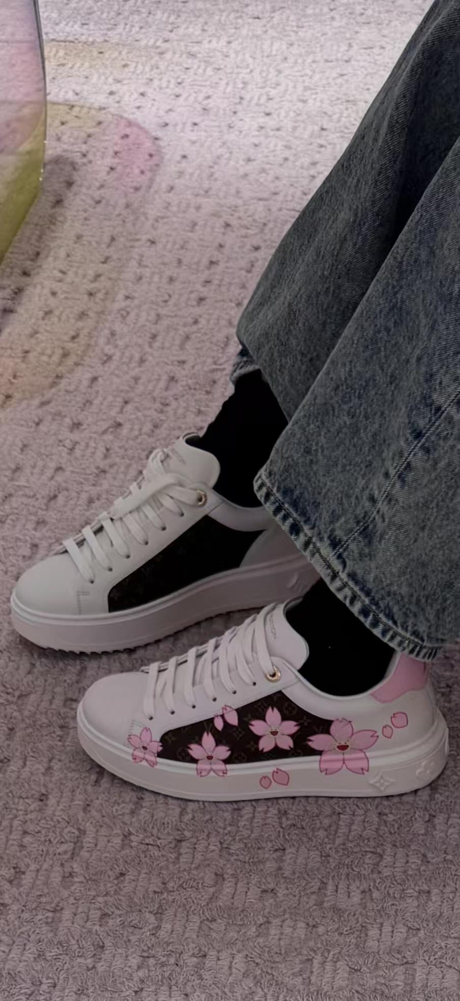 顶级版本:女款 LV x TM村上隆 联名款 驴牌 L家 Time Out 樱花系列 休闲 小白鞋 运动鞋 原版购入开发 做货 本款 Time Out 运动鞋出自路易威登 x 村上隆复刻系列,展露生机盎然的运动风尚。素面牛皮革点缀经典 Monogram 元素,Cherry Blossom 印花与鞋后的明媚饰边注入灵动笔触。Monogram 花卉于加厚橡胶外底绽放品牌风华 配送专柜精美包装🛍📦 ▪️面料: 原版进口头层牛皮 ▪️内里:原版定制柔软羊皮 ▪️鞋底:原版开模TPU防滑大底 ▪️底厚:4CM ▪️Size: 女款35-40(🉑️定制41)