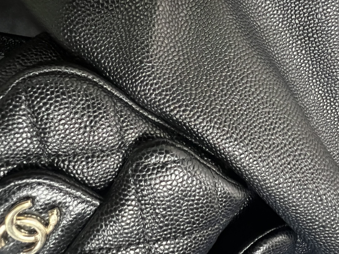 开料部流入HAAS一级皮,青蛙背包的皮面风格为中颗粒压纹,且颗粒会偏清晰明显,且光泽偏亮,感受正品皮才有的双色效应!