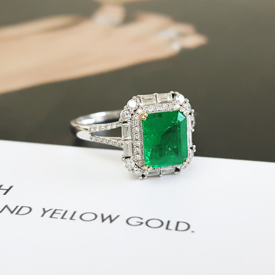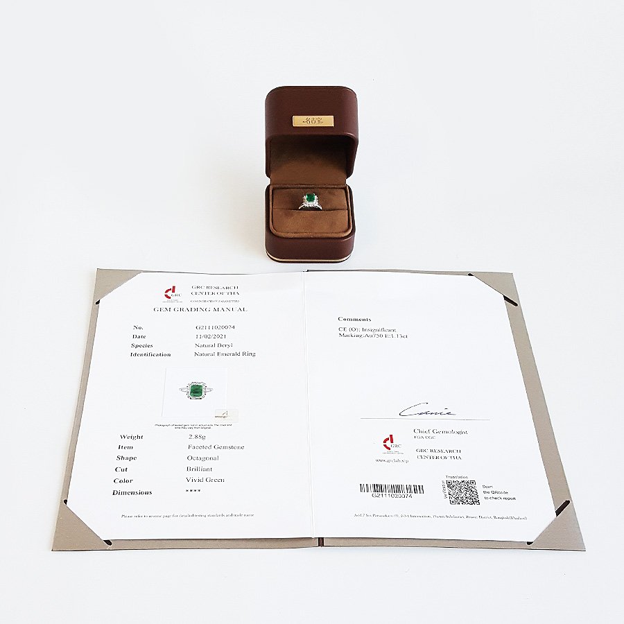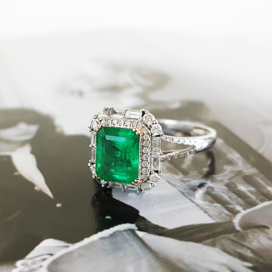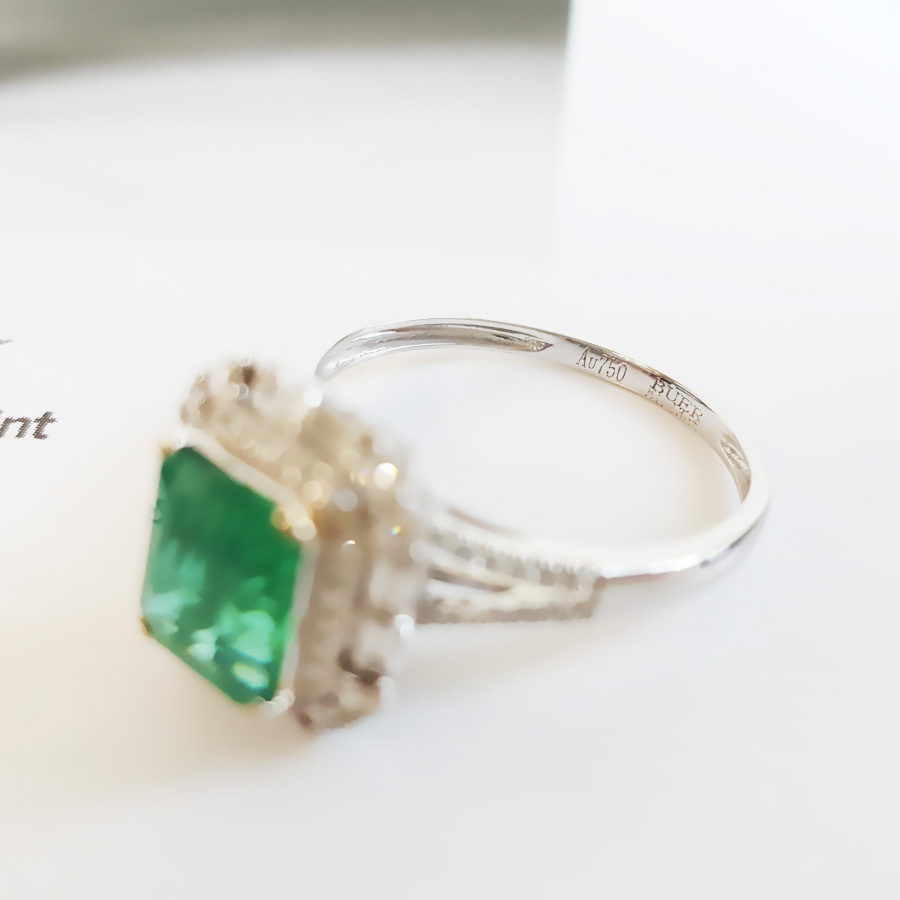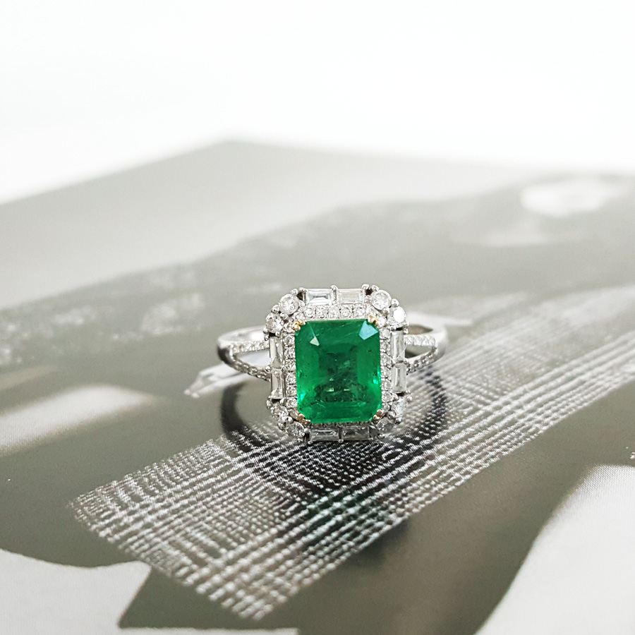 【天然正品】AU750精品白金镶钻镶天然1.13克拉木佐绿祖母绿戒指、吊坠两用款戒圈:12.5号(戒圈可改)/ 吊坠:16.1*10.5*7.5MM女士011125JJ04