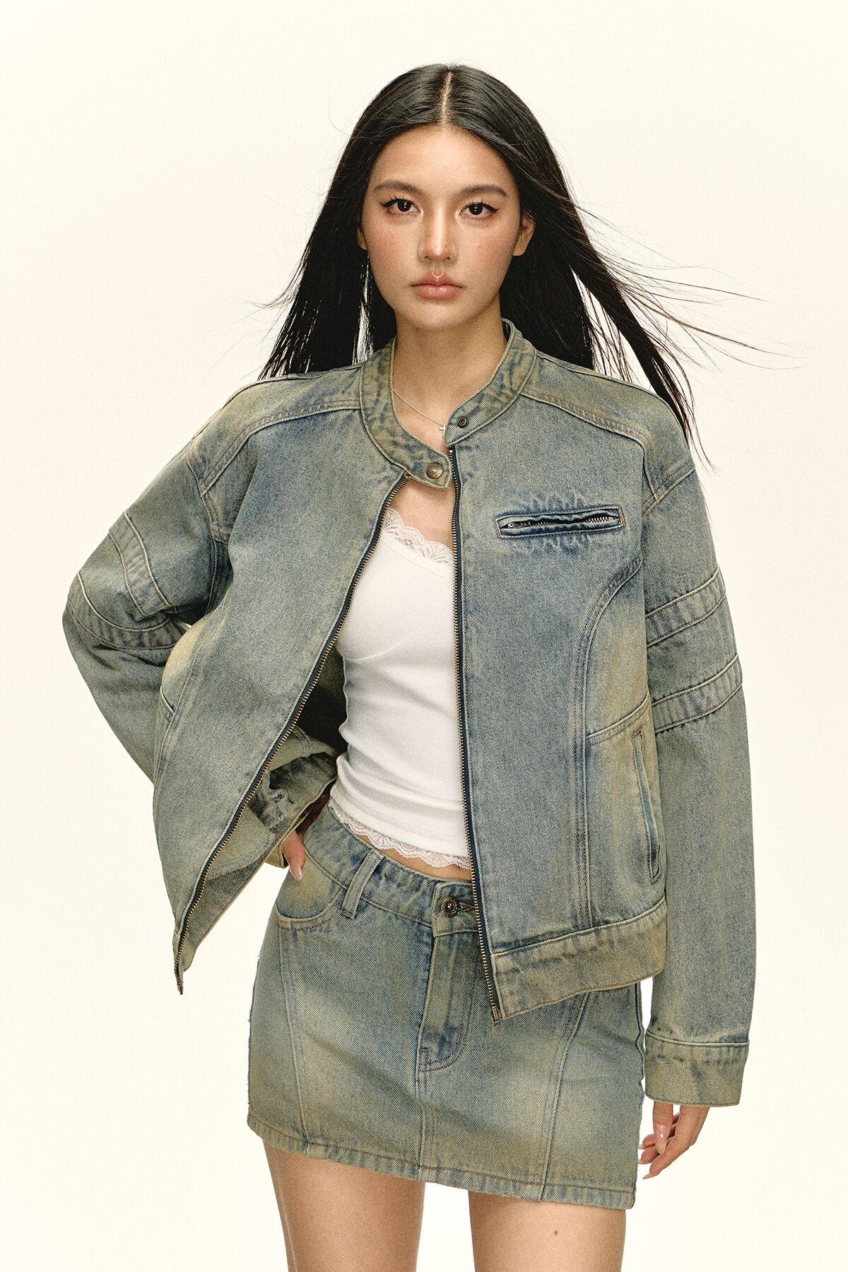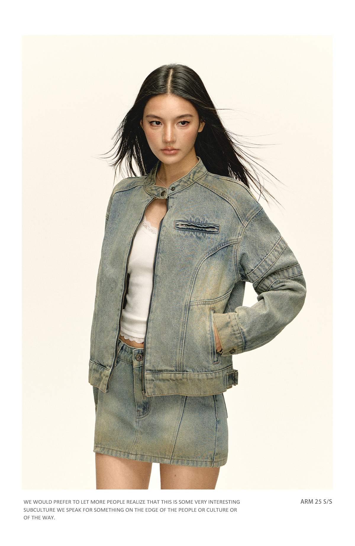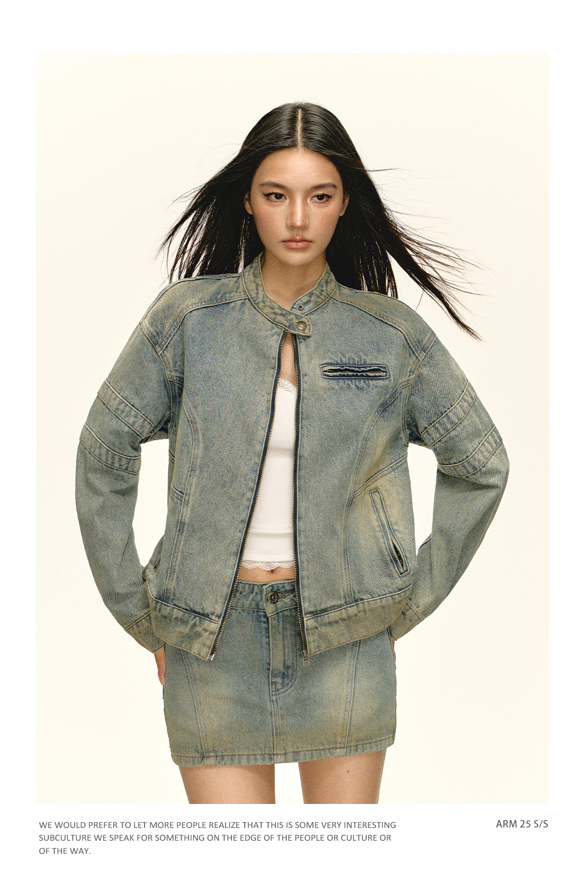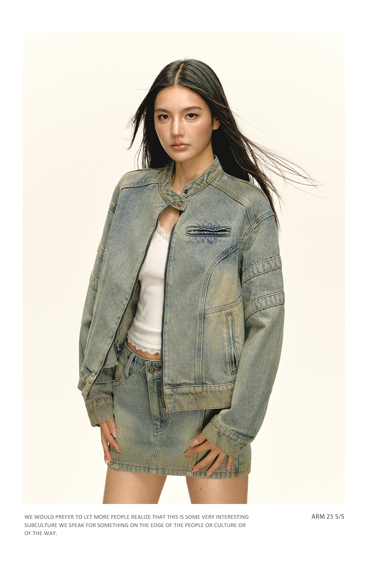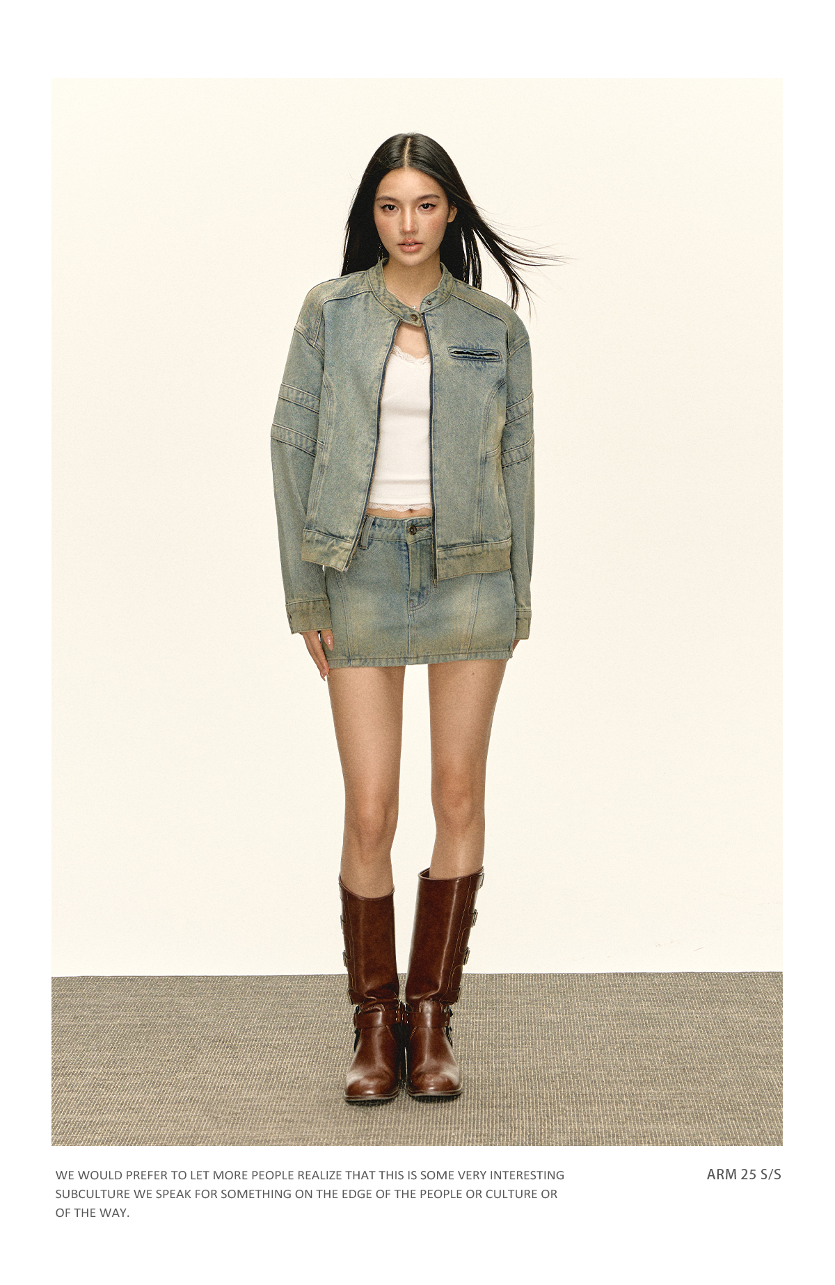 Ariseism 美式复古可脱卸毛领PU皮短外套女秋季新款外套