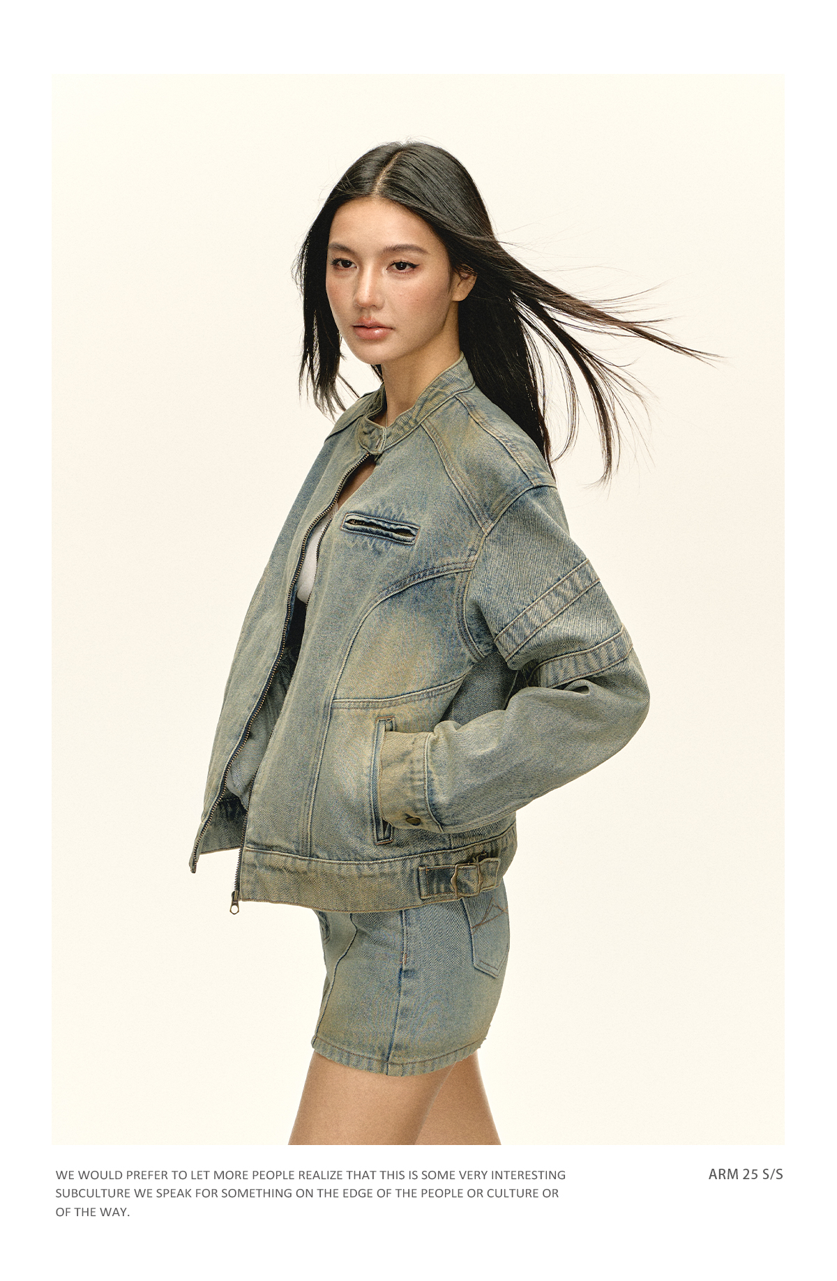 Ariseism美式复古多口袋牛仔短裤女2025夏季新款紧身显瘦辣妹热裤