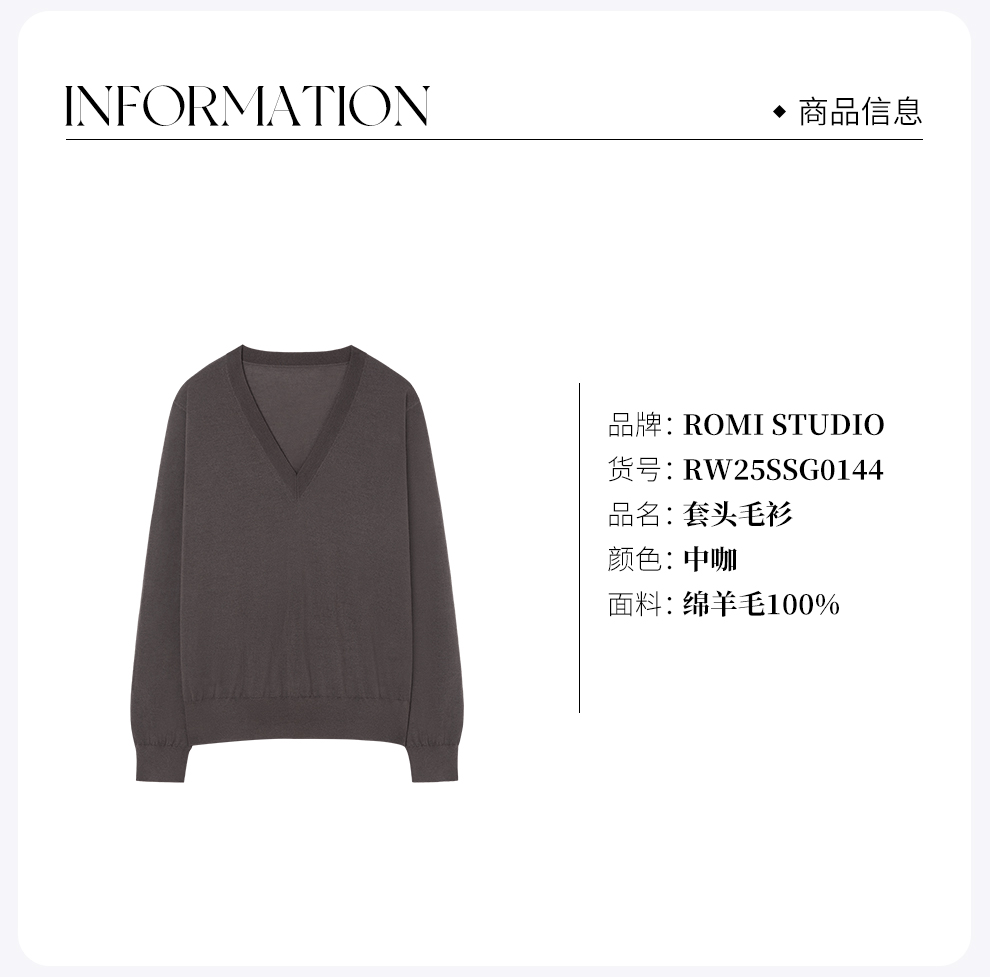 ROMI STUDIO“惬意自然”100%美丽诺绵羊毛V领套头毛衫 RW25SSG0144