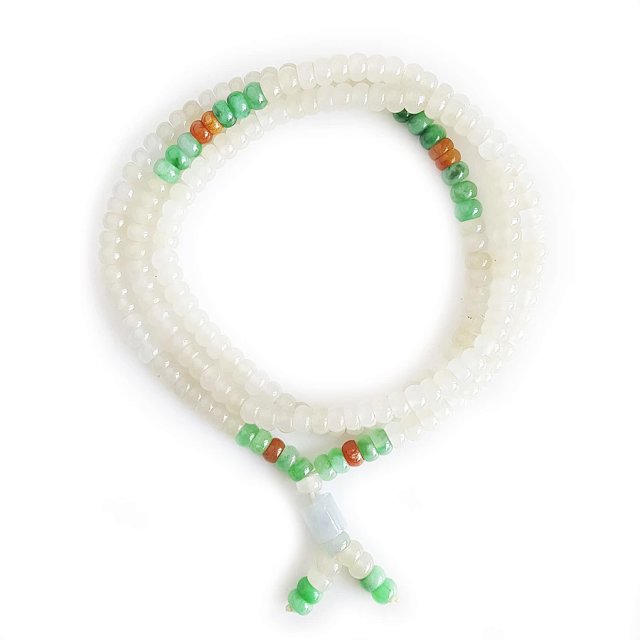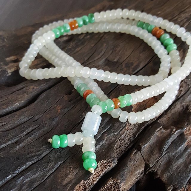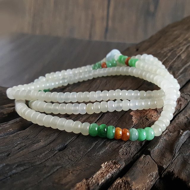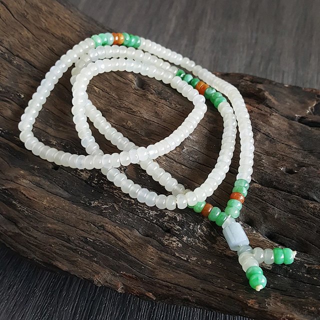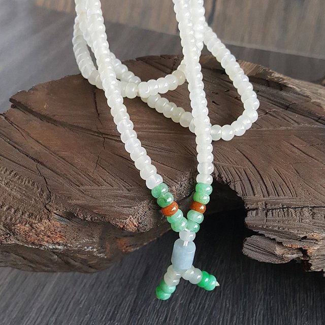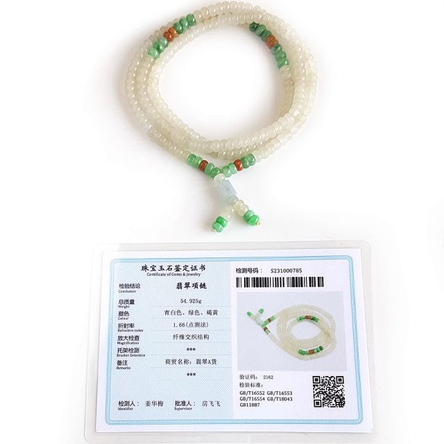 【天然正品】A货翡翠天然无杂裂冰种白色翡翠配糯种绿色翡翠算盘珠串珠项链70CM 现售价:1880!131023NJM15