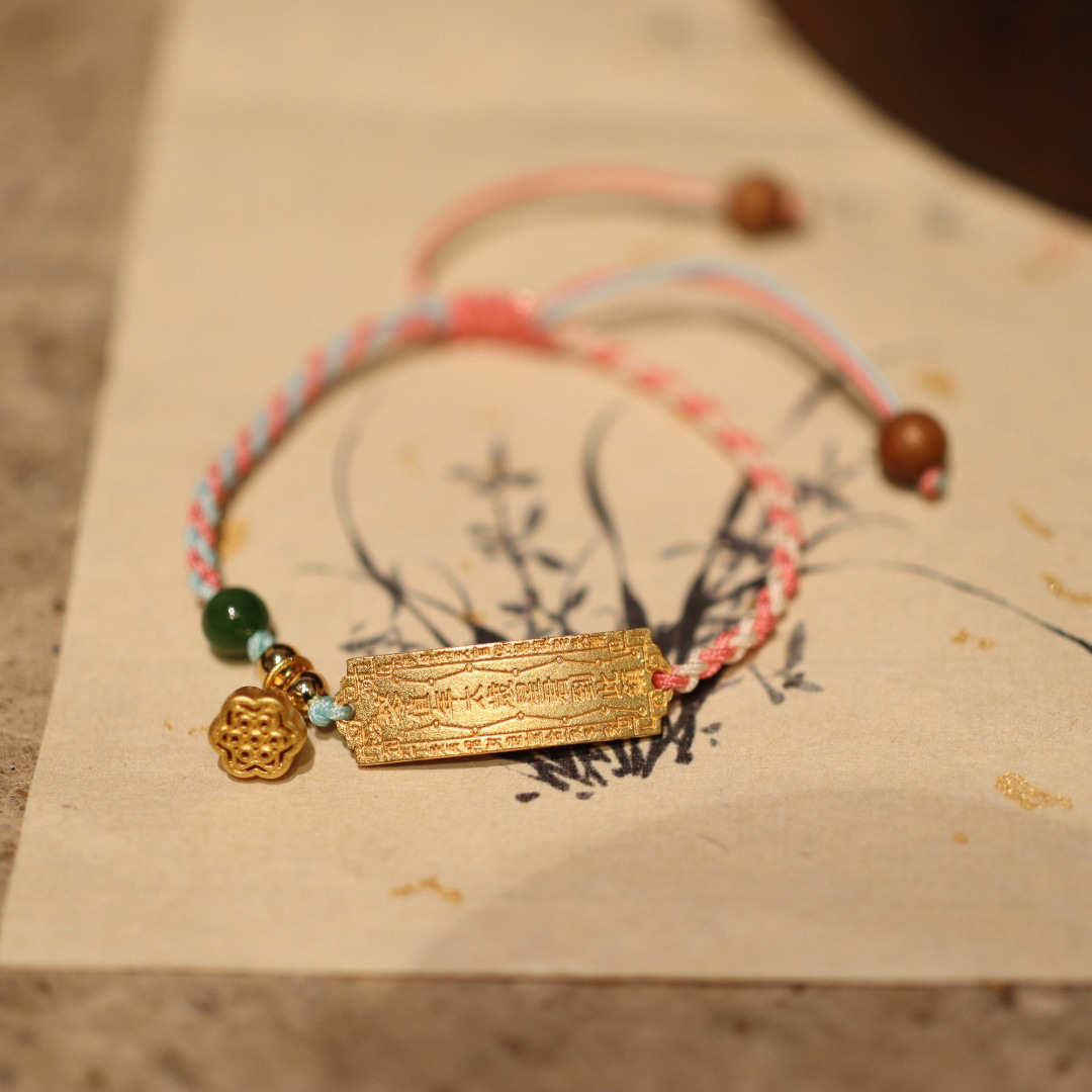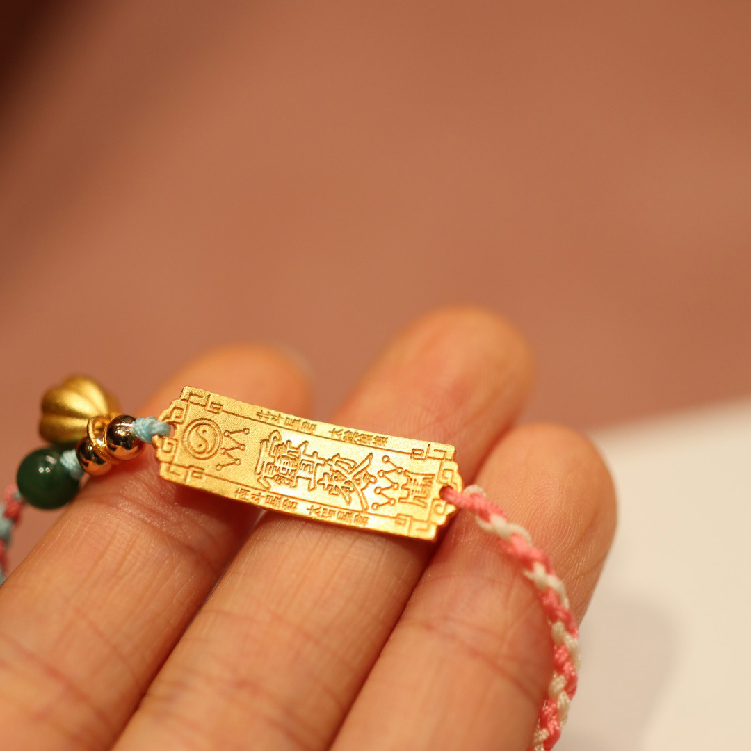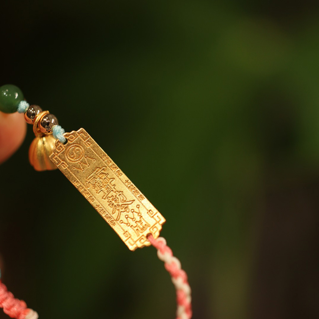 【普陀山】大人小孩太岁银镀金福牌编织手链幸运红绳