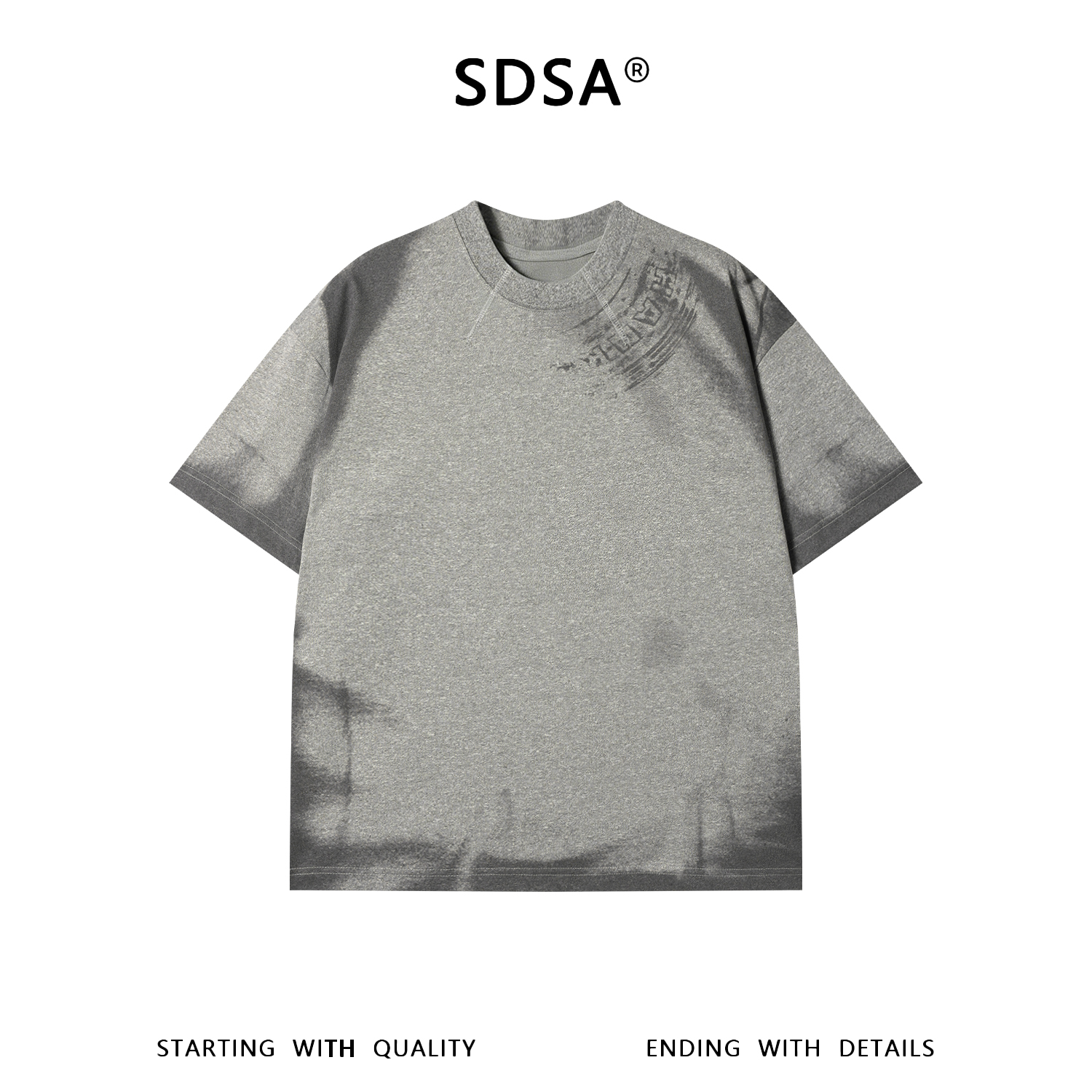 SDSA男装2026新款高贵轻奢韩系扎染简约缝线圆领短袖T恤百搭上衣