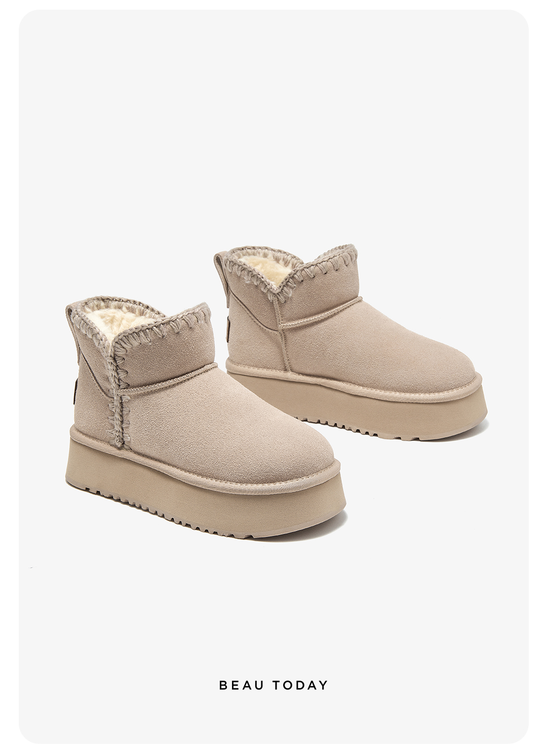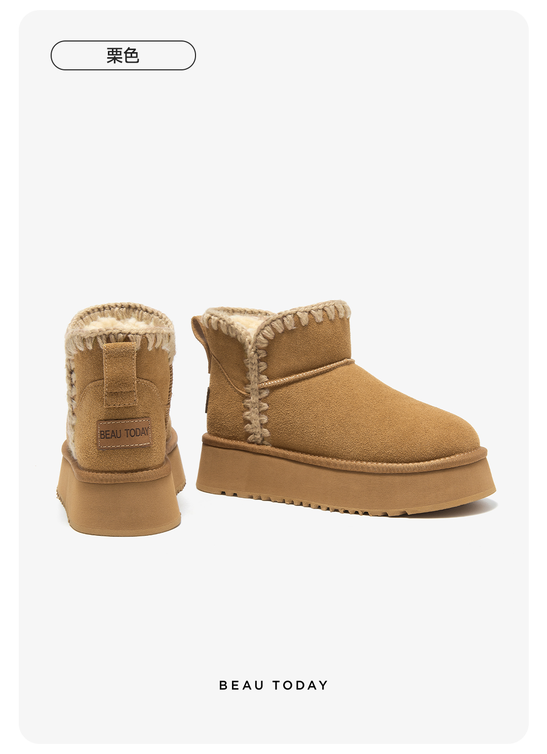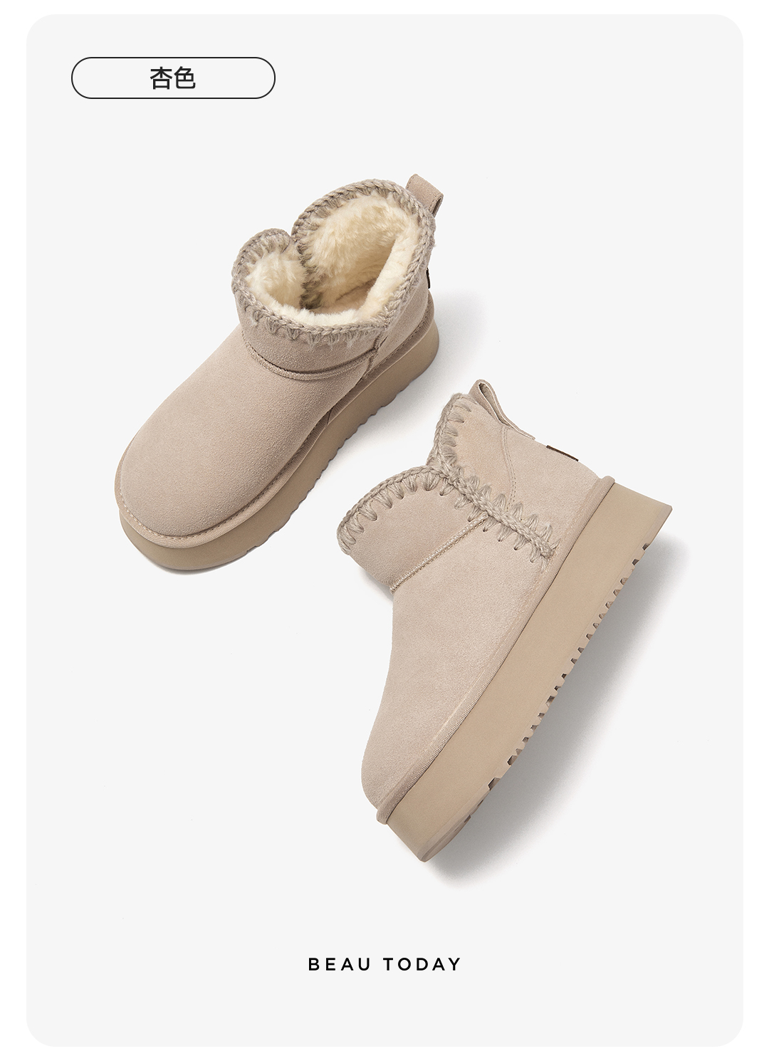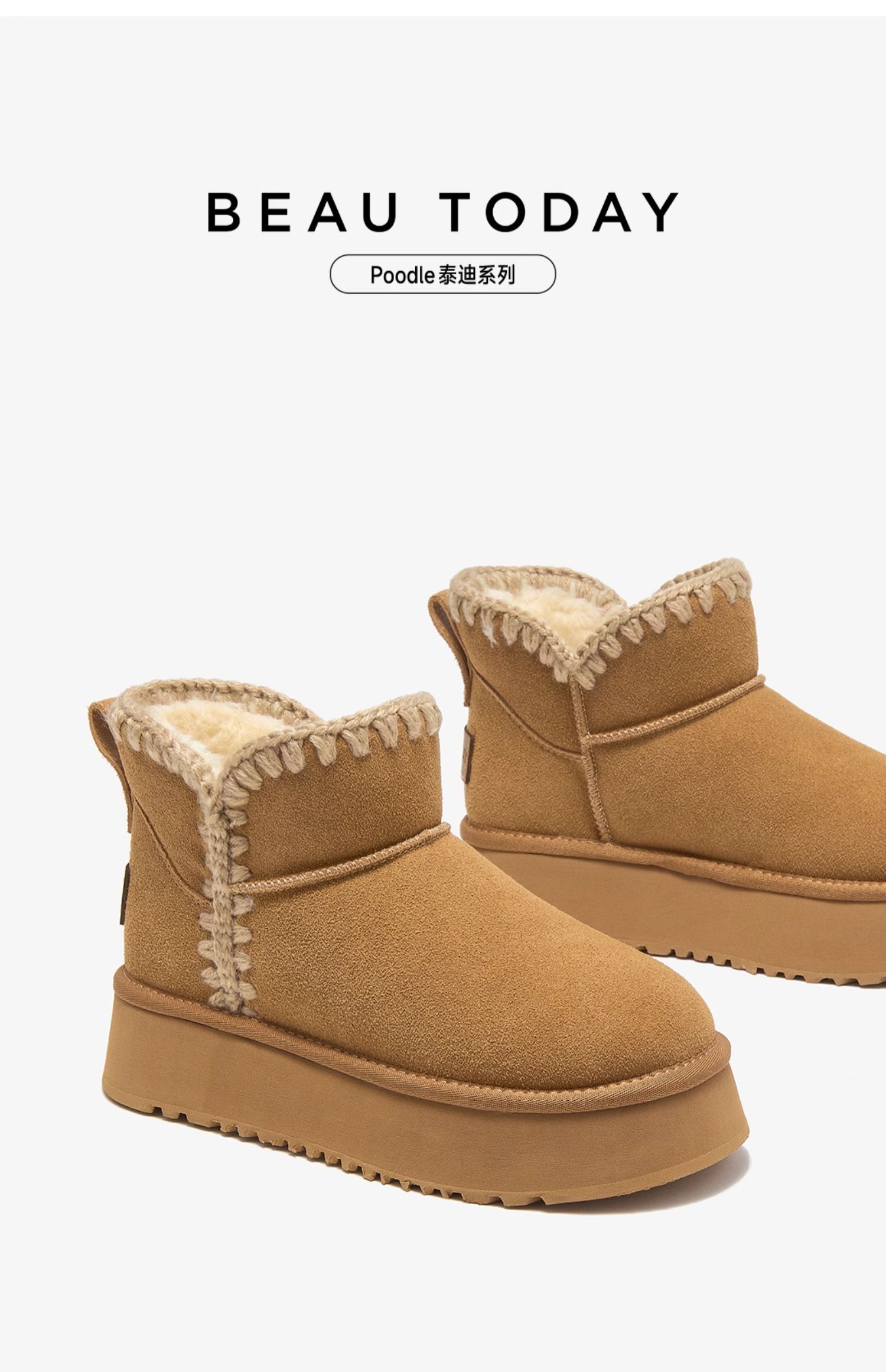 BeauToday 厚底绵软雪地靴女冬季加绒靴子棉鞋保暖短靴女08072
