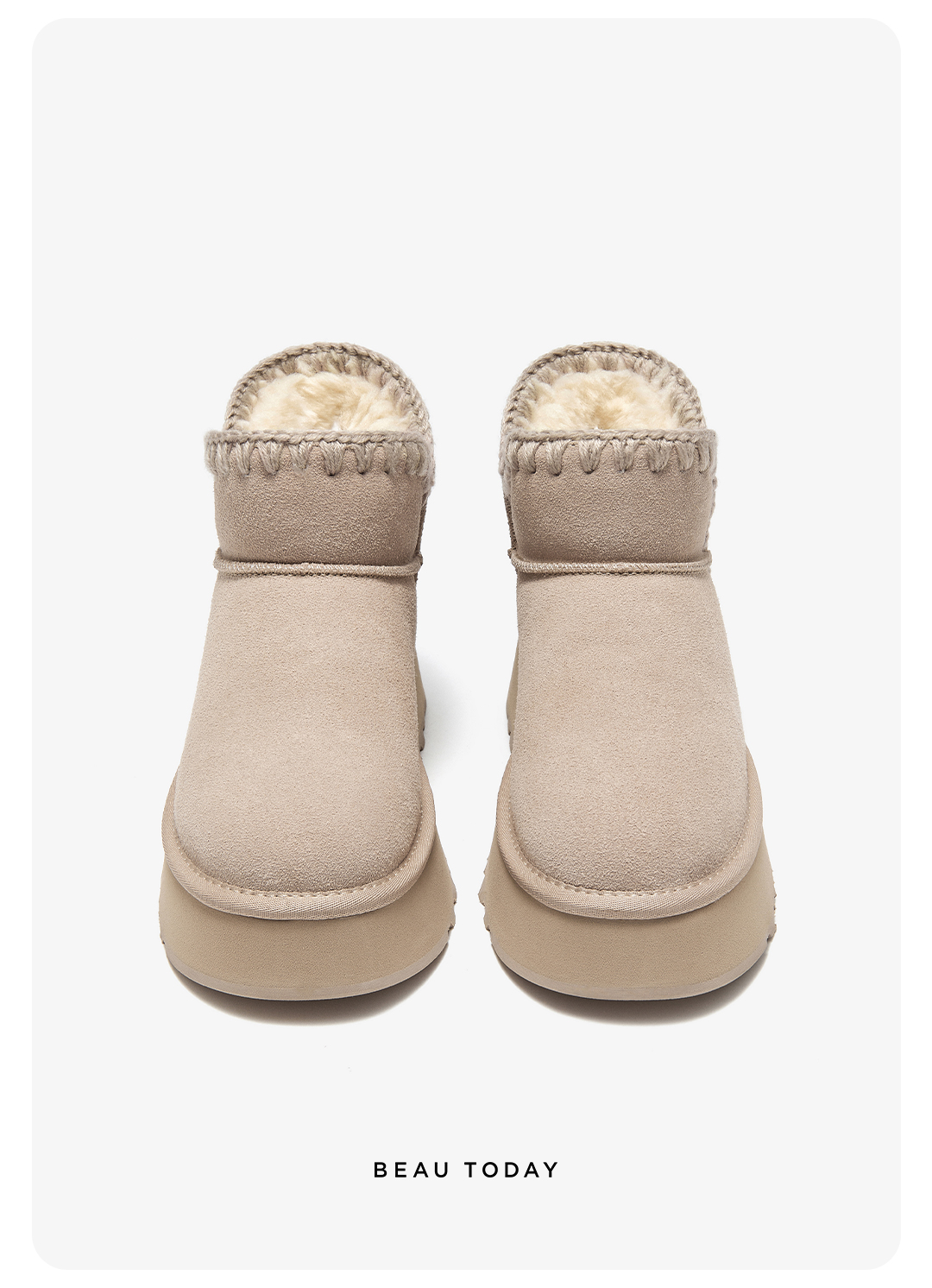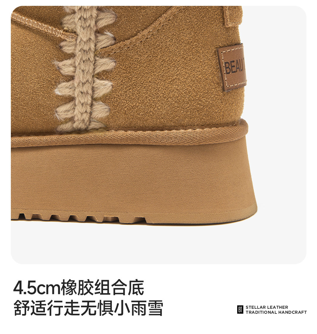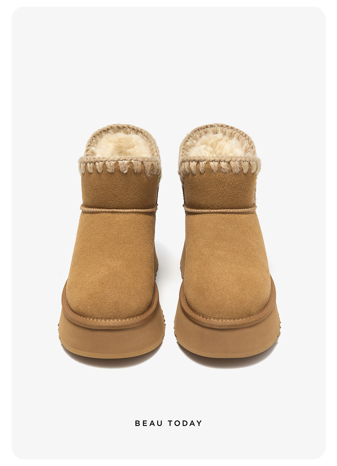 BeauToday 厚底绵软雪地靴女冬季加绒靴子棉鞋保暖短靴女08072