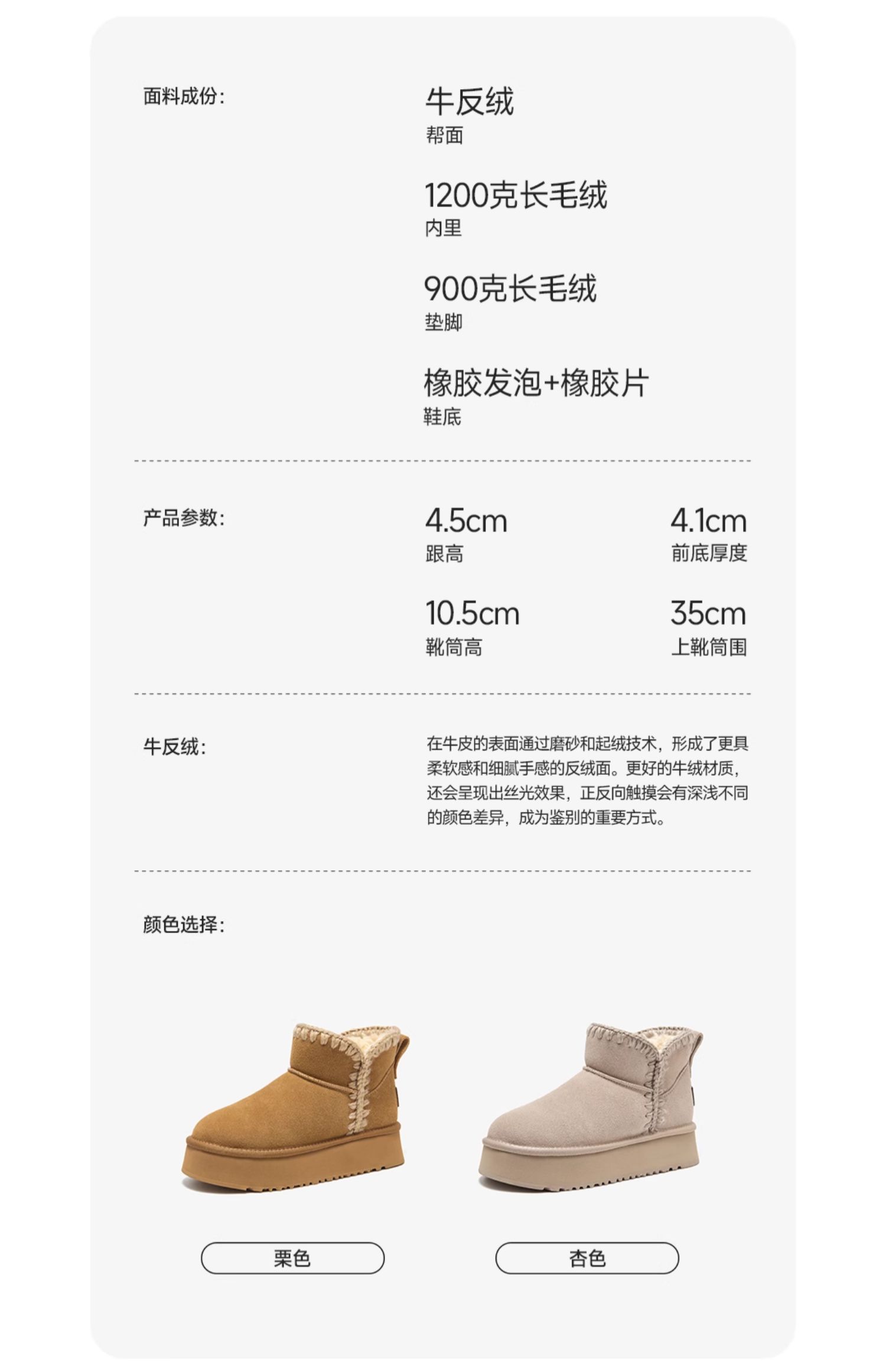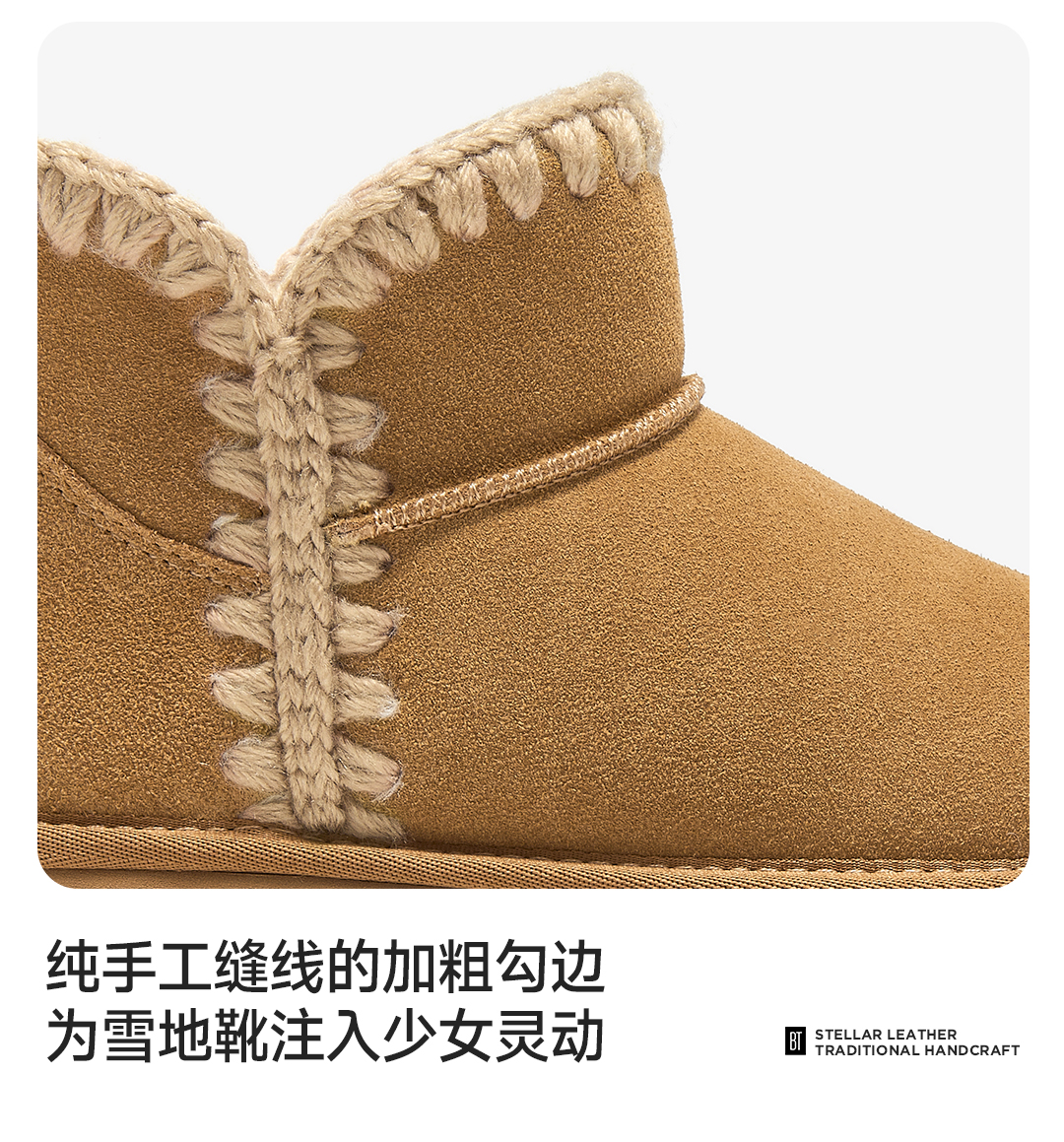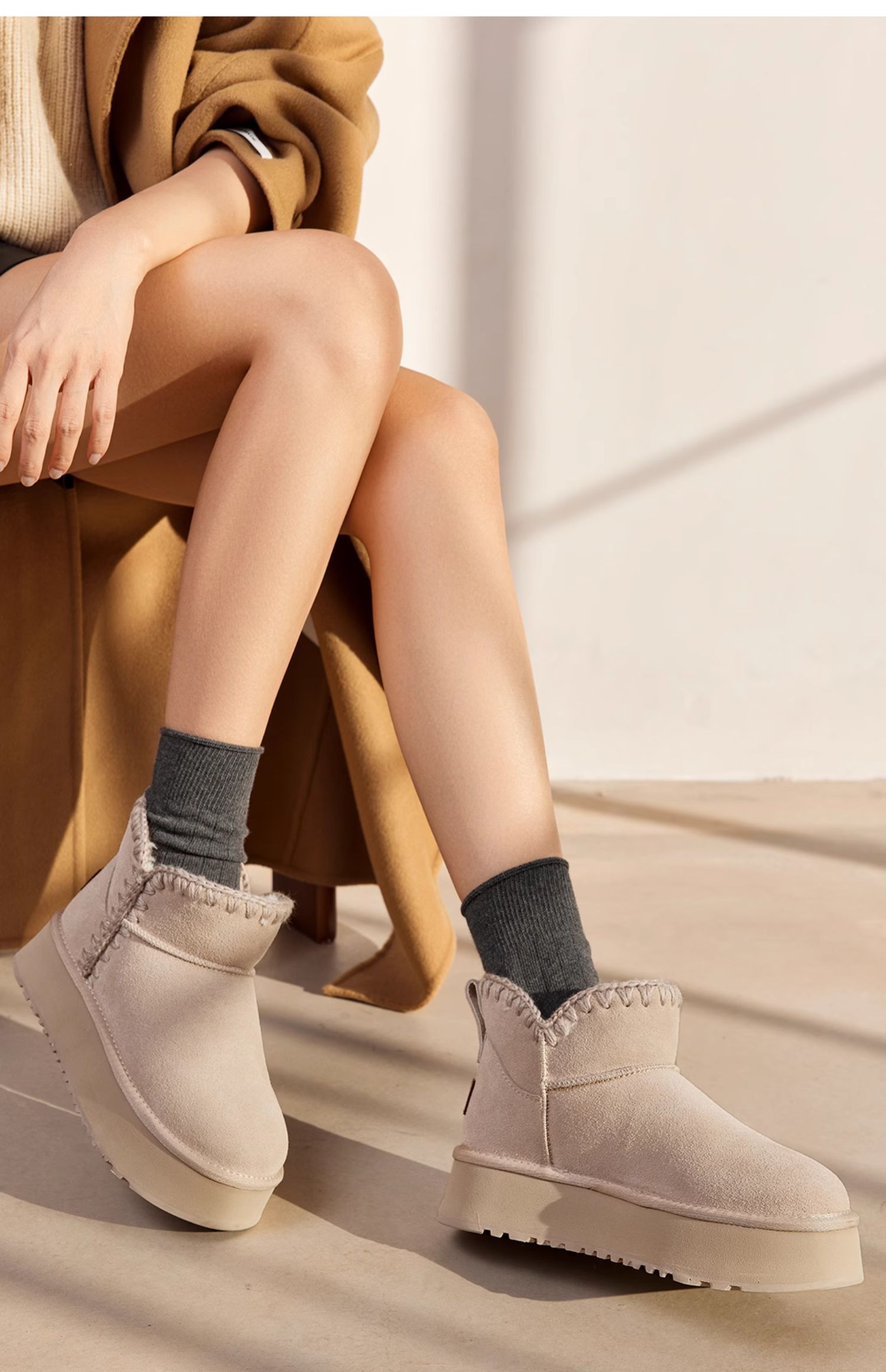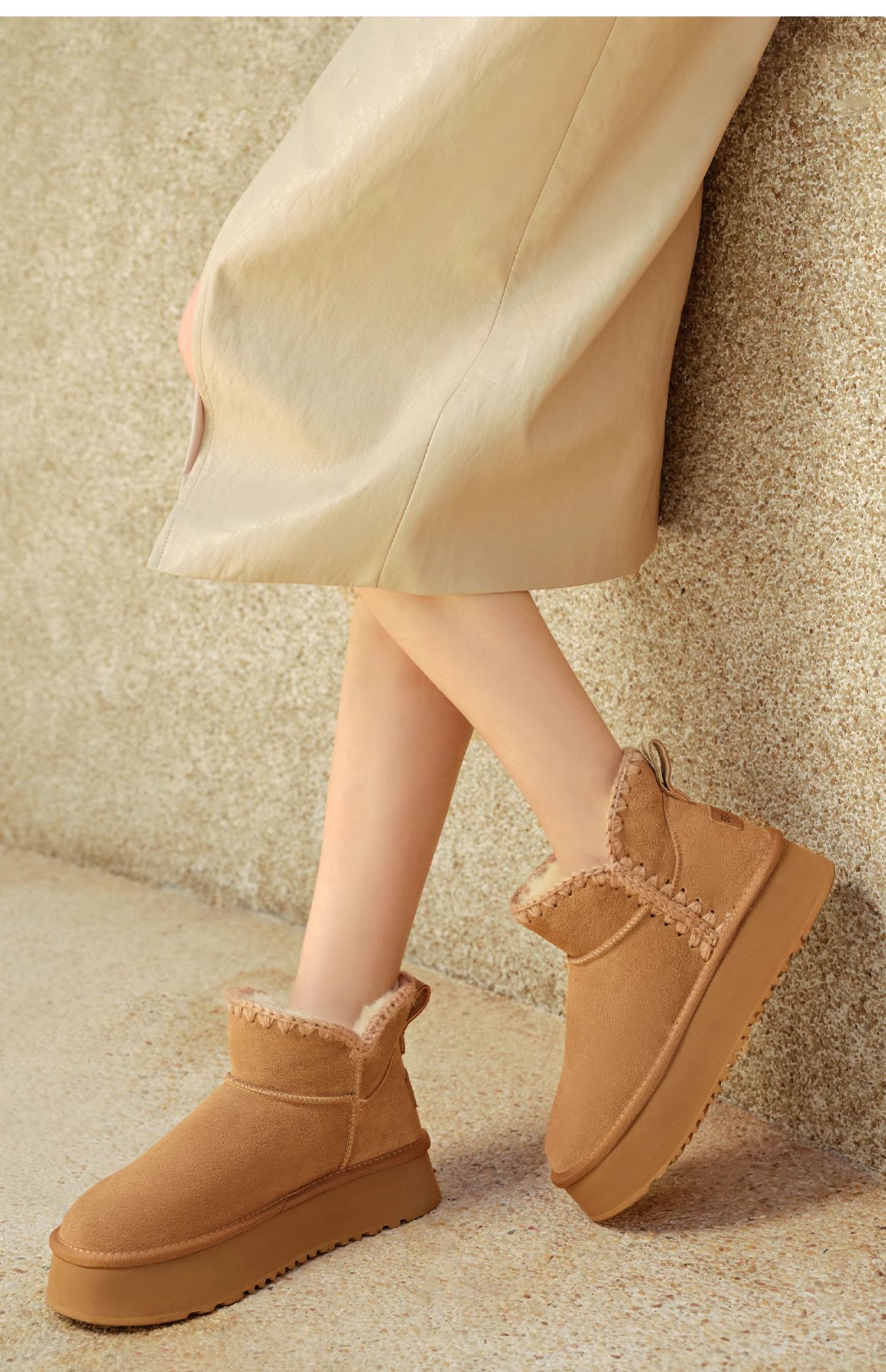 BeauToday 厚底绵软雪地靴女冬季加绒靴子棉鞋保暖短靴女08072