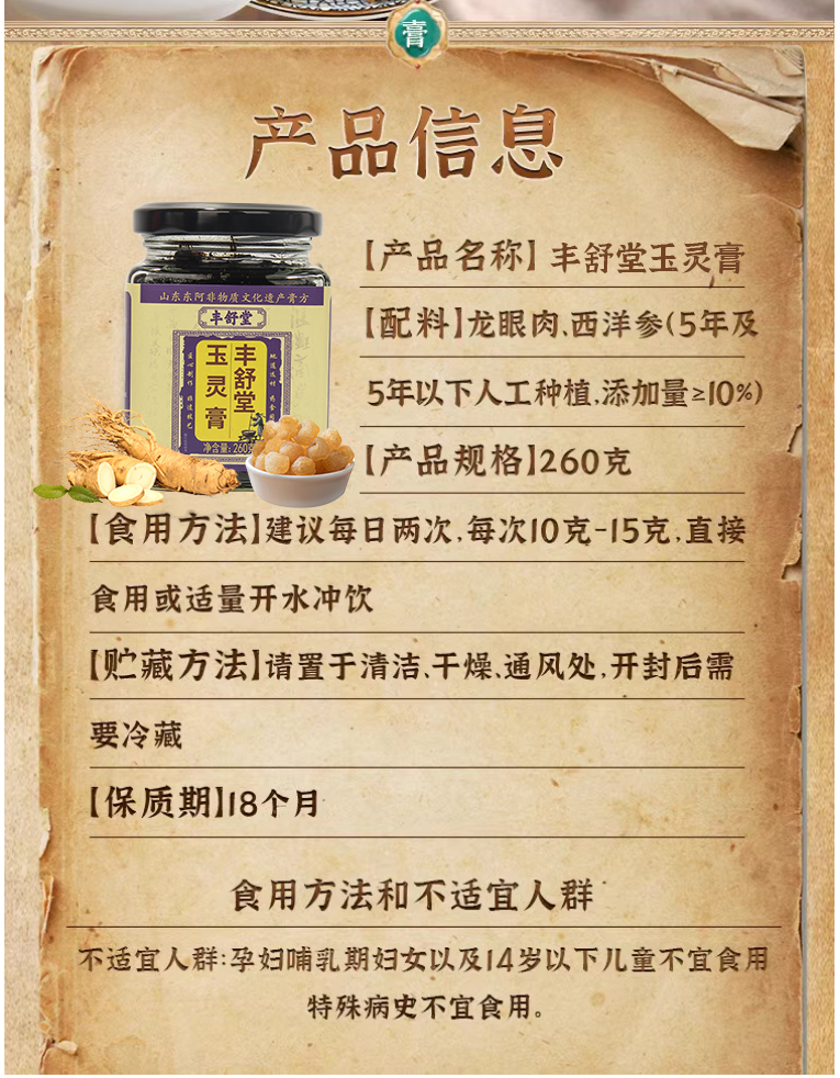 丰舒堂玉灵膏丰舒堂家正品西洋参气血调理养生膏丰舒堂官方旗舰店
