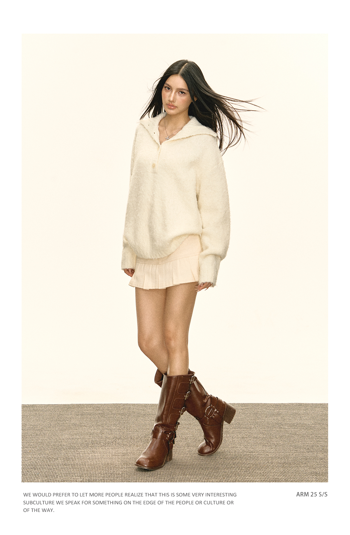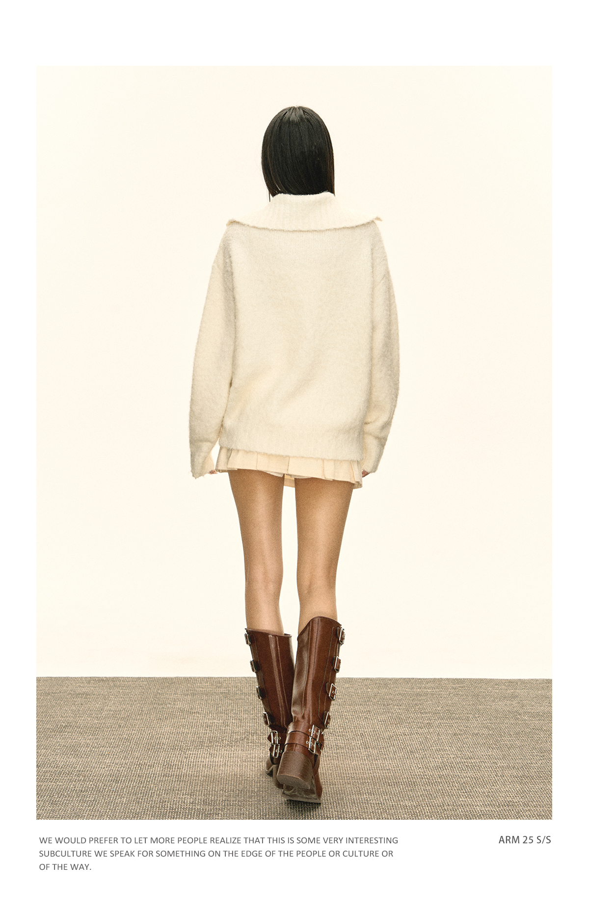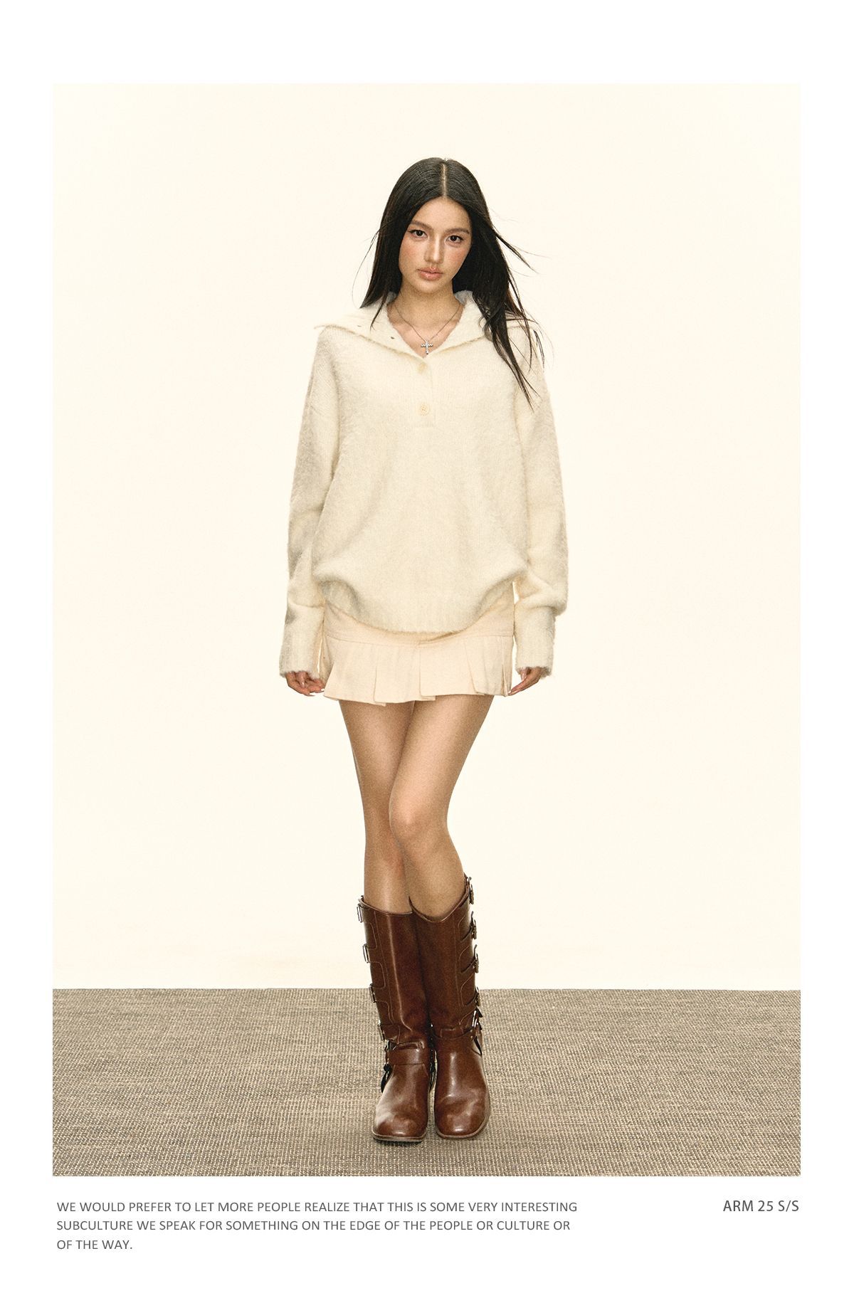 Ariseism 美式复古设计感宽松翻领毛衣女秋季新款上衣