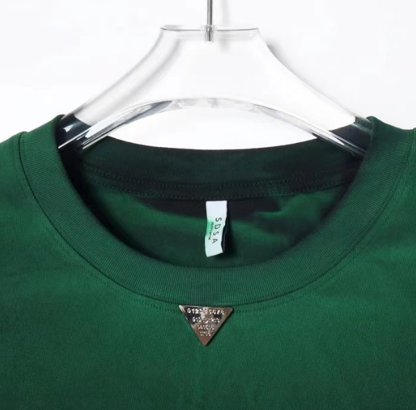 T817夏季新款渐变撞色金属三角标男女短袖时尚百搭休闲T恤复古上衣