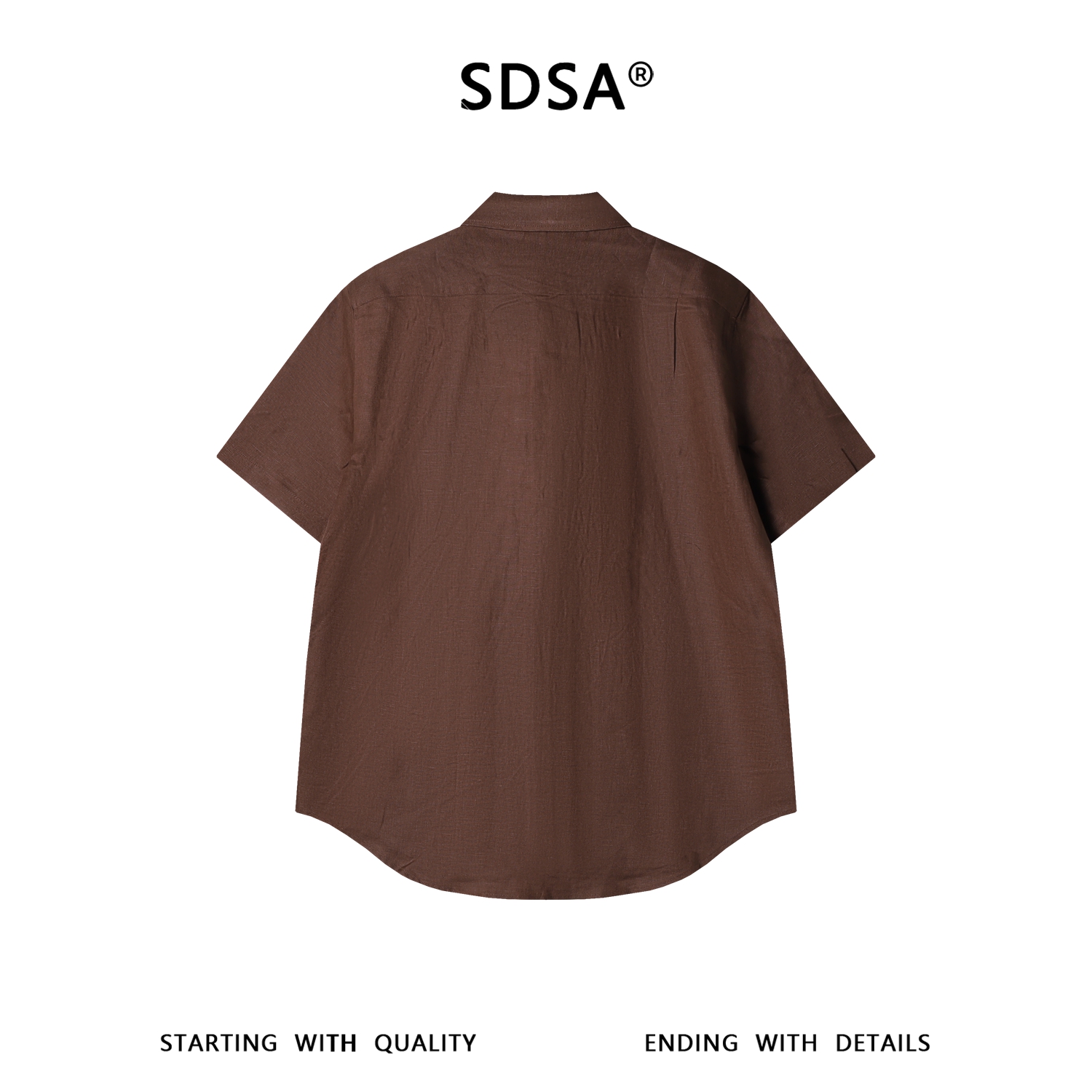 SDSA男装2026新款轻奢日系简约纯色亚麻短袖衬衫百搭透气舒适上衣