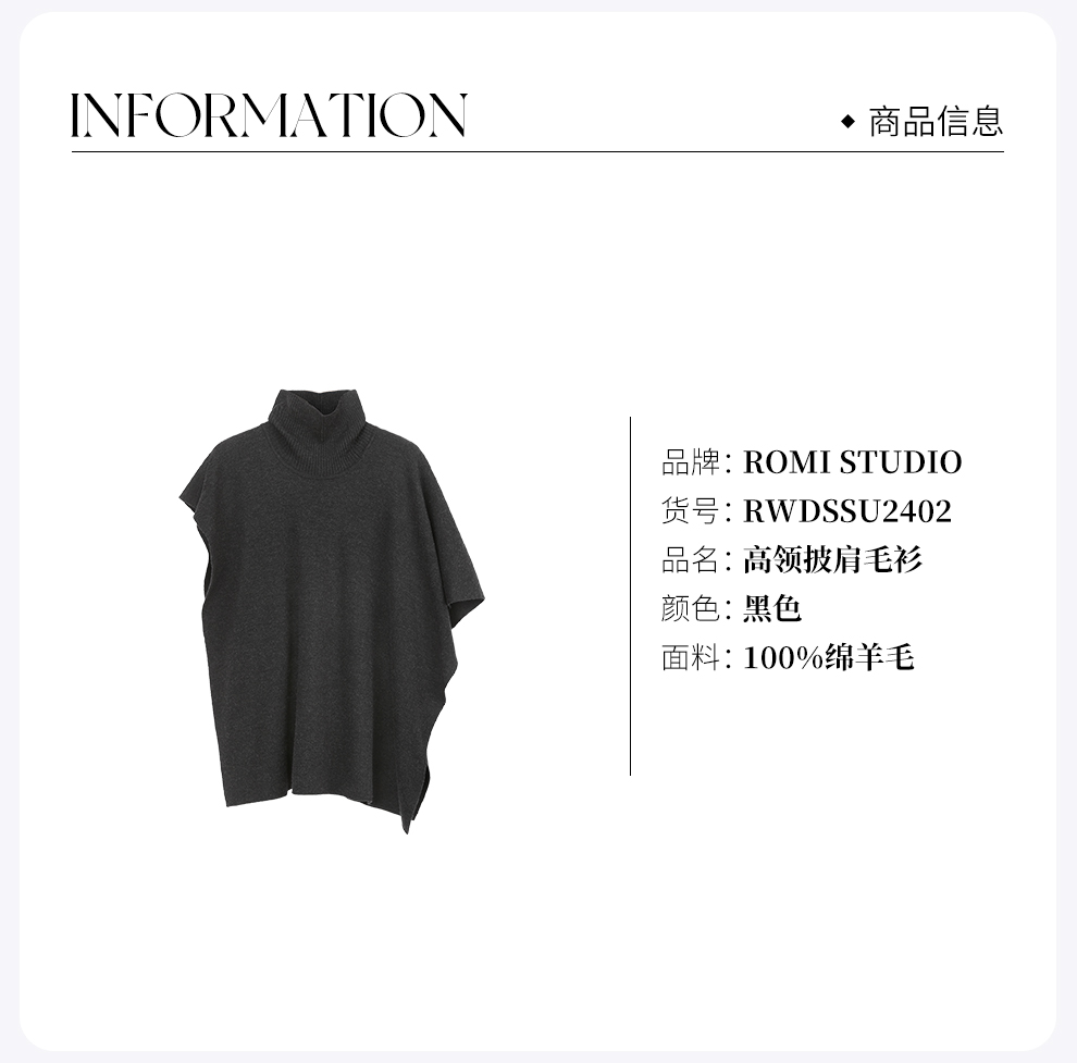 ROMI STUDIO100扬子精纺羊毛慵懒感蝙蝠袖高领披肩毛衫RWDSSU2402