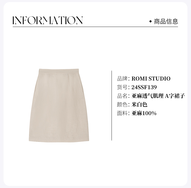 ROMI STUDIO “东方美学“ 亚麻透气肌理 A字裙子 24SSF139