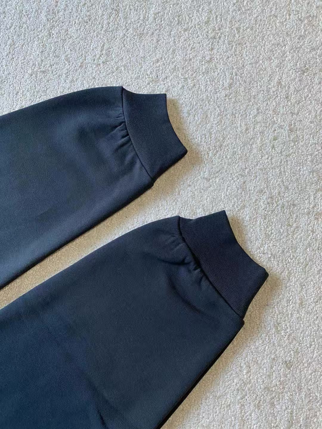 面料采用26S双纱+10S鱼鳞底磨毛面料,380g;搭配32S双纱螺纹,3500g。纯棉质鱼鳞底卫衣面料具有特殊纹理和优良性能的针织面料,纯棉材质保证了面料的柔软性、透气性和吸湿性;鱼鳞底结构增加了面料的弹性和抗皱性。